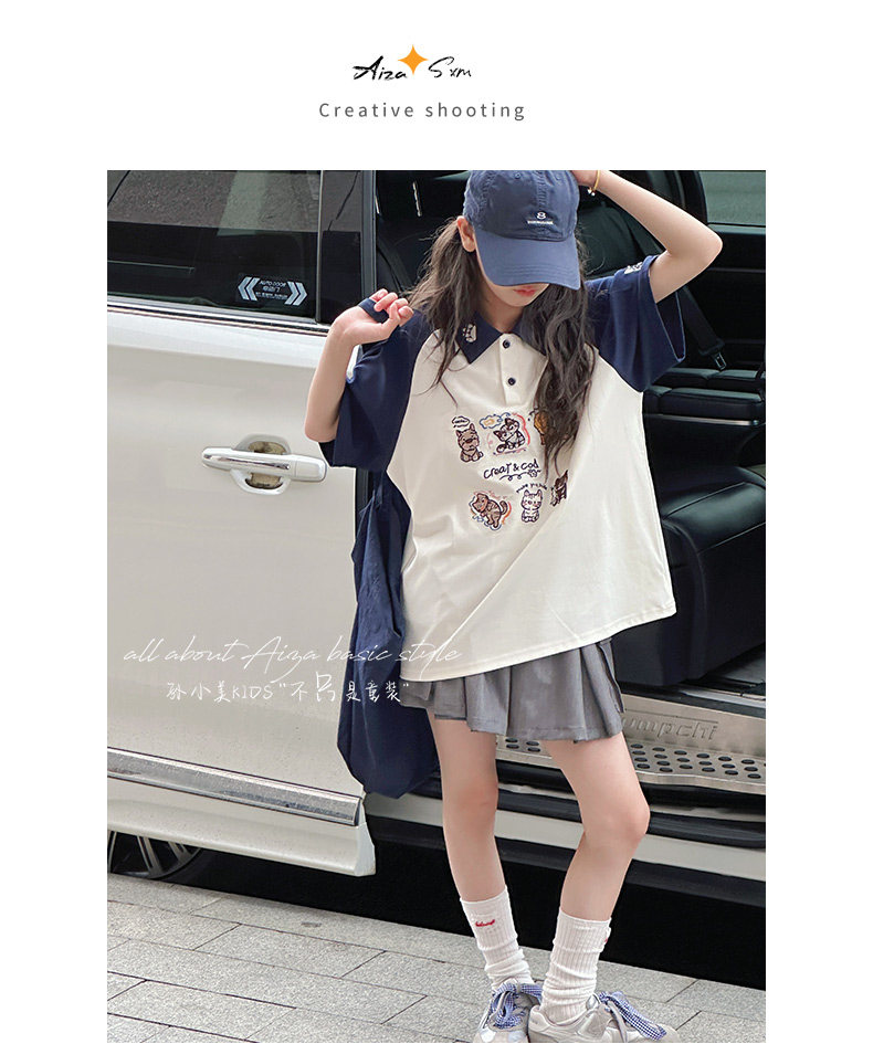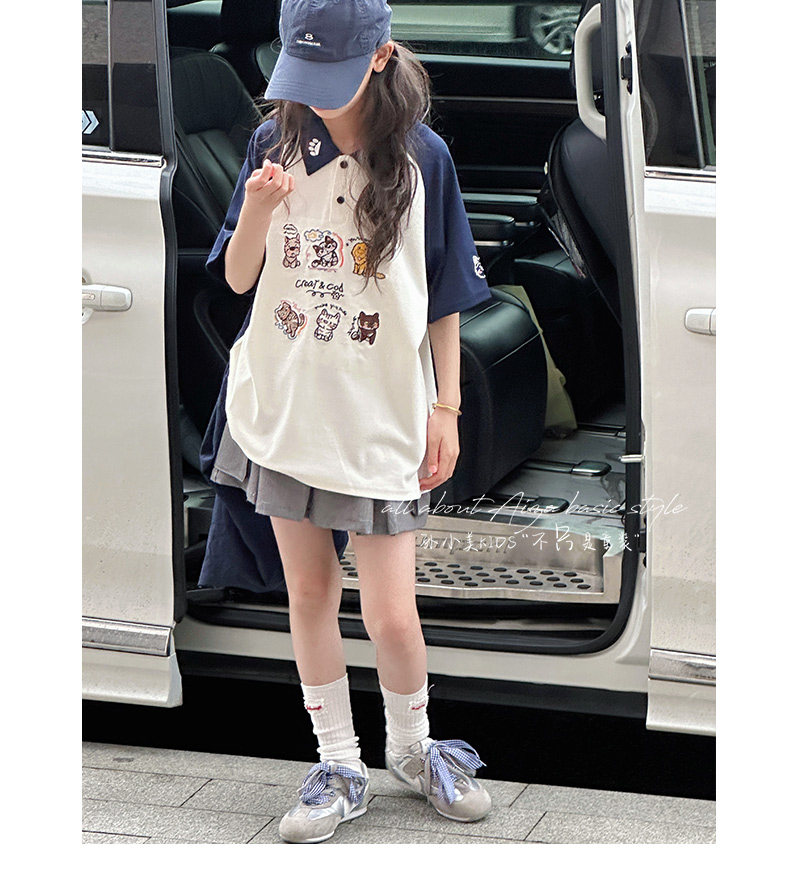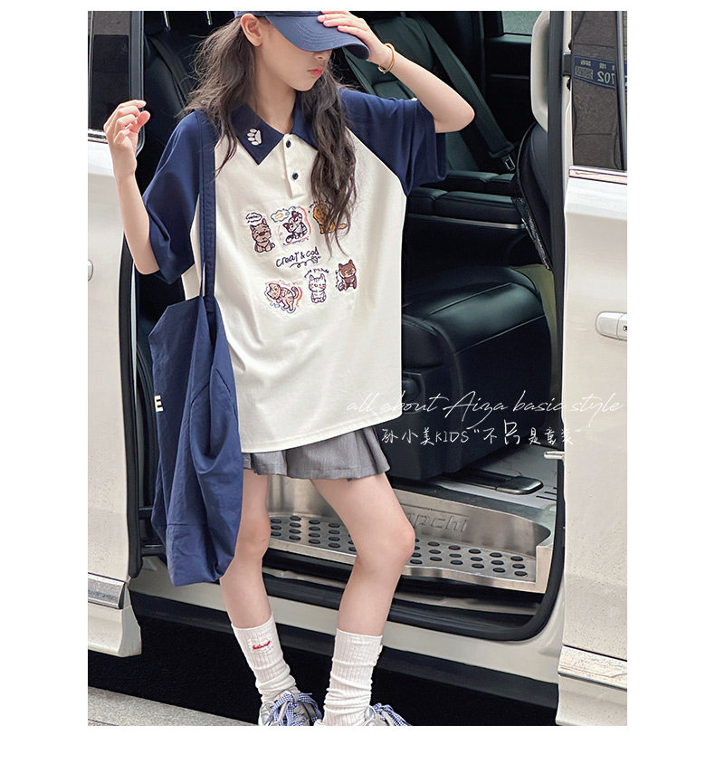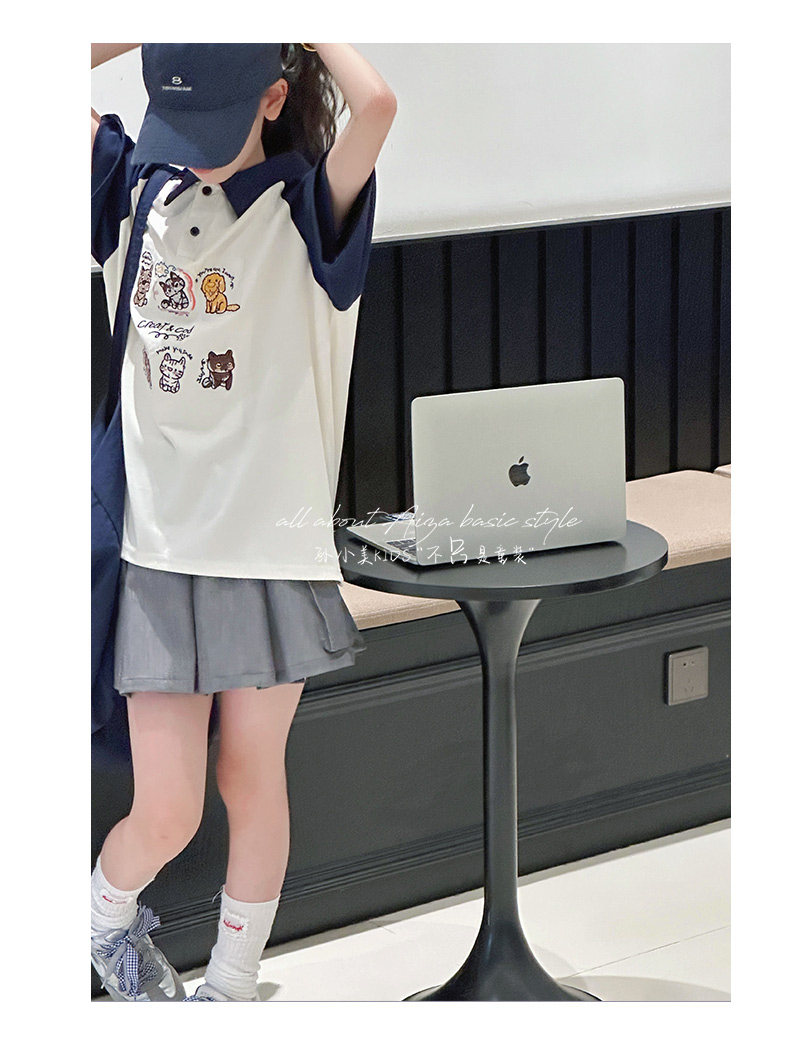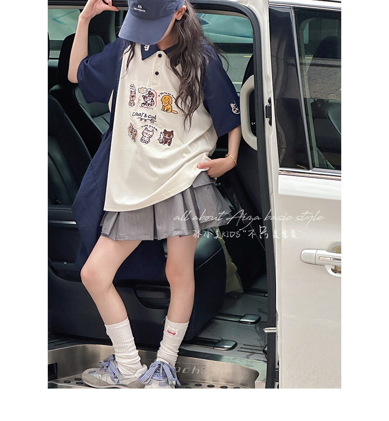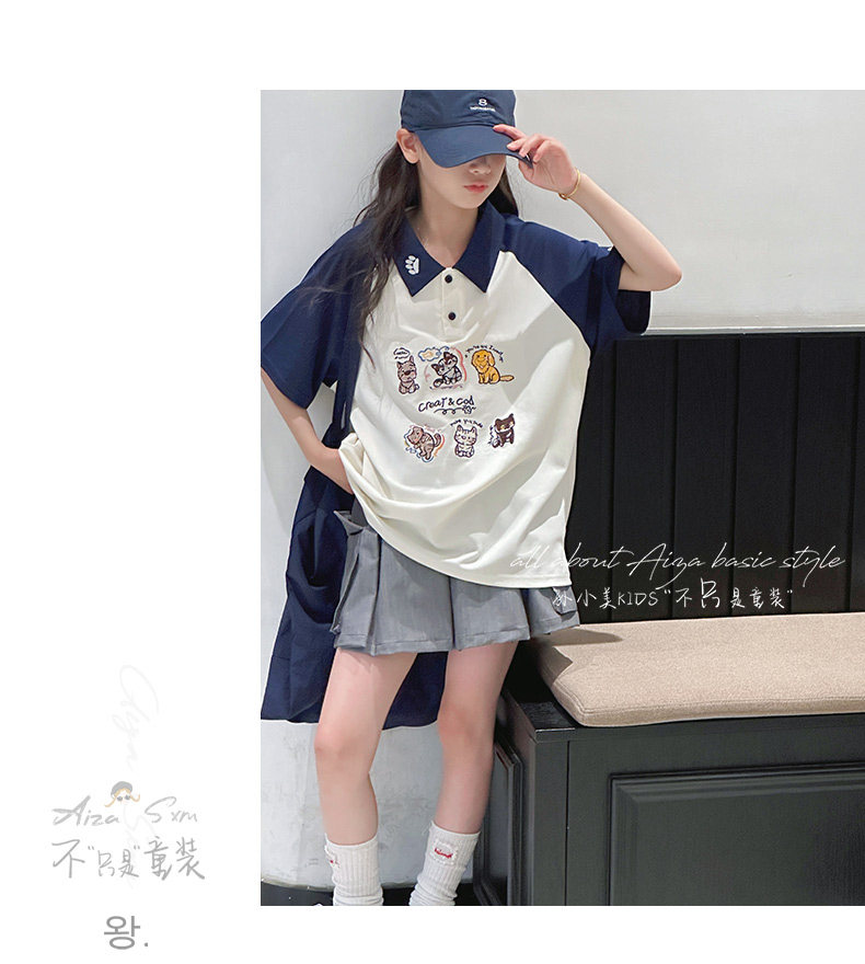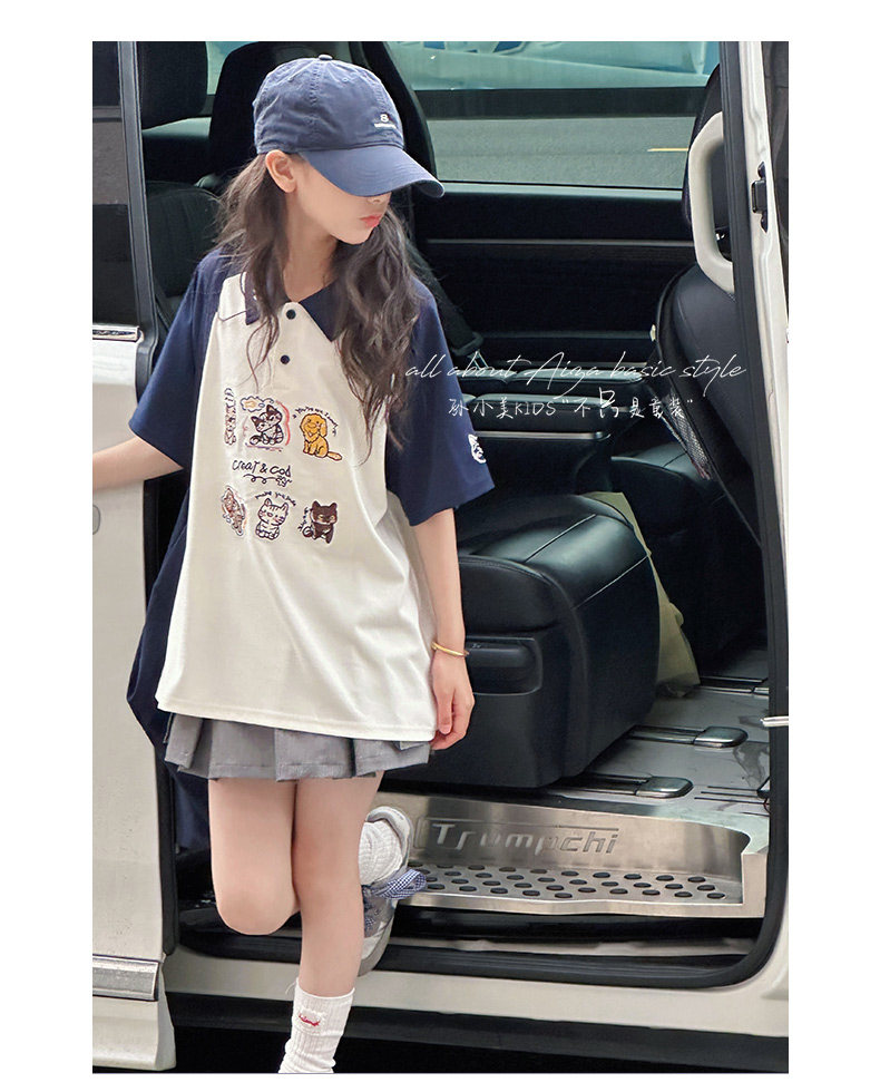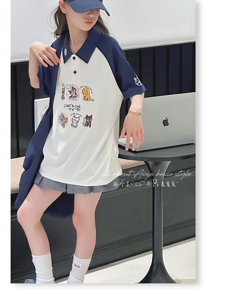 孫小美kids 韓系撞色女童夏裝polo衫短袖2025新款兒童T恤洋氣上衣