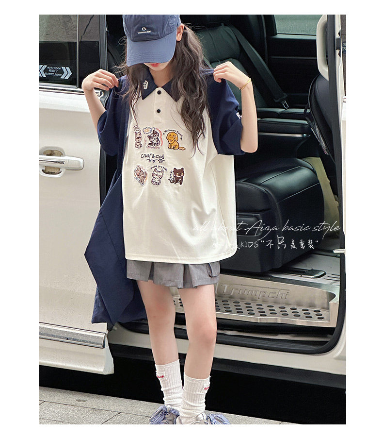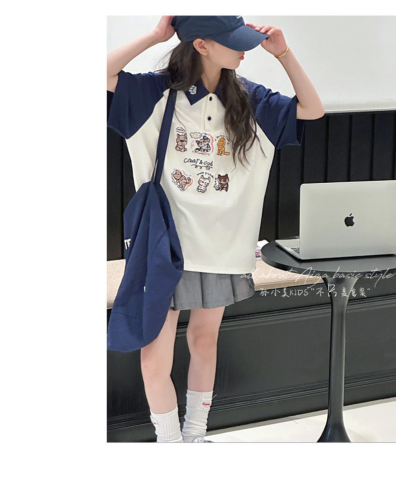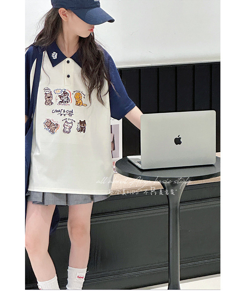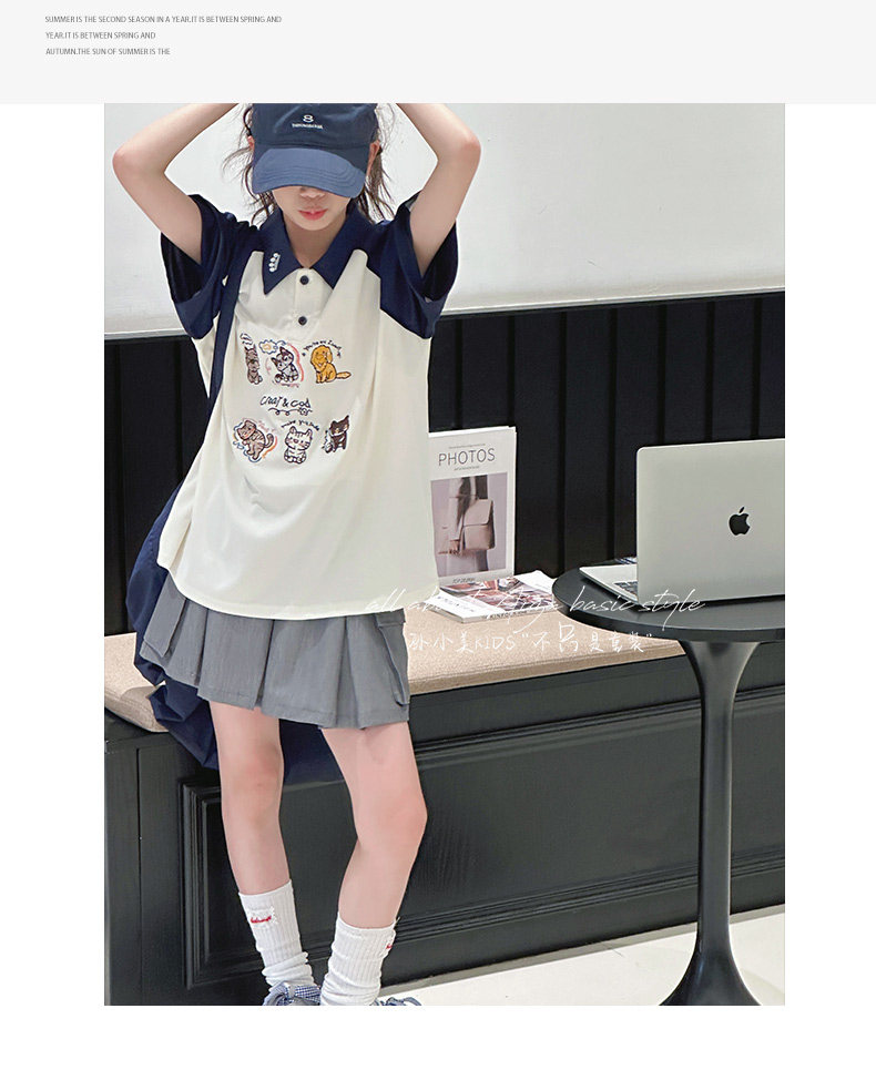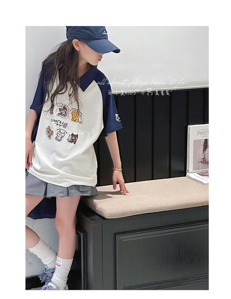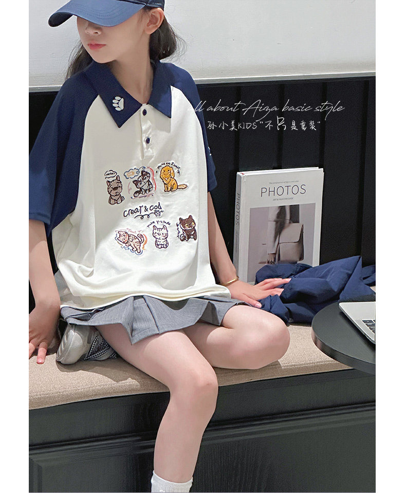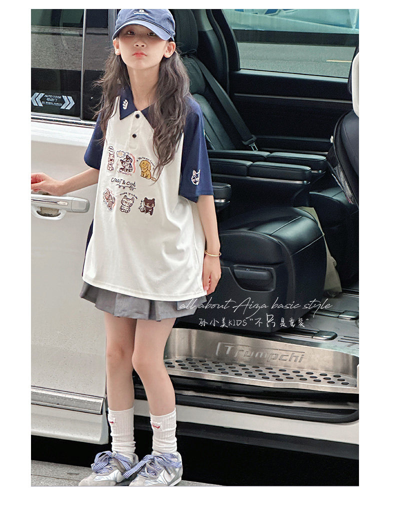 孫小美kids 韓系撞色女童夏裝polo衫短袖2025新款兒童T恤洋氣上衣