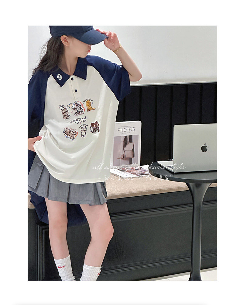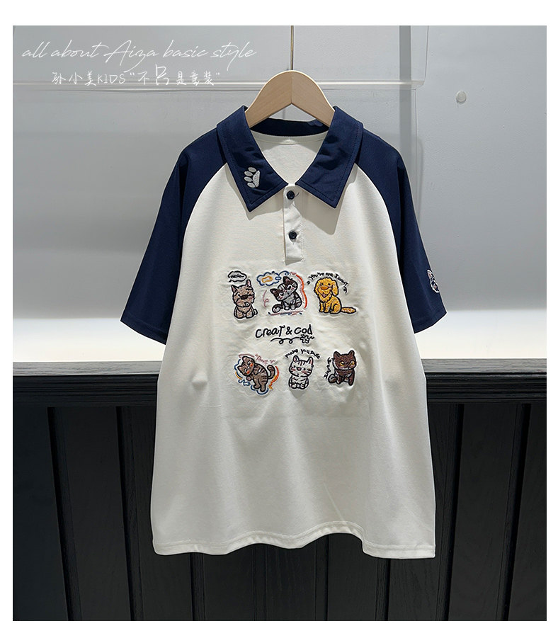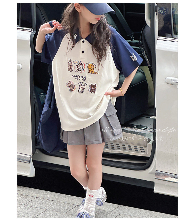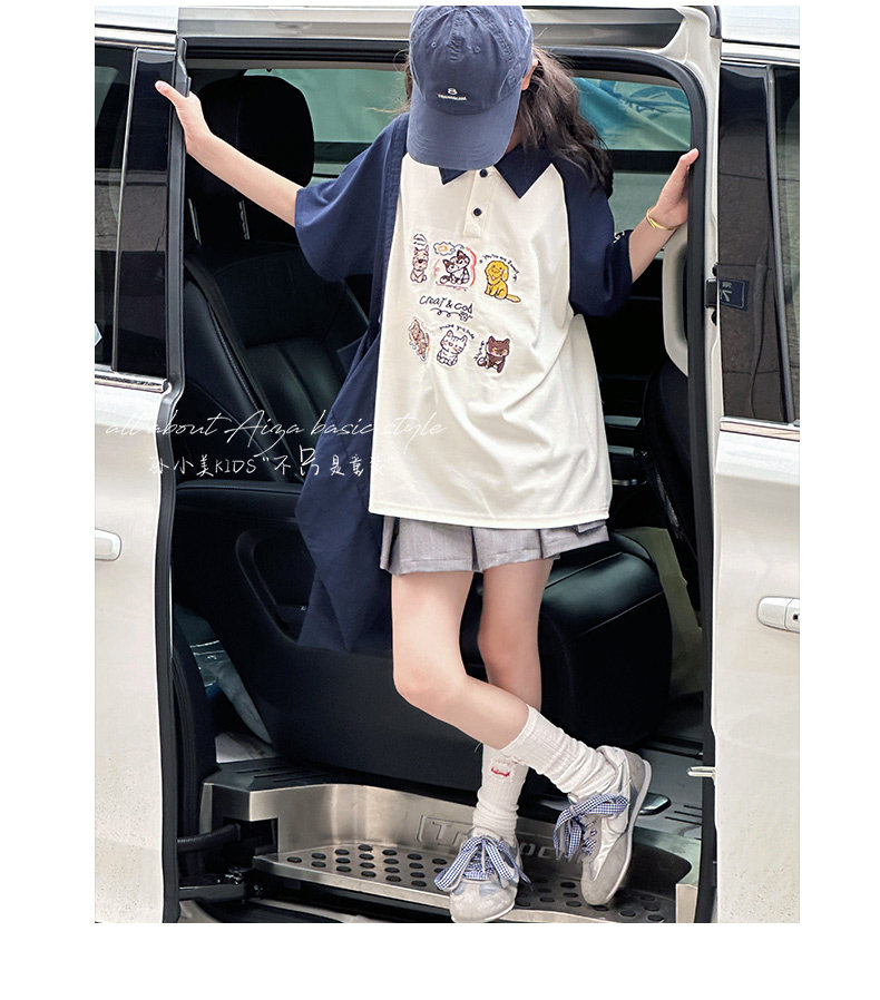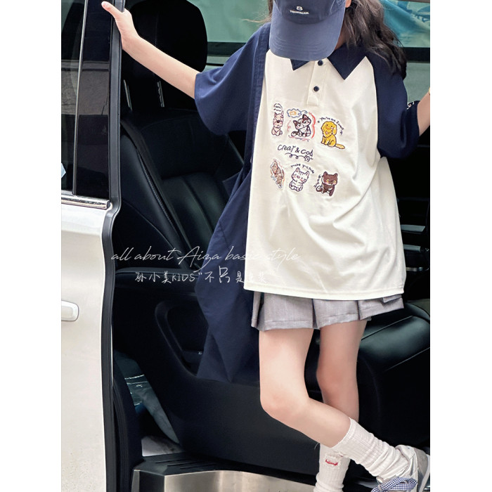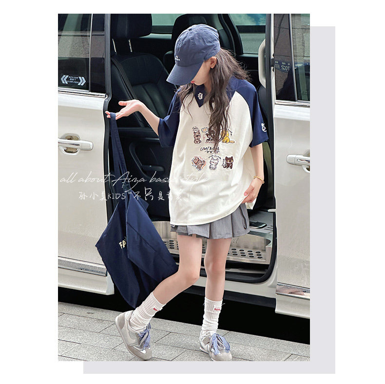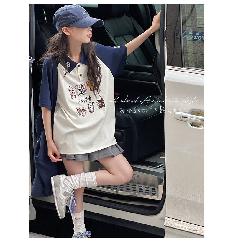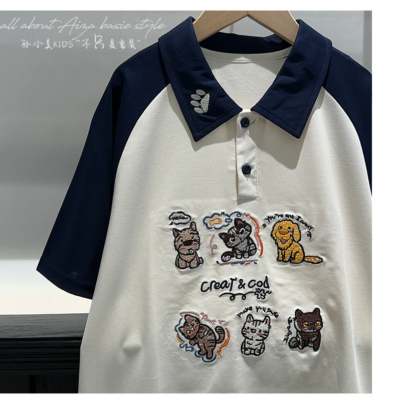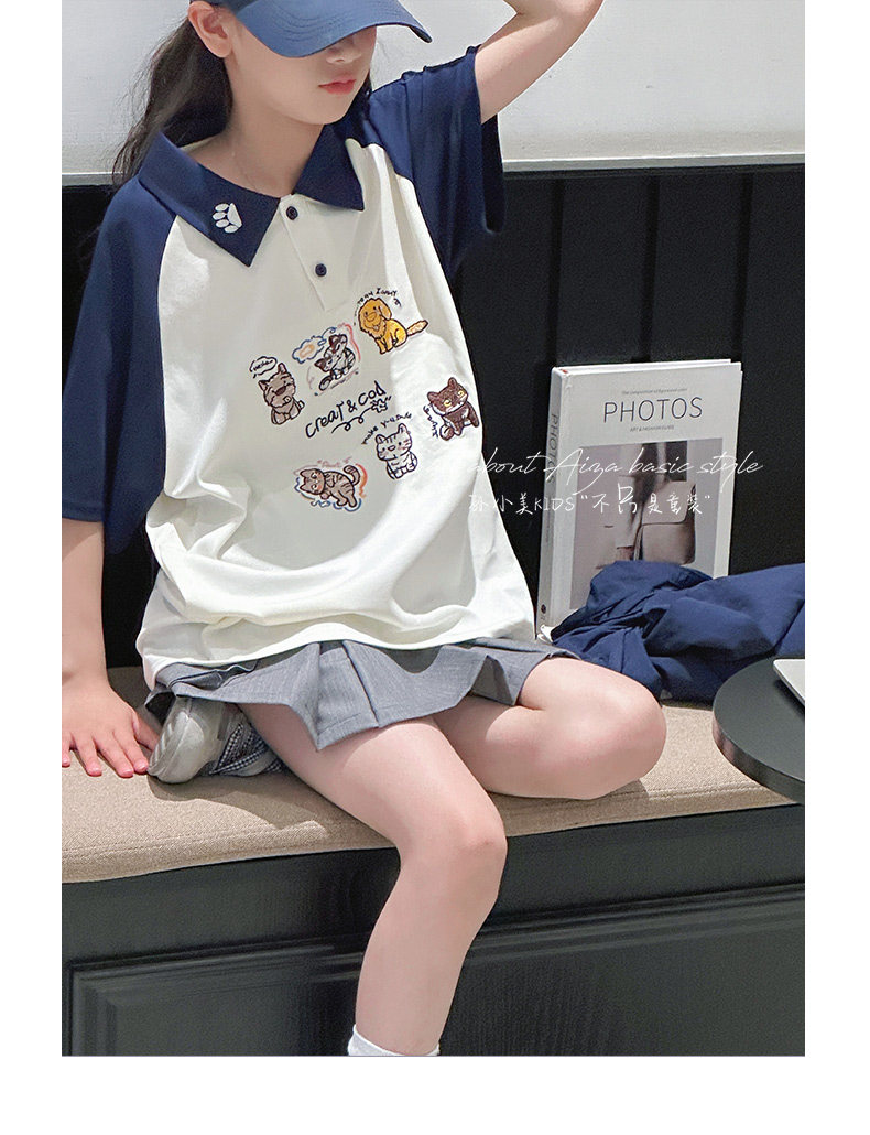 孫小美kids 韓系撞色女童夏裝polo衫短袖2025新款兒童T恤洋氣上衣