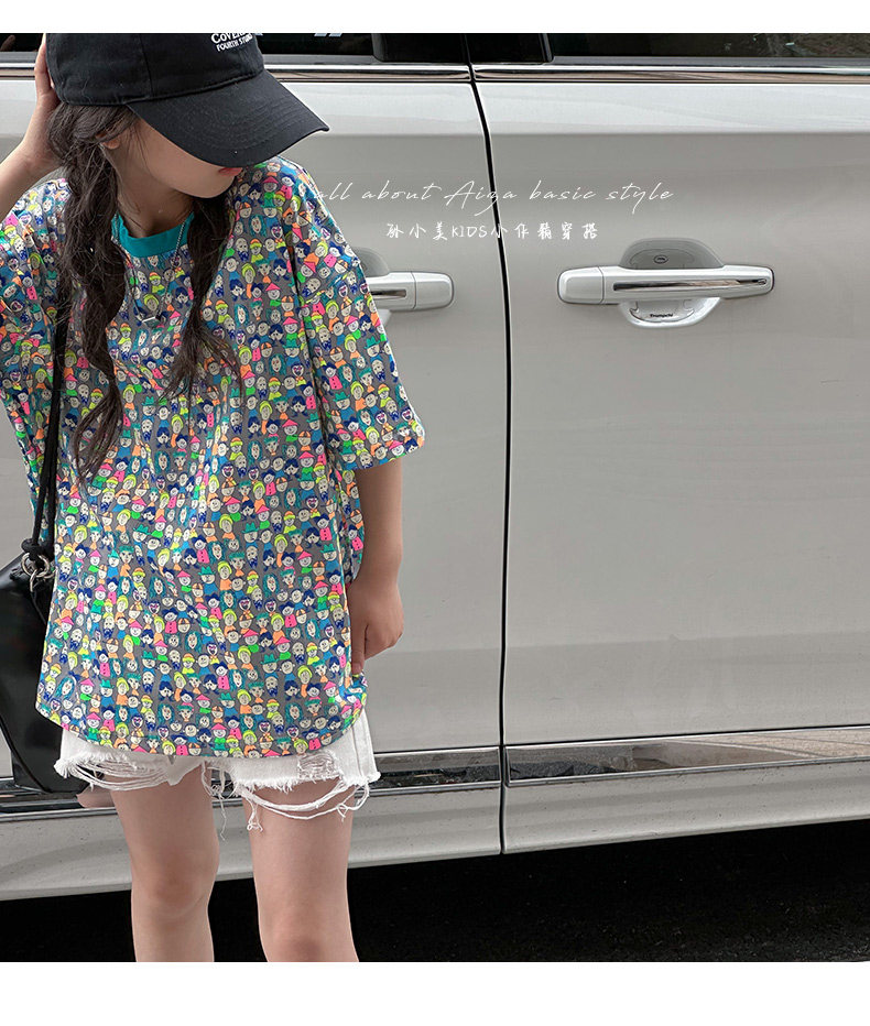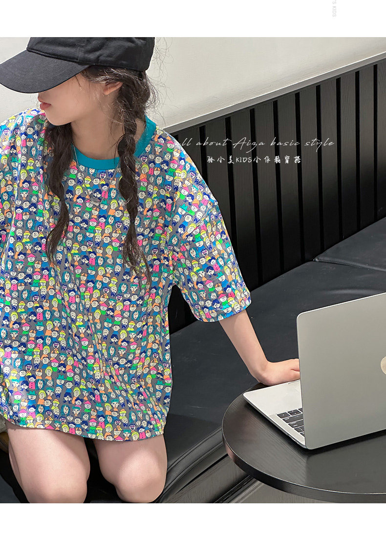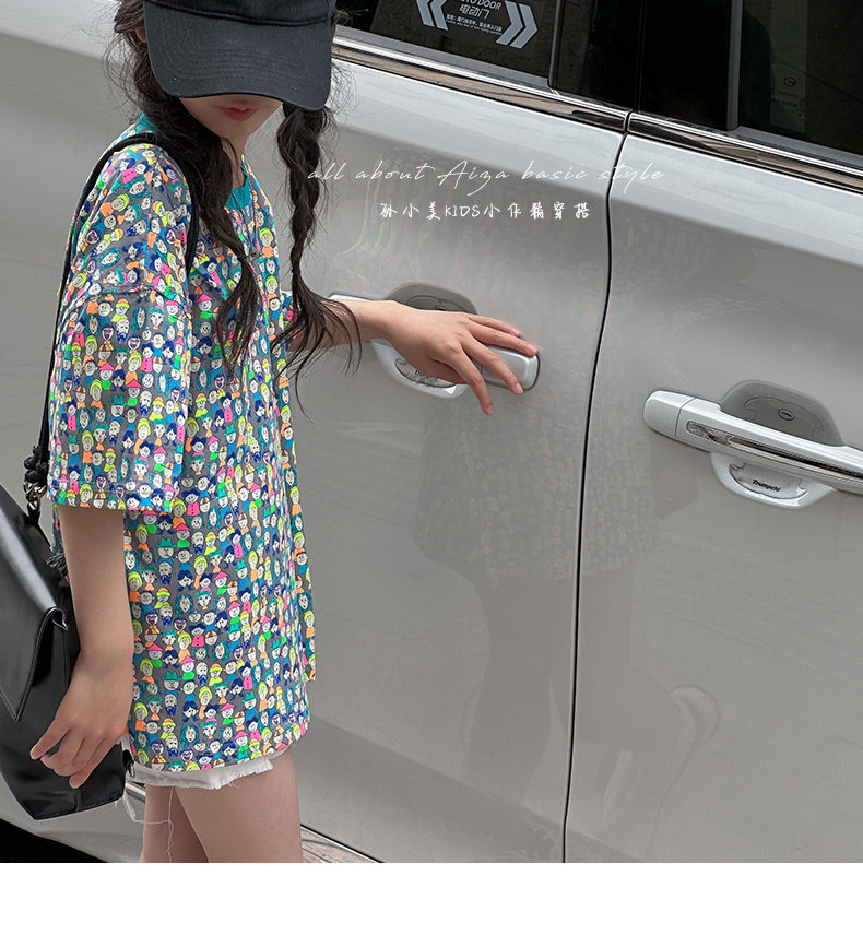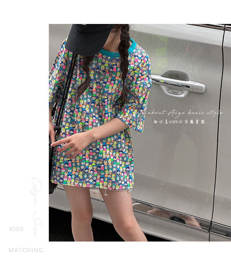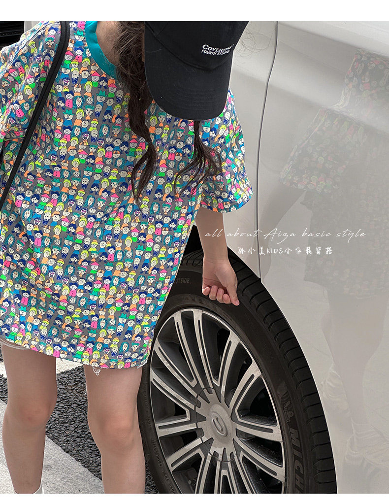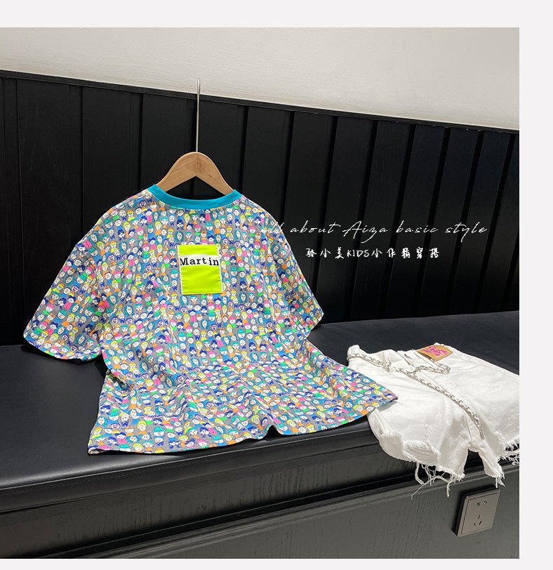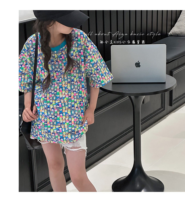 設計師新款時髦滿印女童短袖T恤兒童上衣2025夏裝韓國童裝寬鬆潮t