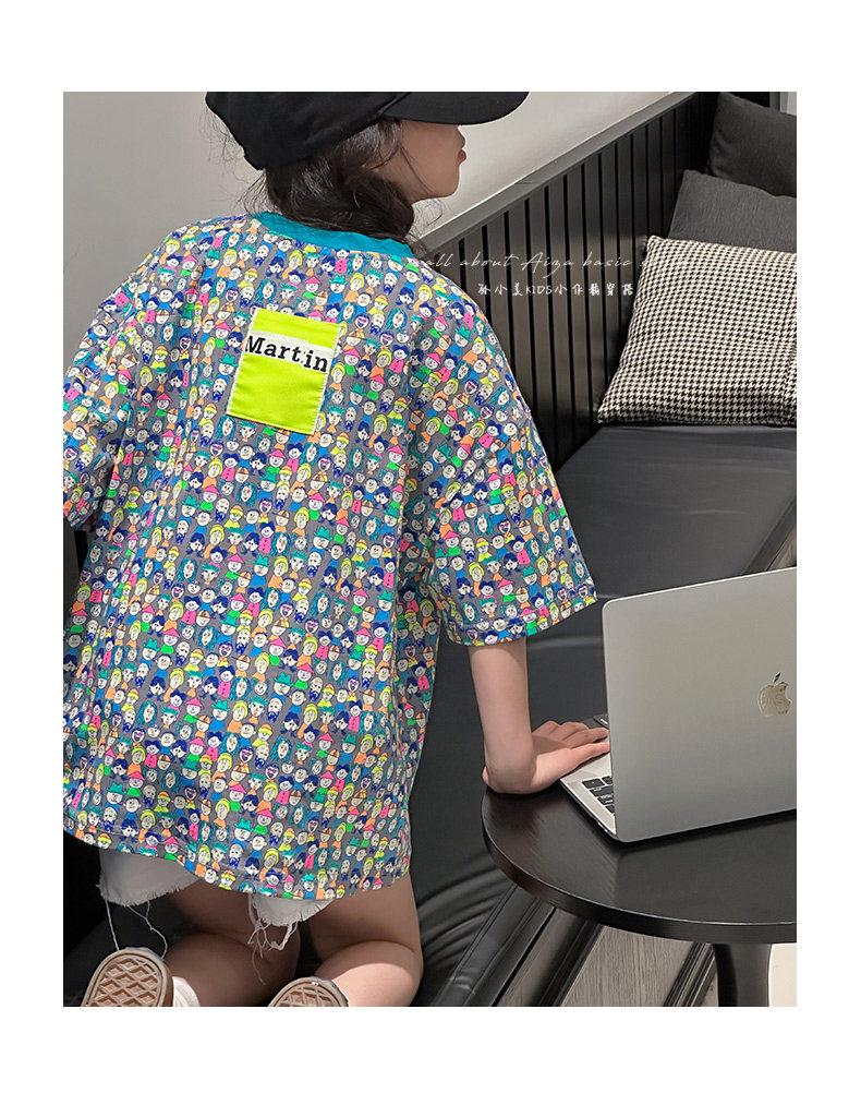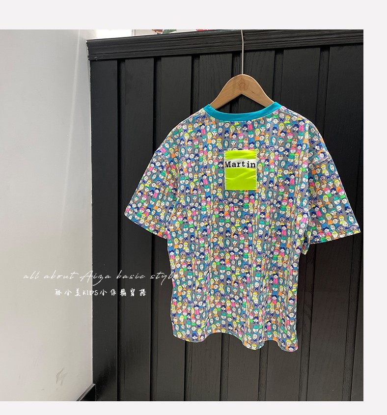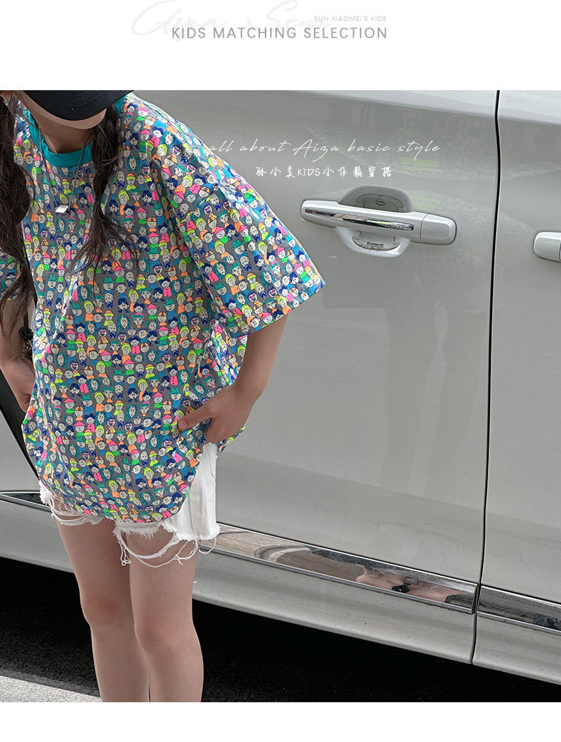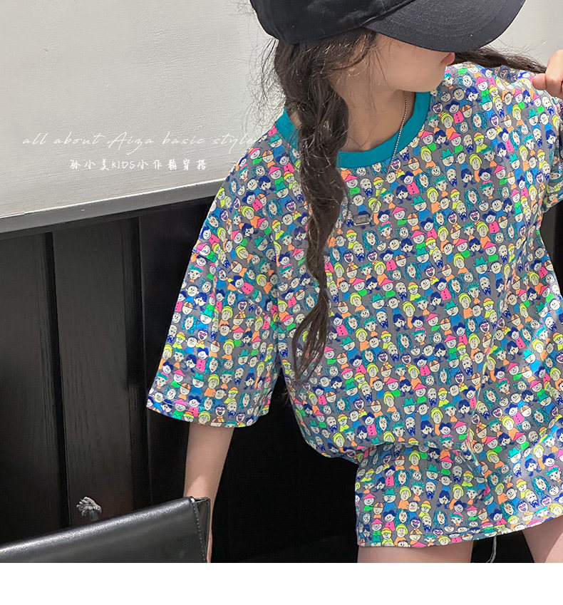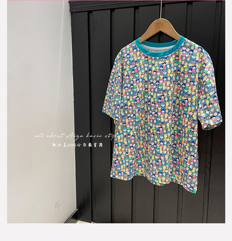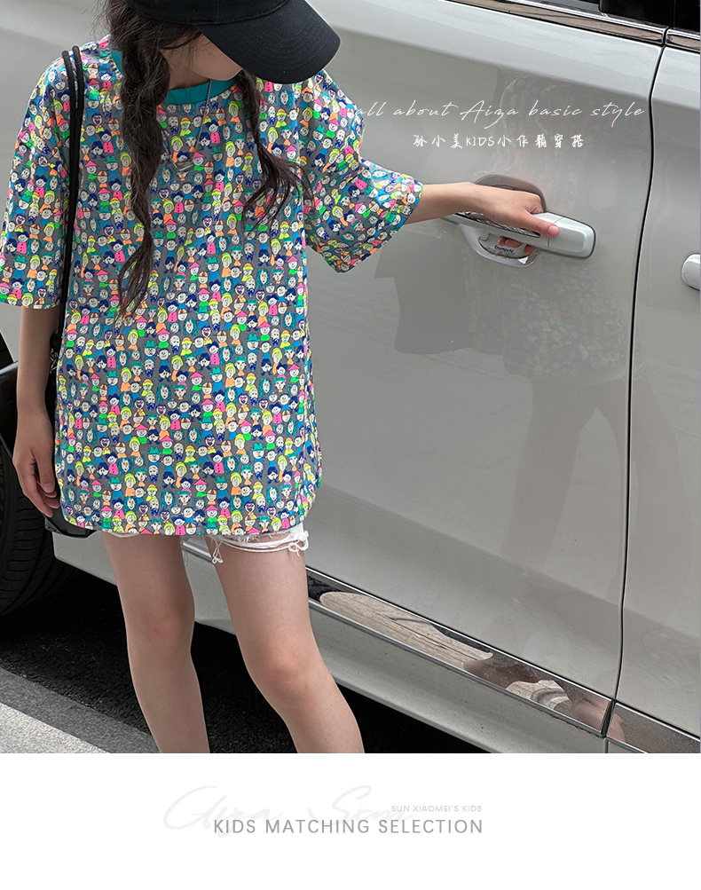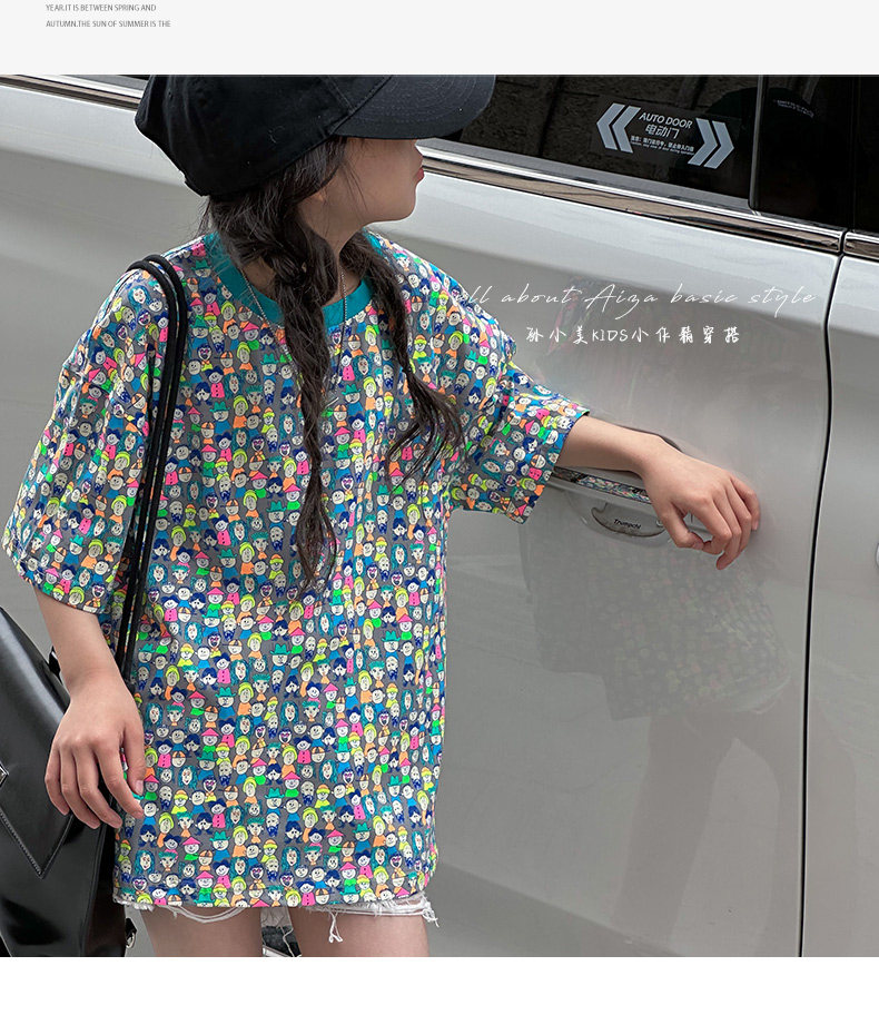 設計師新款時髦滿印女童短袖T恤兒童上衣2025夏裝韓國童裝寬鬆潮t