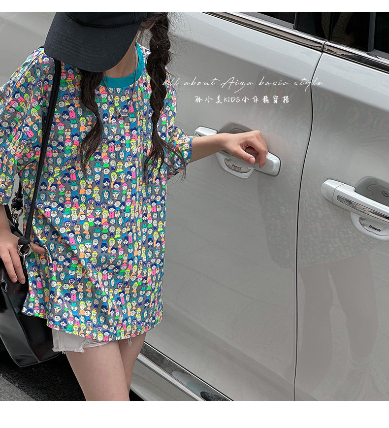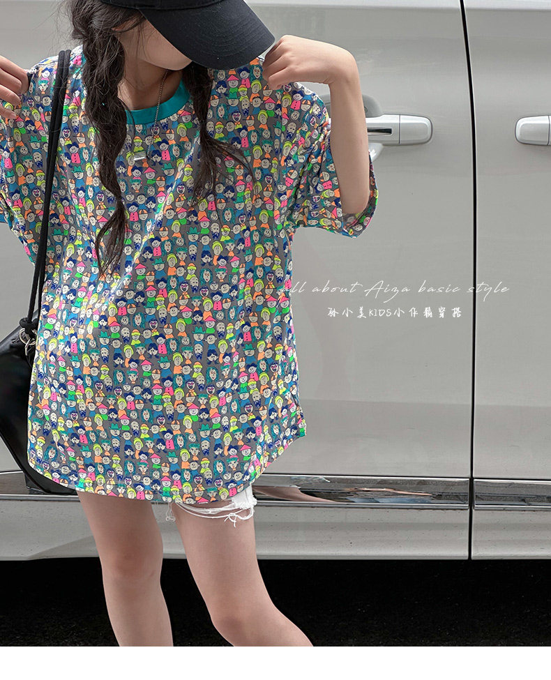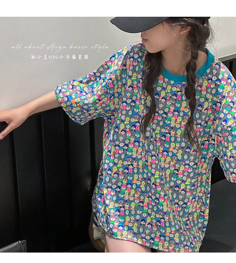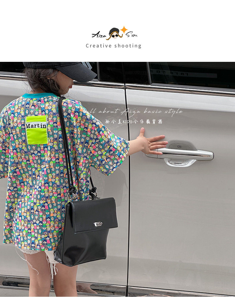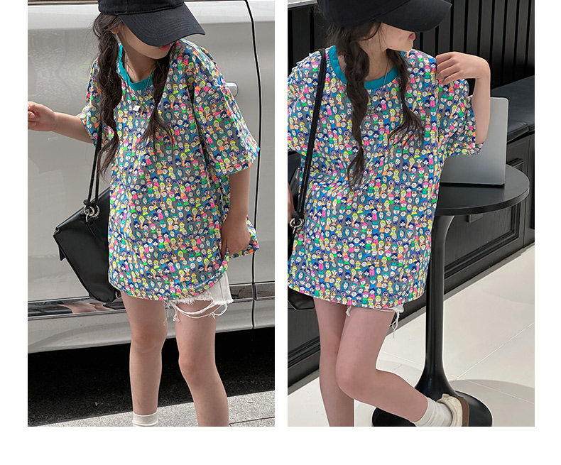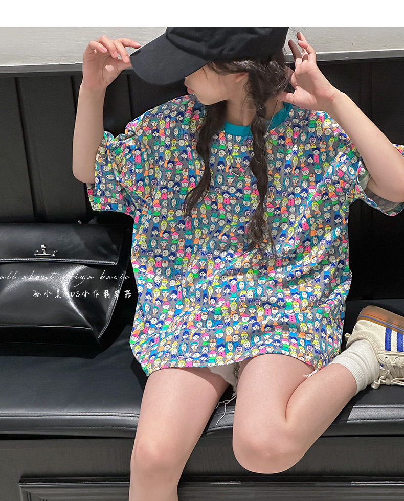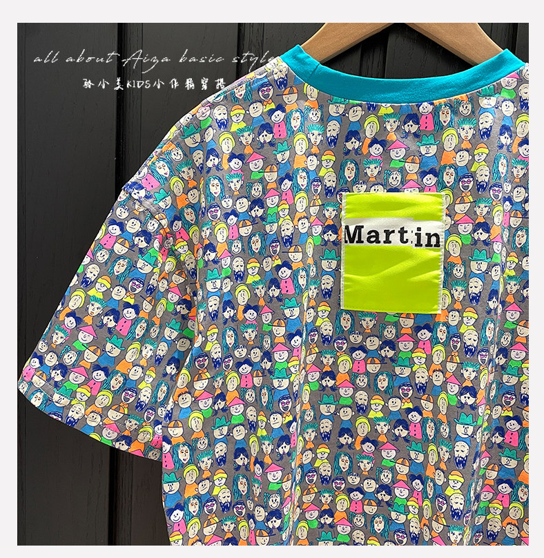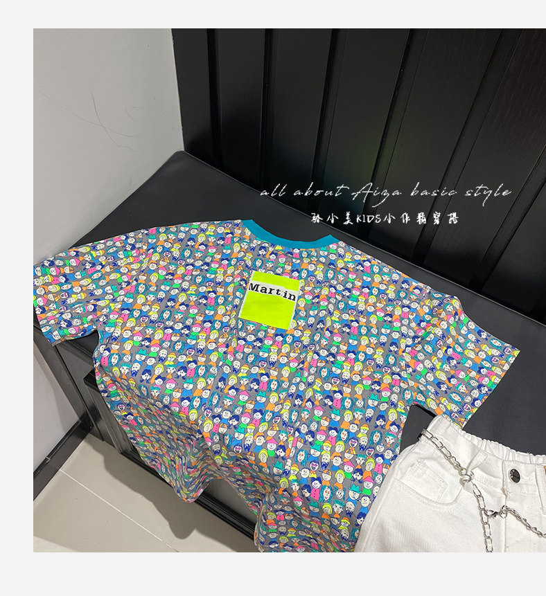 設計師新款時髦滿印女童短袖T恤兒童上衣2025夏裝韓國童裝寬鬆潮t