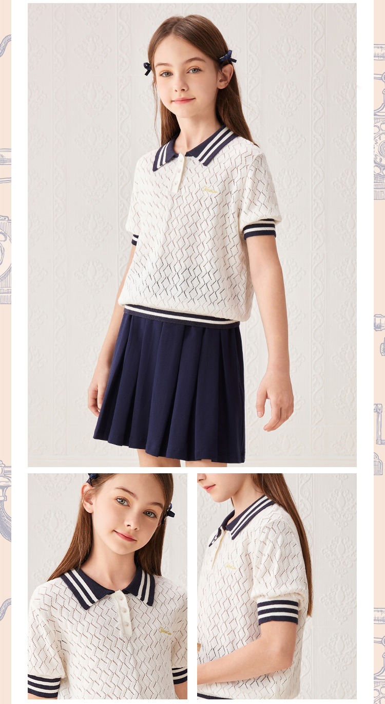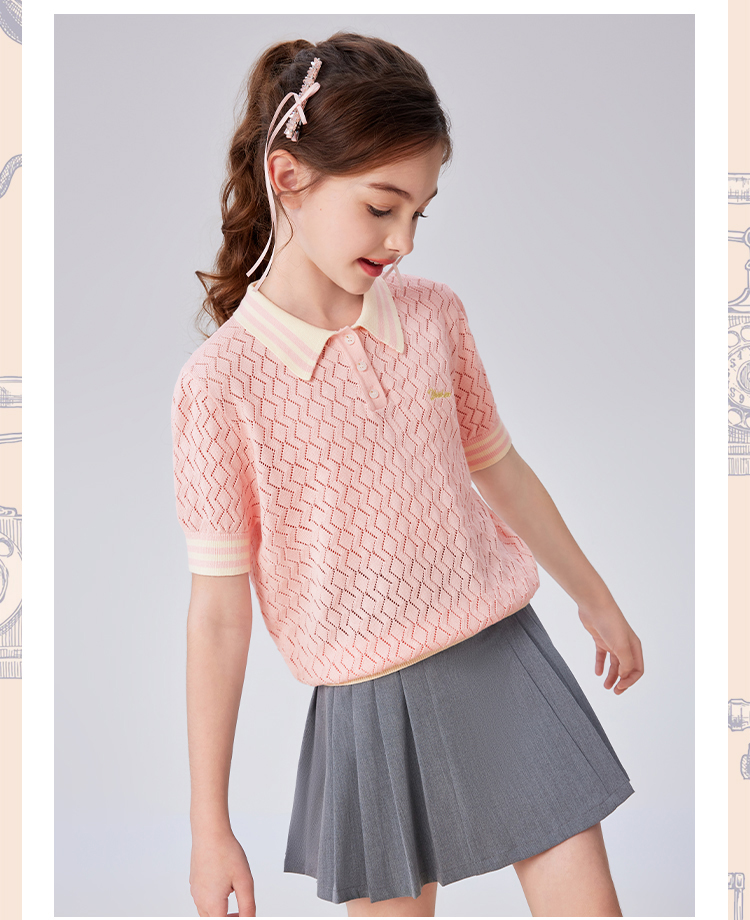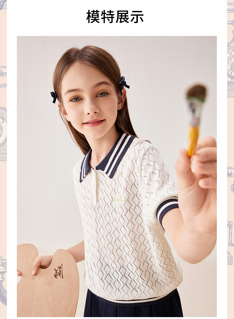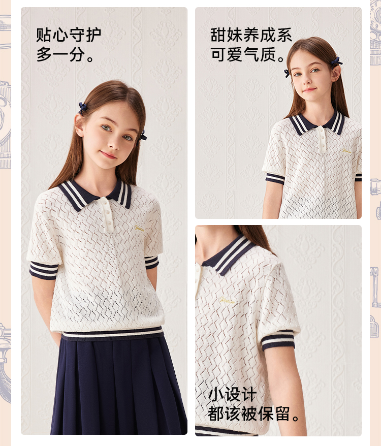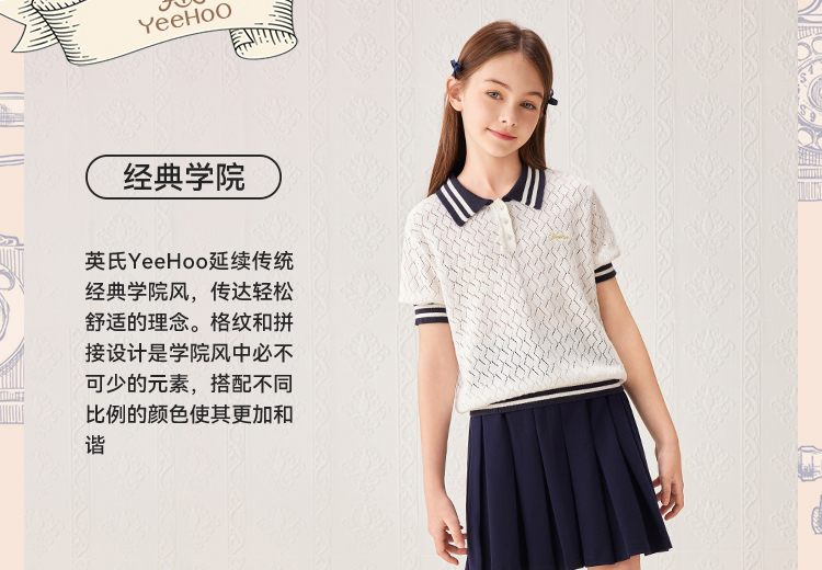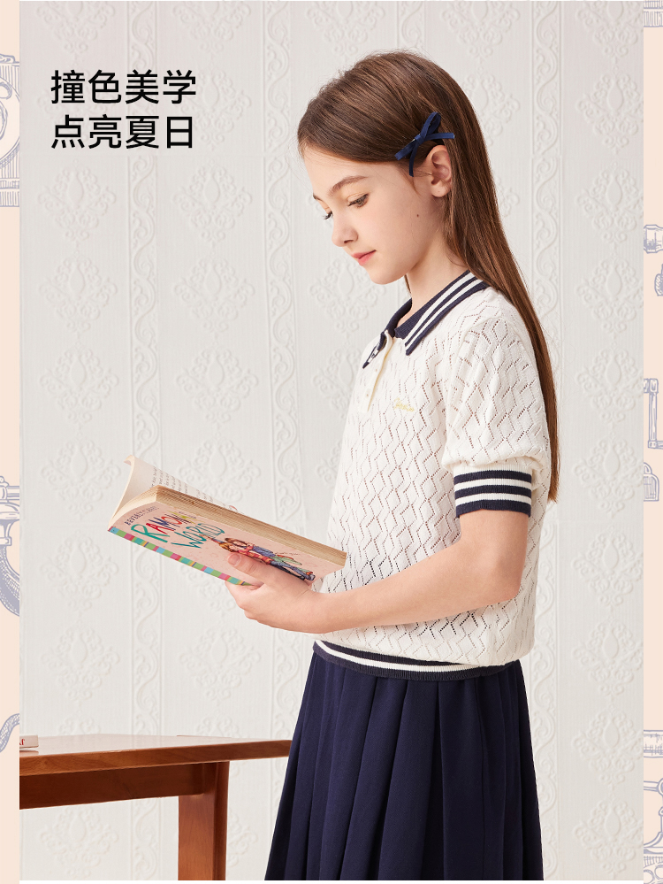 英氏女童短袖polo衫2025夏季新款兒童翻領針織T恤中大童女孩上衣