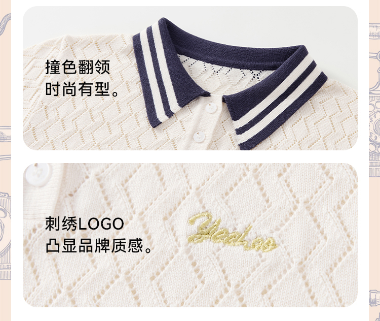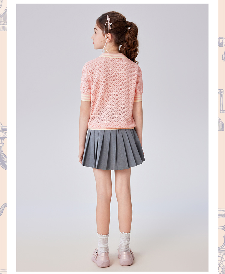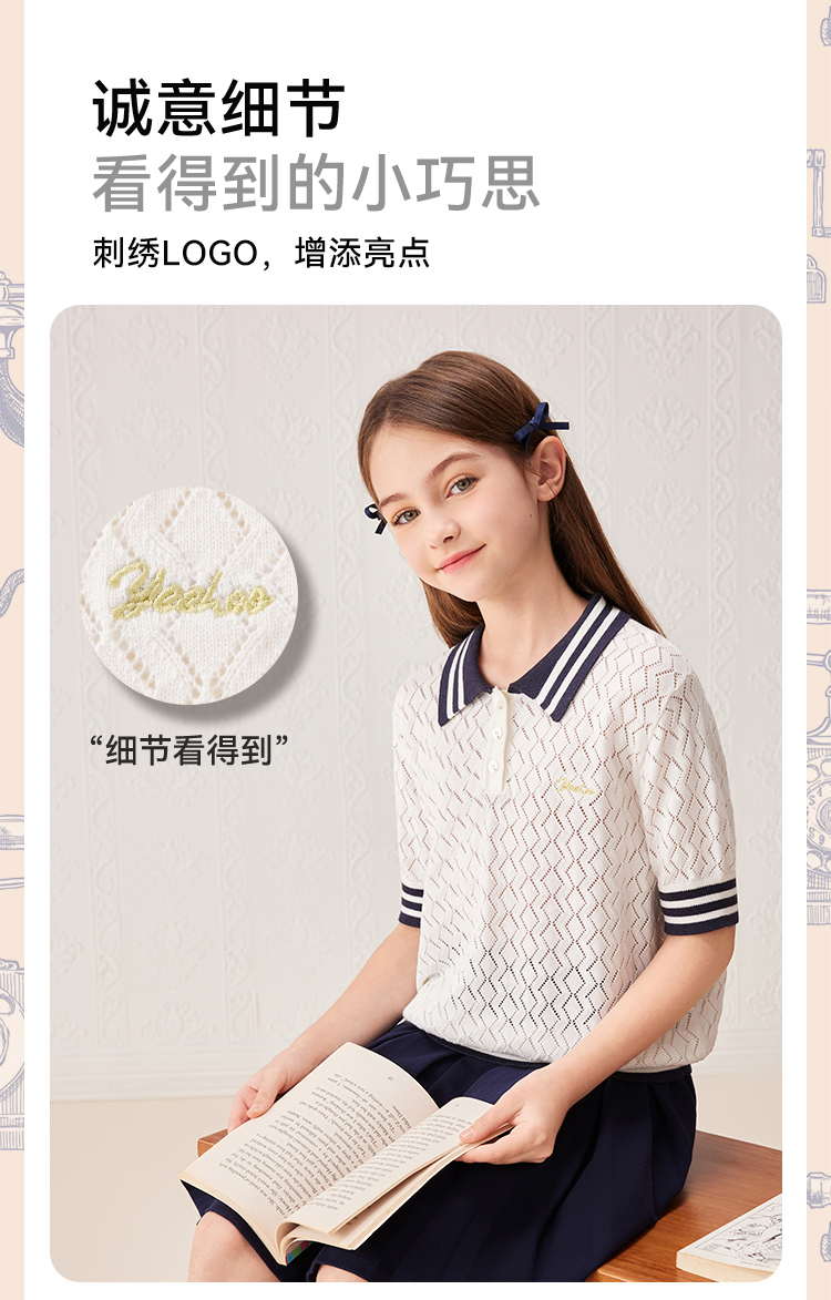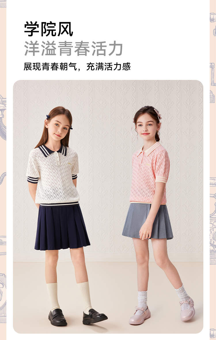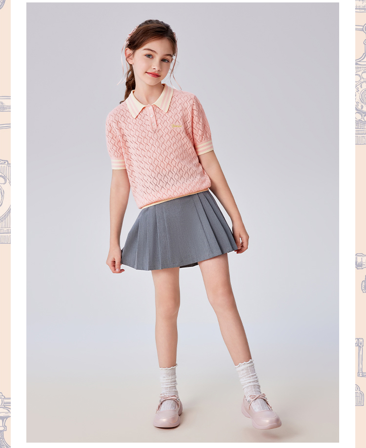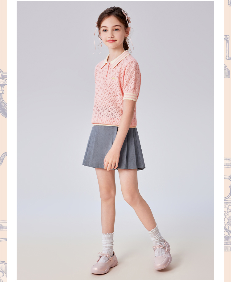英氏女童短袖polo衫2025夏季新款兒童翻領針織T恤中大童女孩上衣