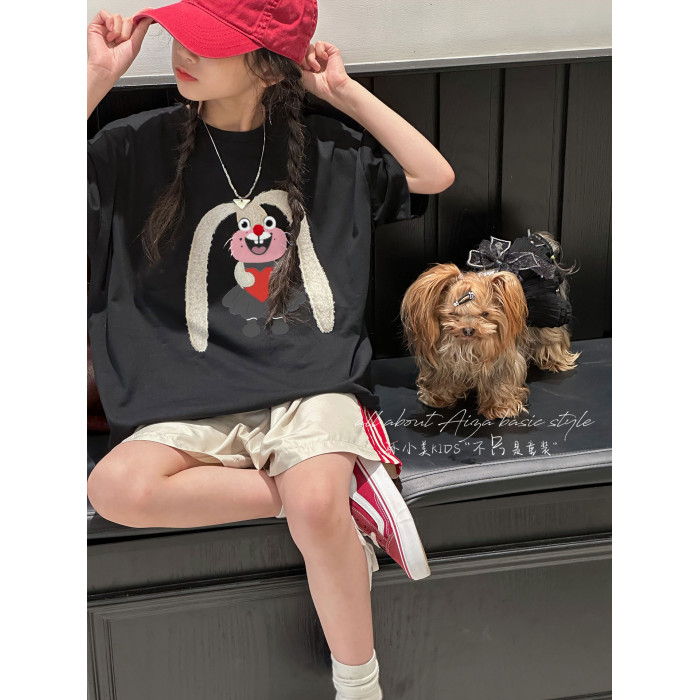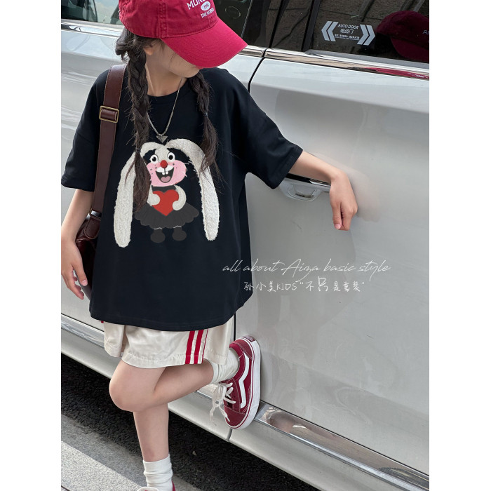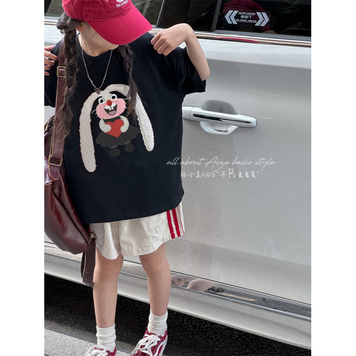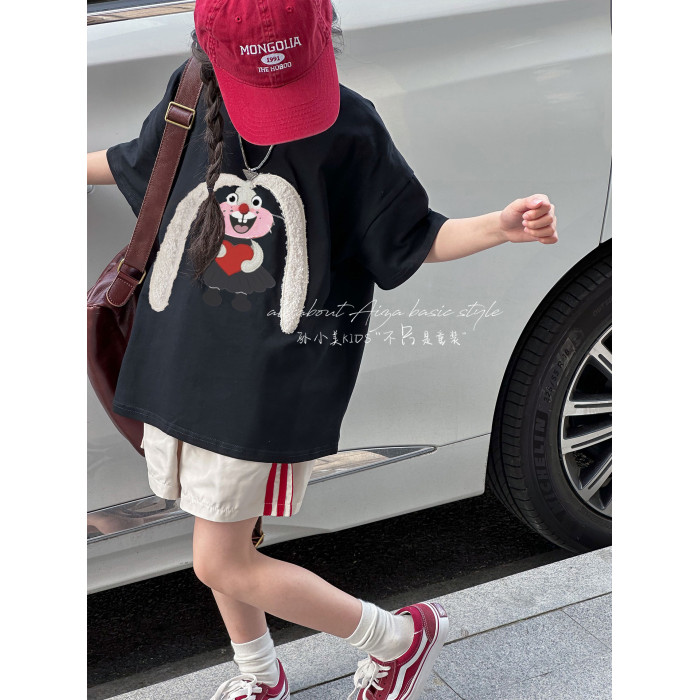 設計師新款毛巾綉女童短袖T恤兒童上衣2026夏裝韓國童裝大童寬鬆t