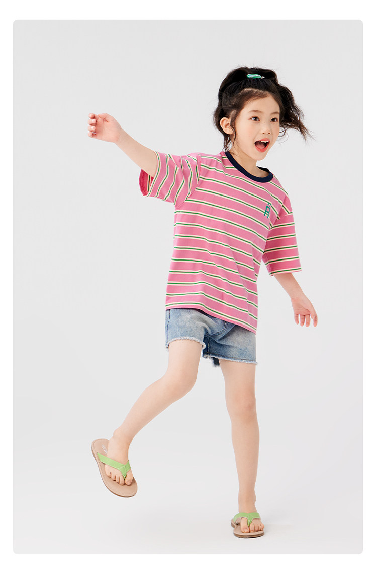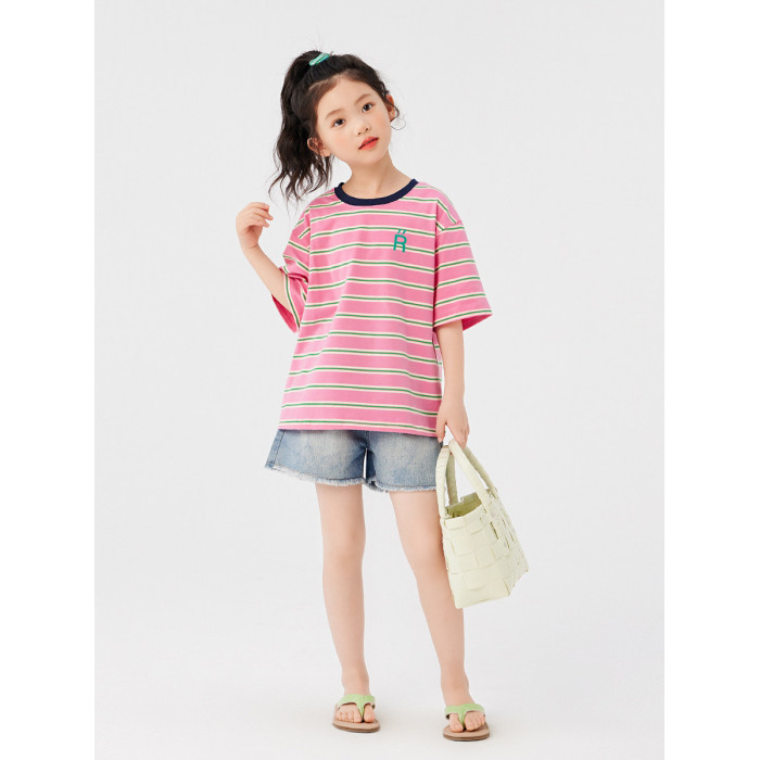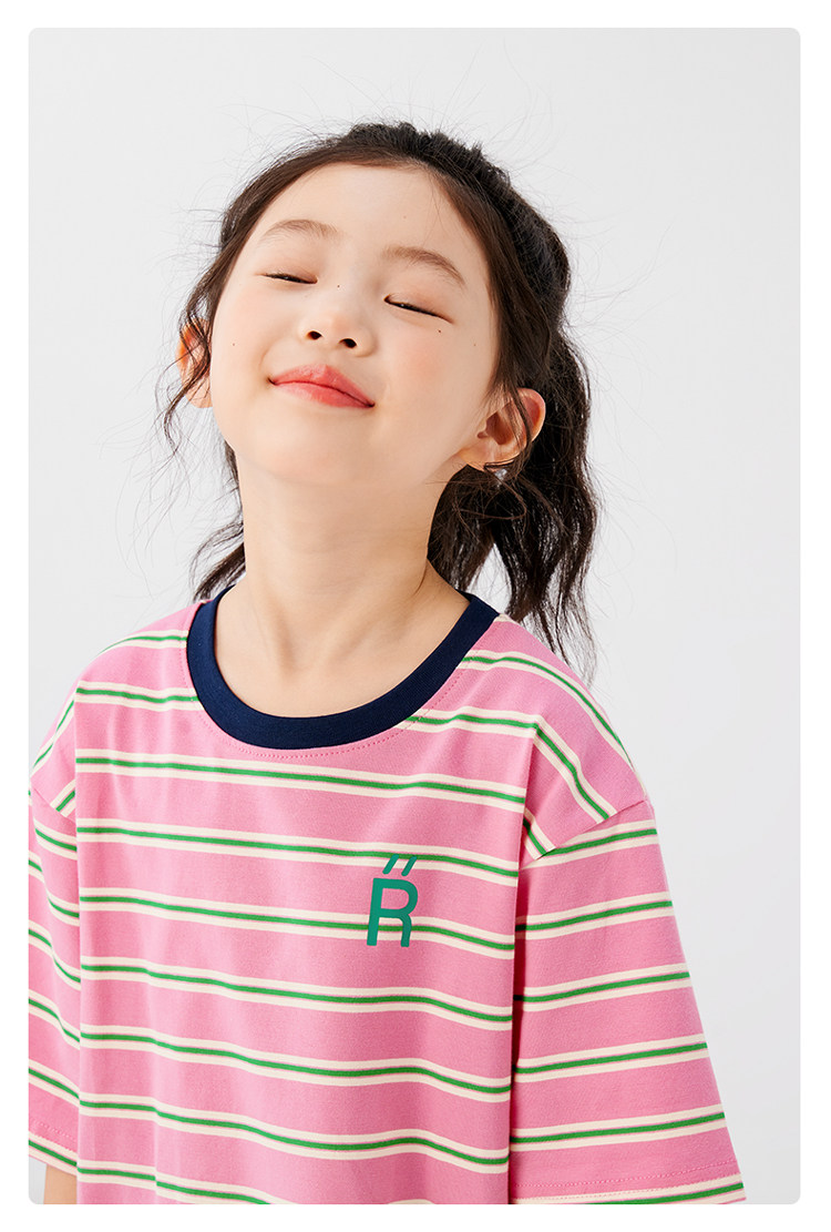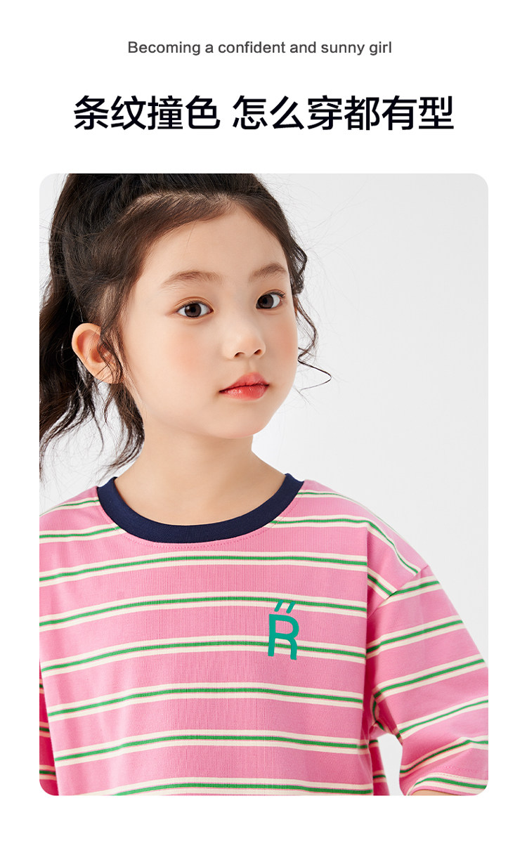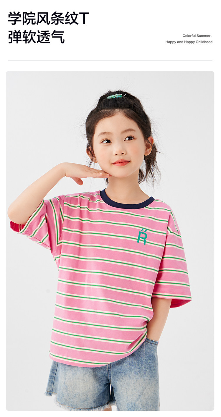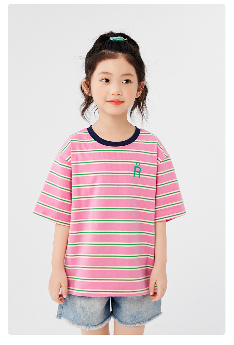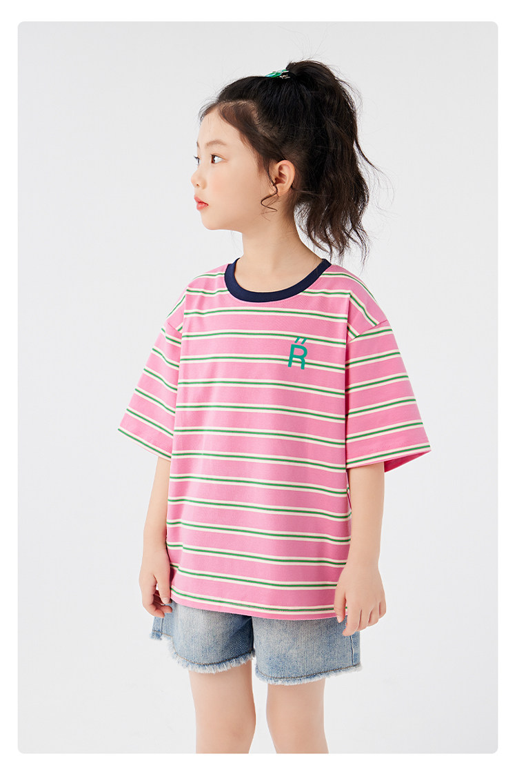 【特惠清倉】左西女童短袖t恤兒童夏裝條紋夏季上衣女大童衣服