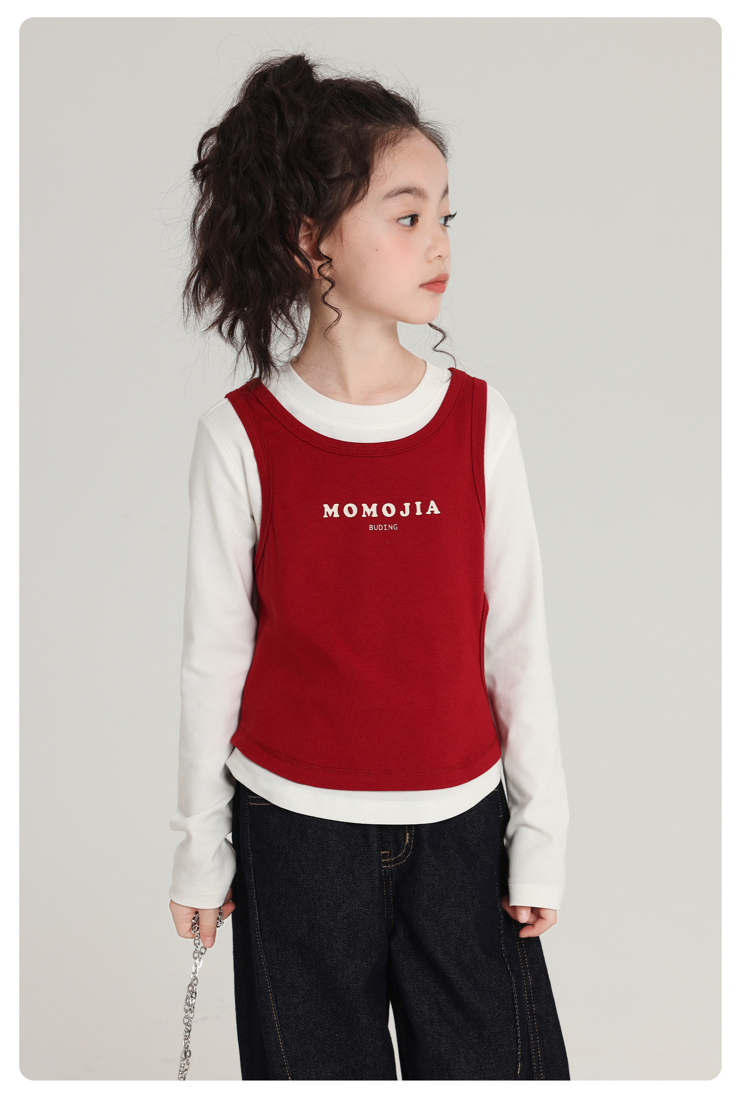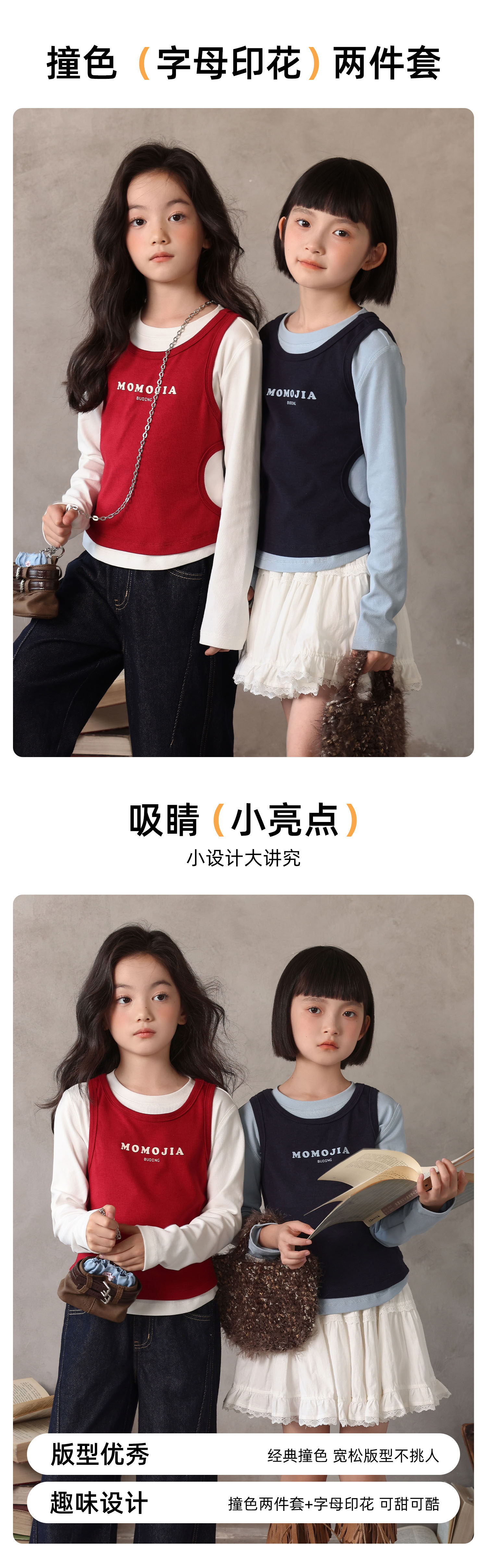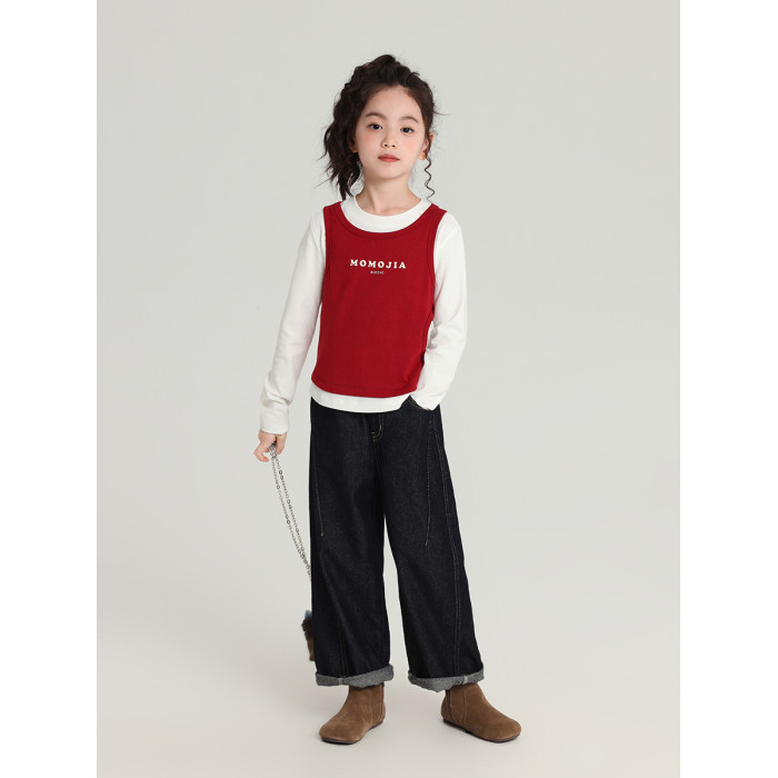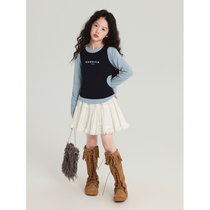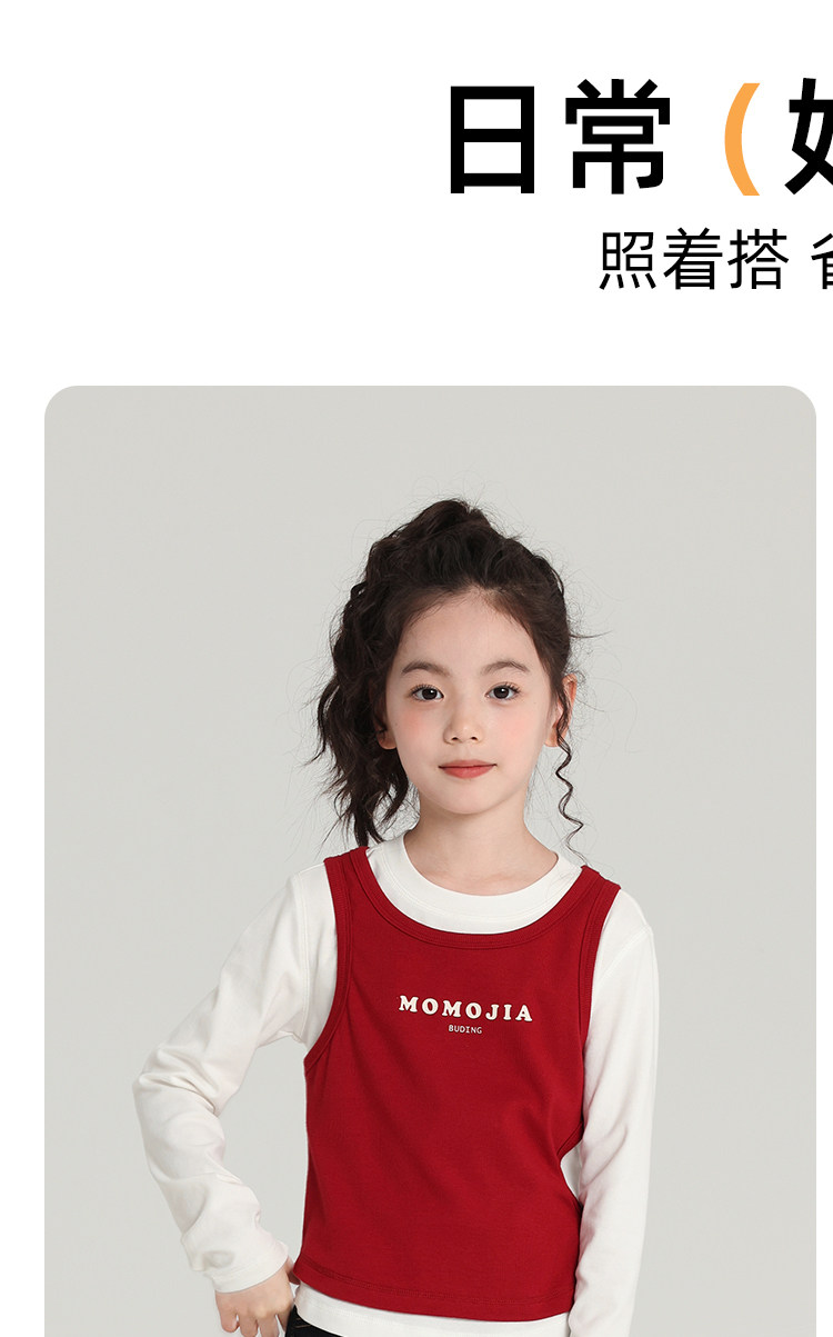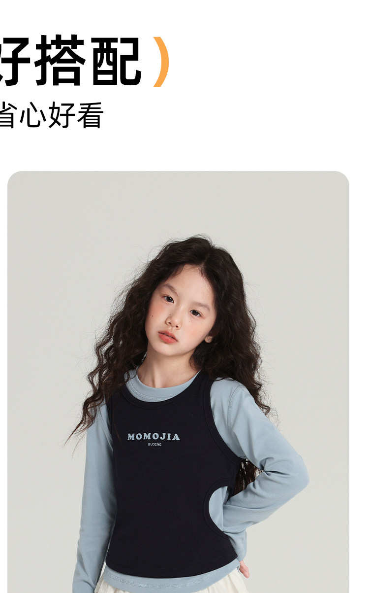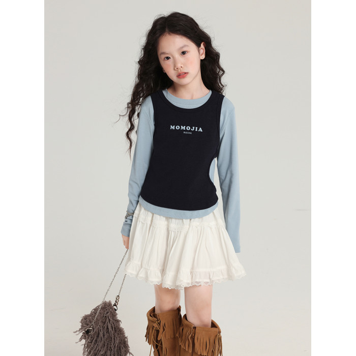 布丁哈魯童裝秋裝女童百搭上衣2026春秋新款兒童假兩件字母T恤