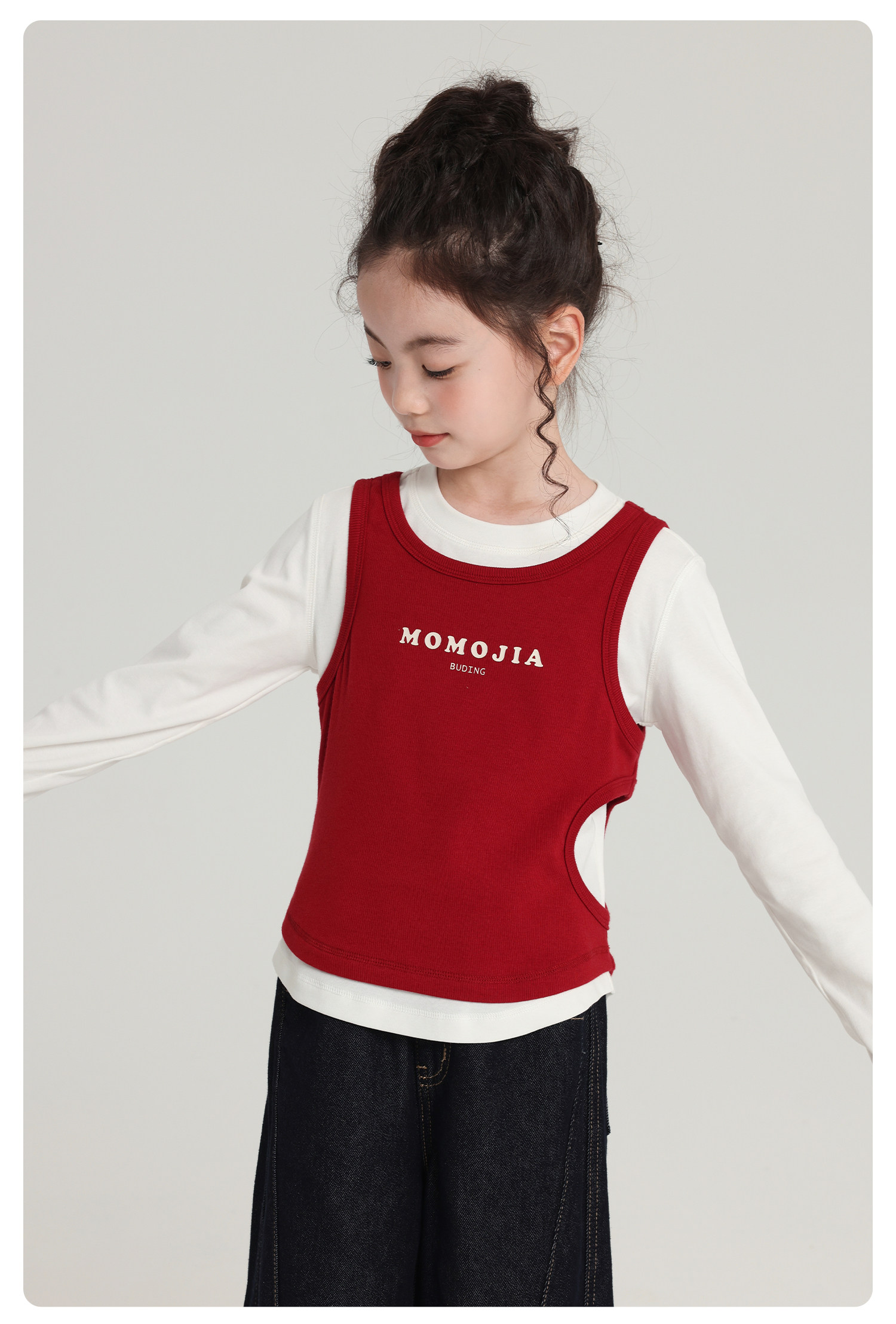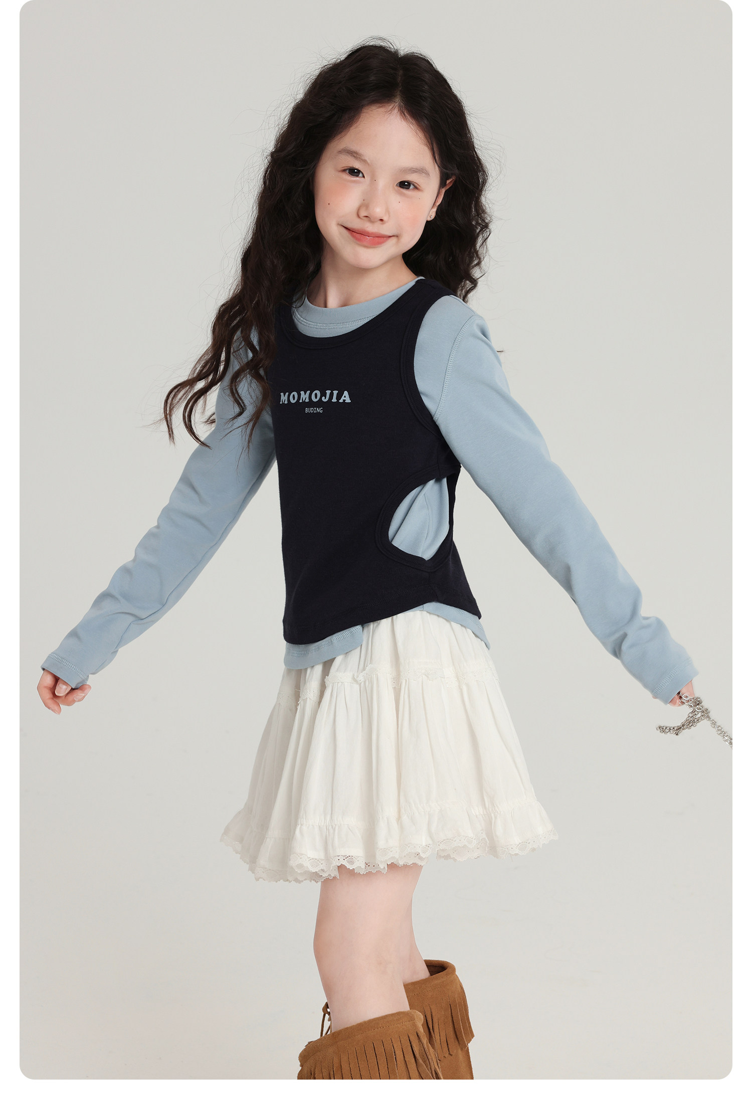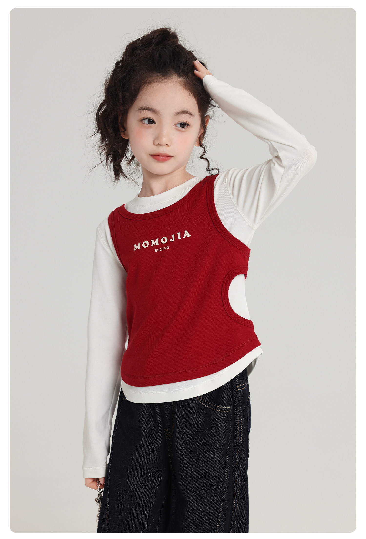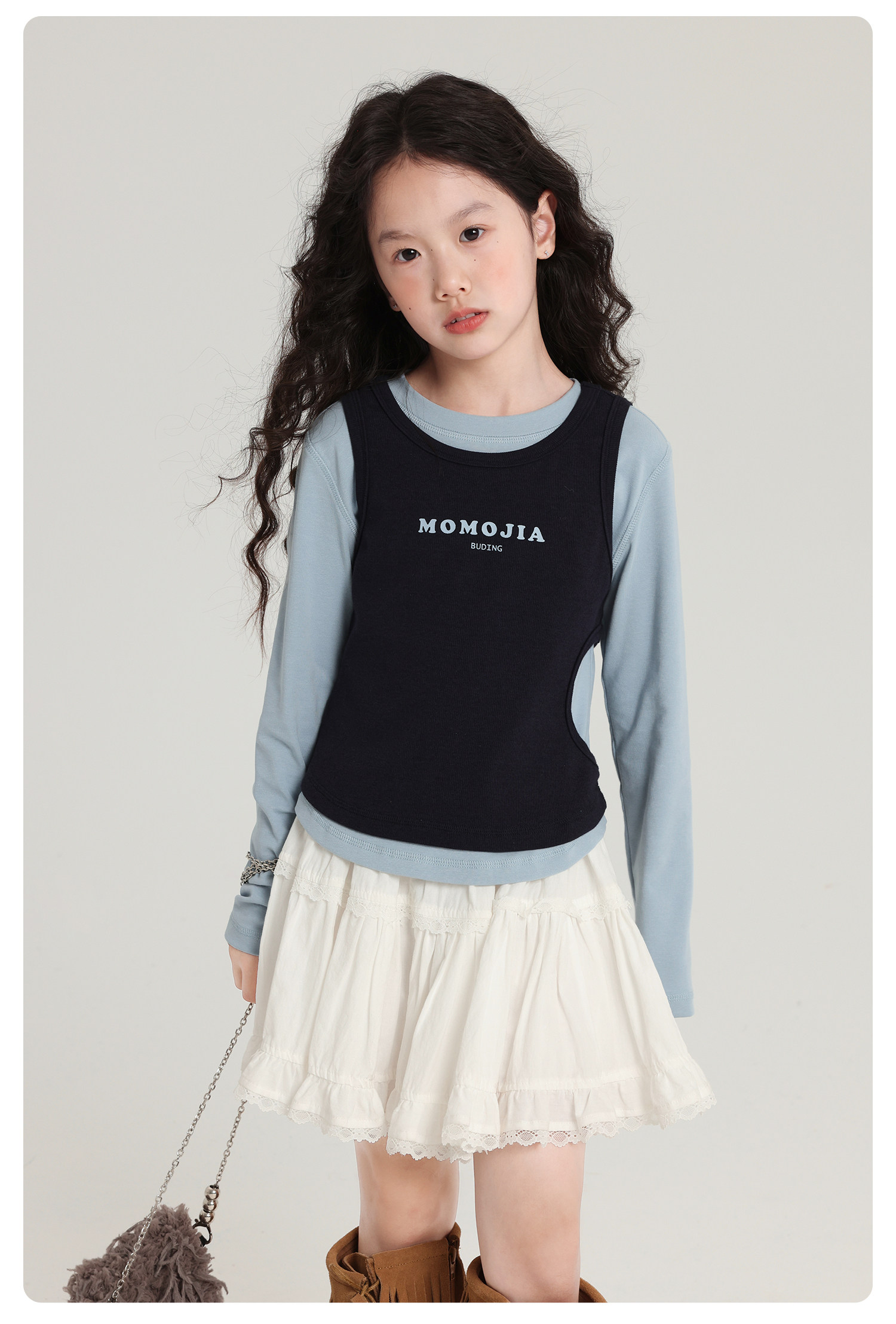 布丁哈魯童裝秋裝女童百搭上衣2026春秋新款兒童假兩件字母T恤