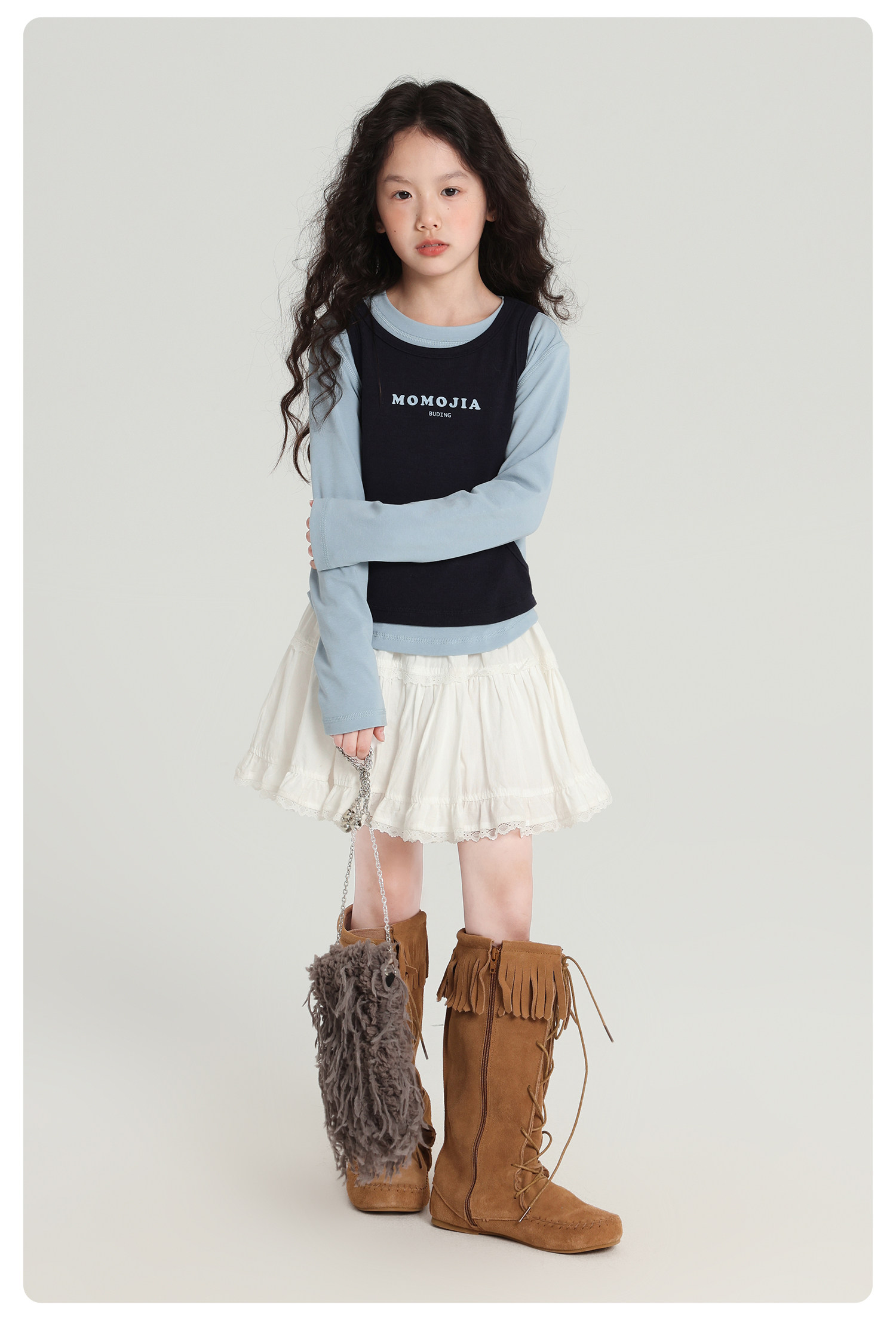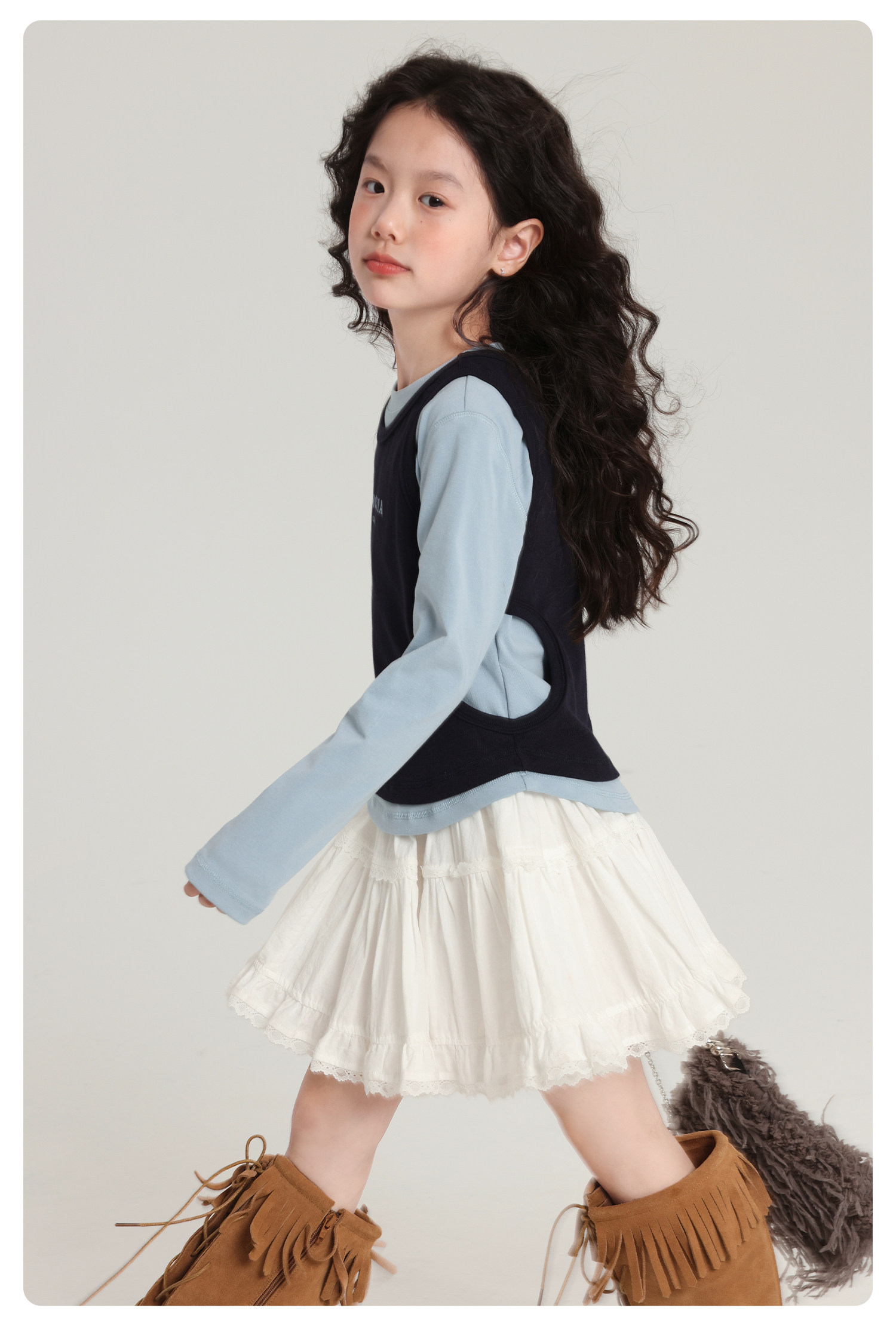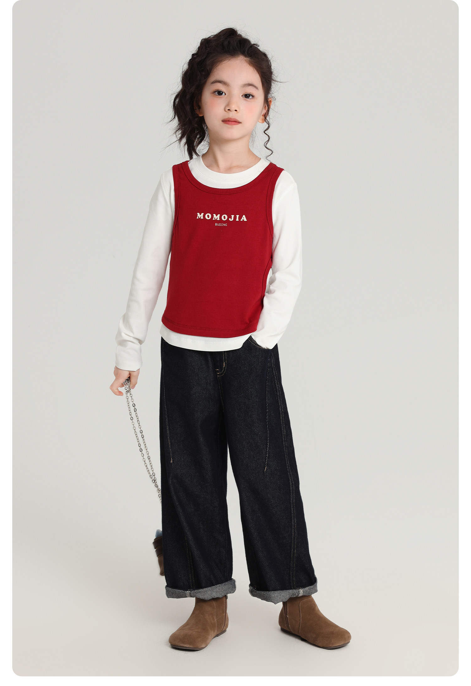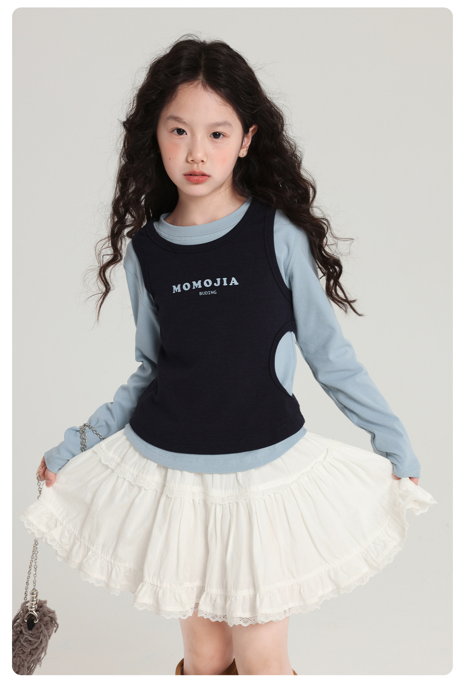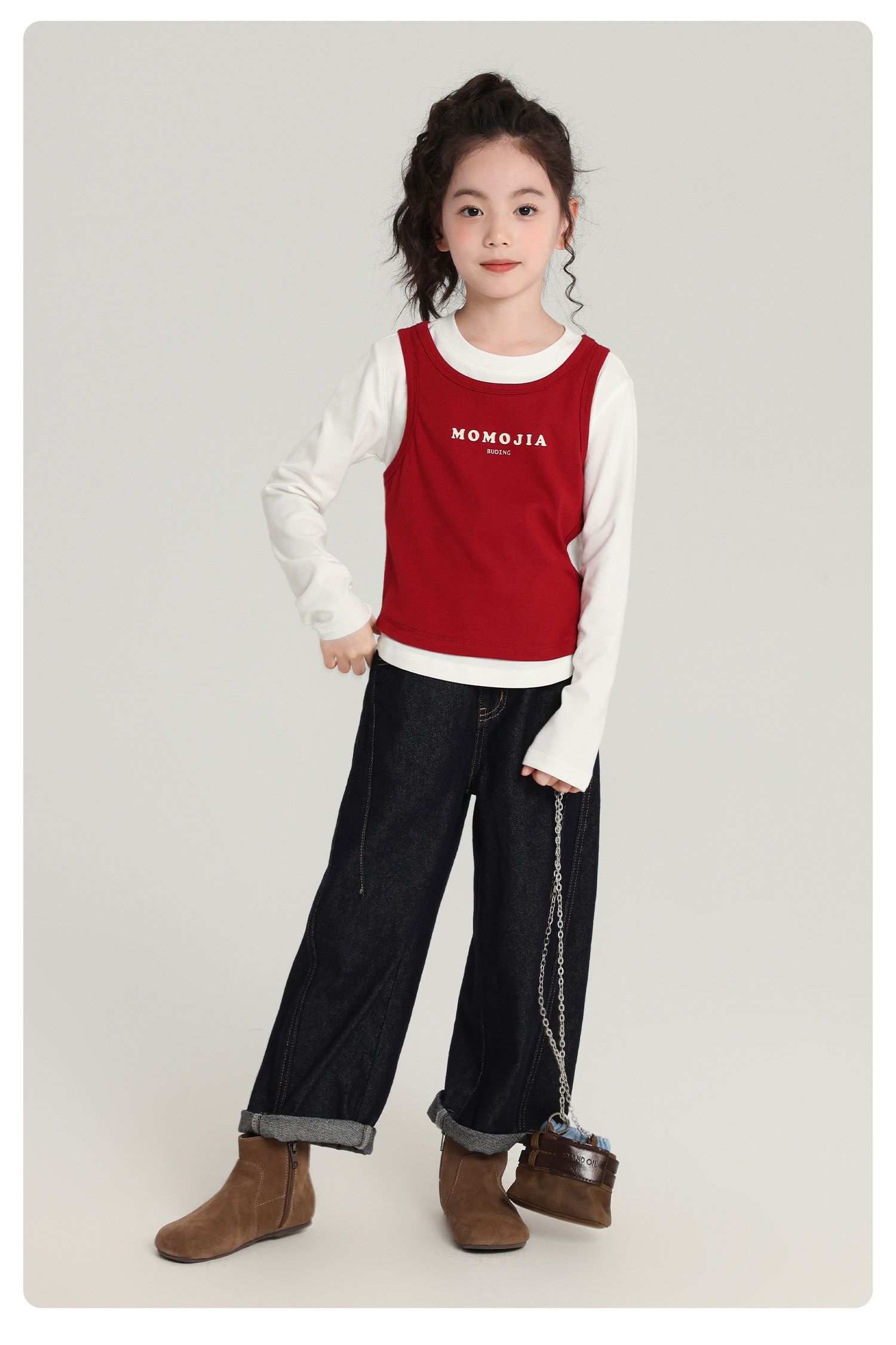 布丁哈魯童裝秋裝女童百搭上衣2026春秋新款兒童假兩件字母T恤