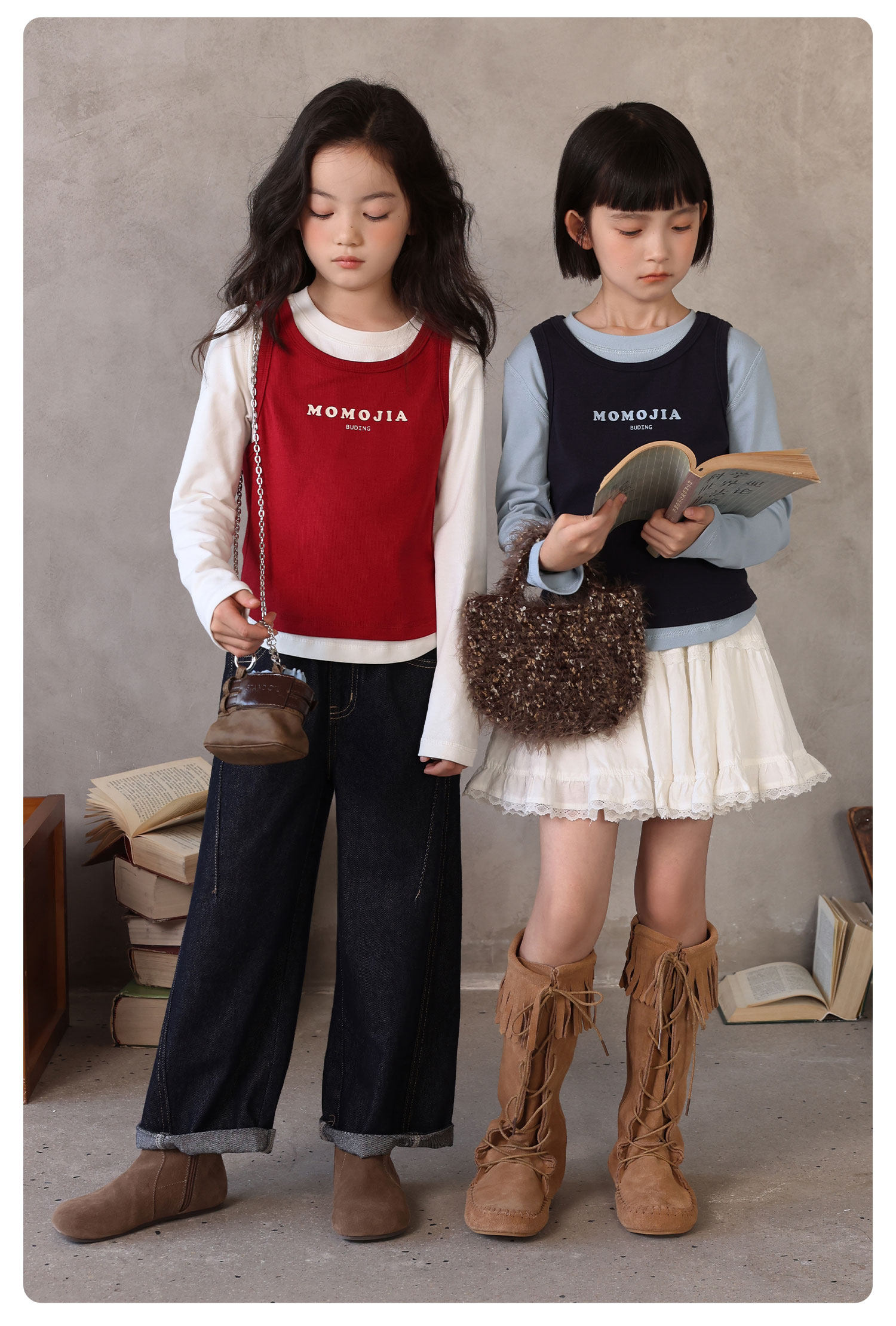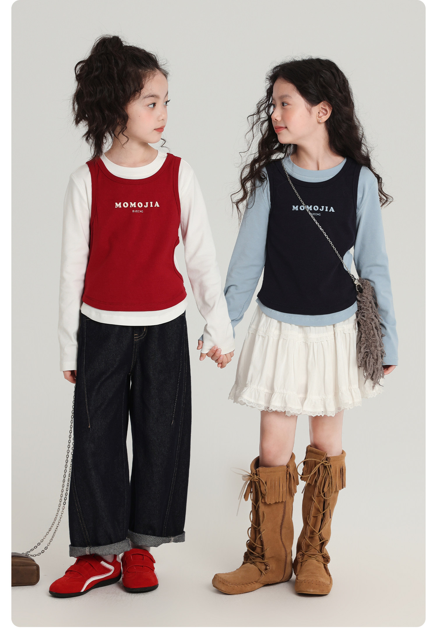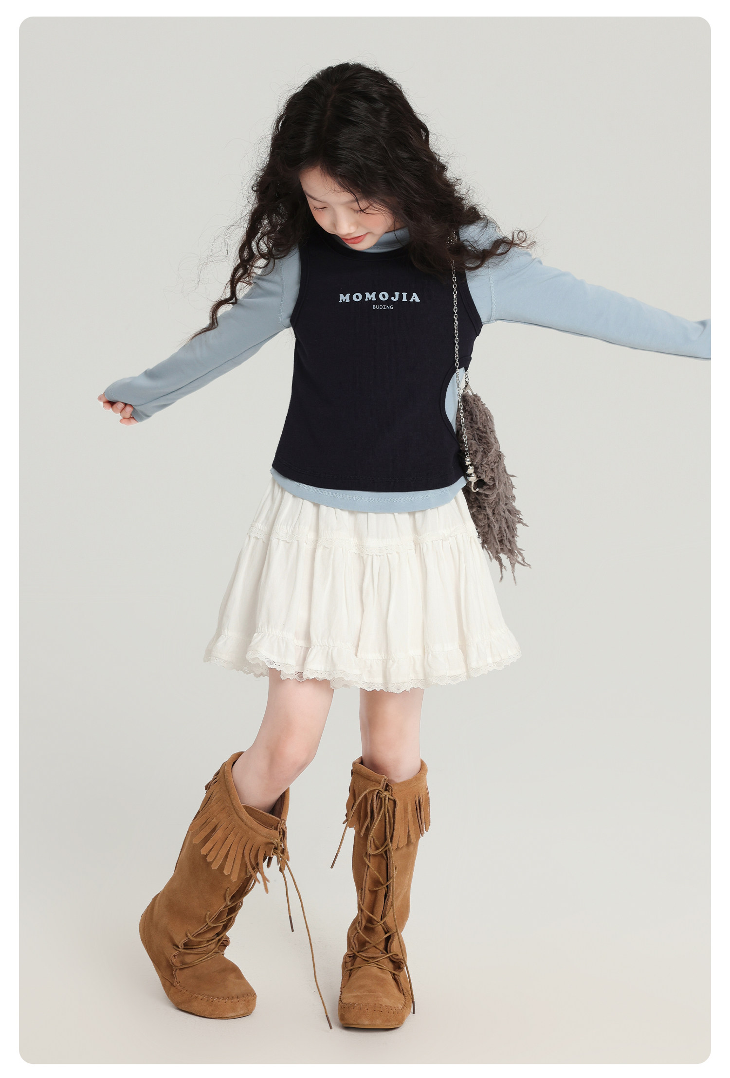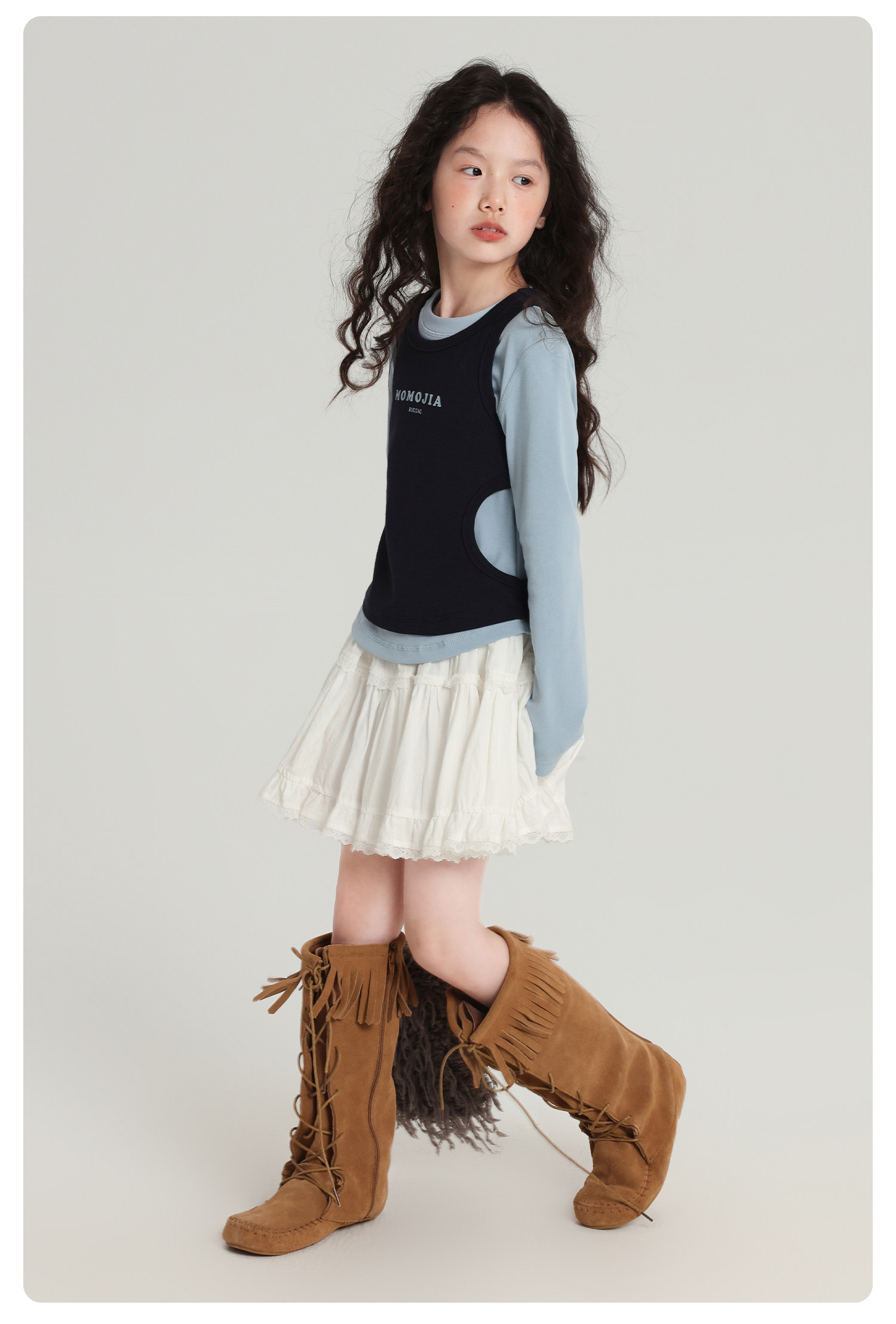 布丁哈魯童裝秋裝女童百搭上衣2026春秋新款兒童假兩件字母T恤