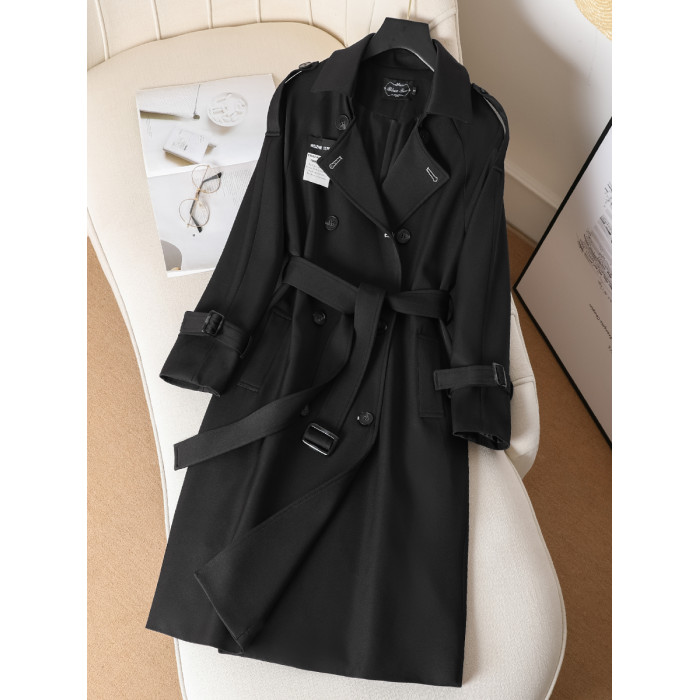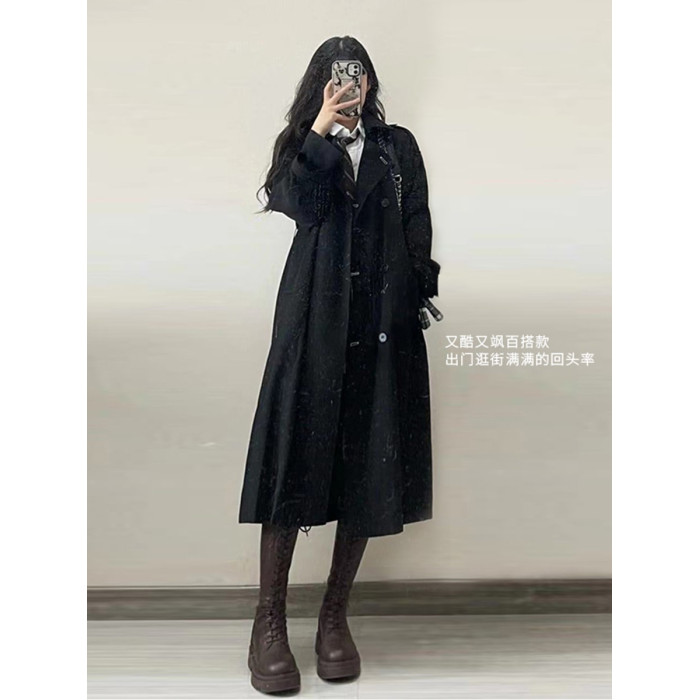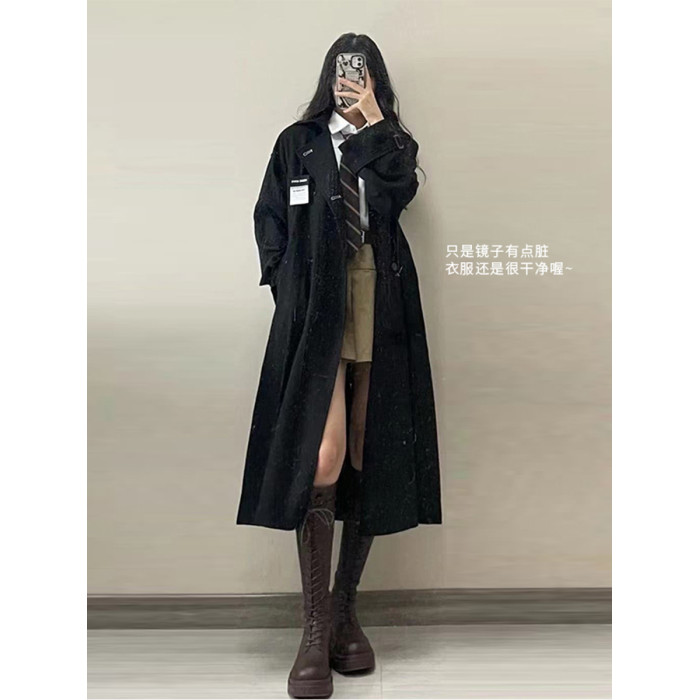 日系黑色風衣外套女2025春秋新款高級感中長款小個子加厚大衣赫本