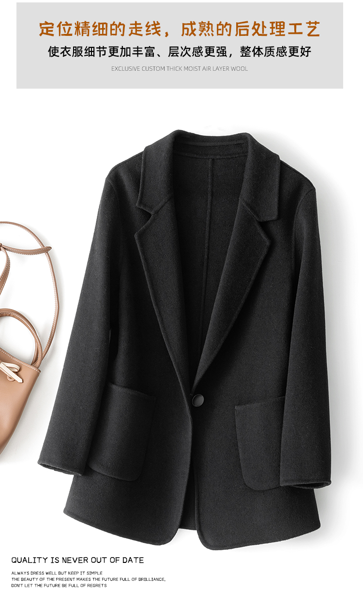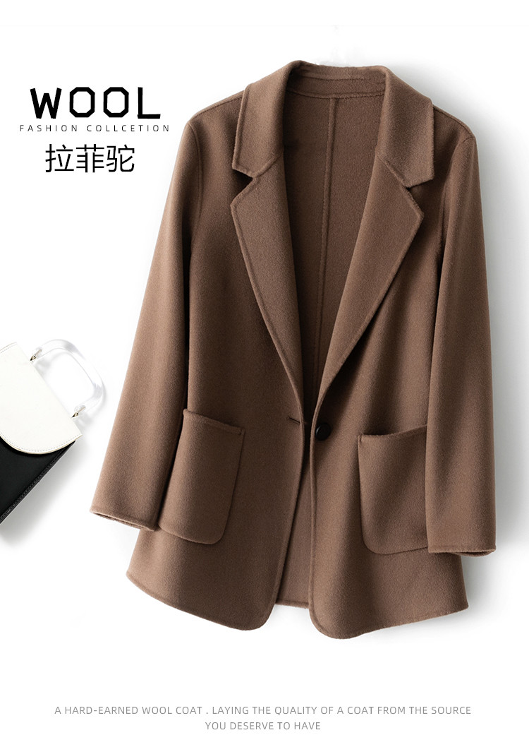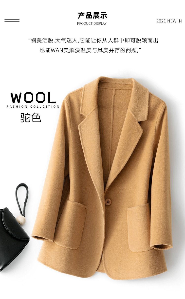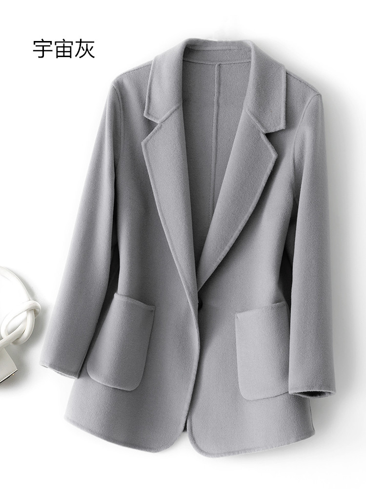 西裝版雙面羊絨大衣女短款2024年秋冬高級氣質寬松西裝領毛呢外套