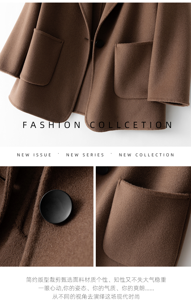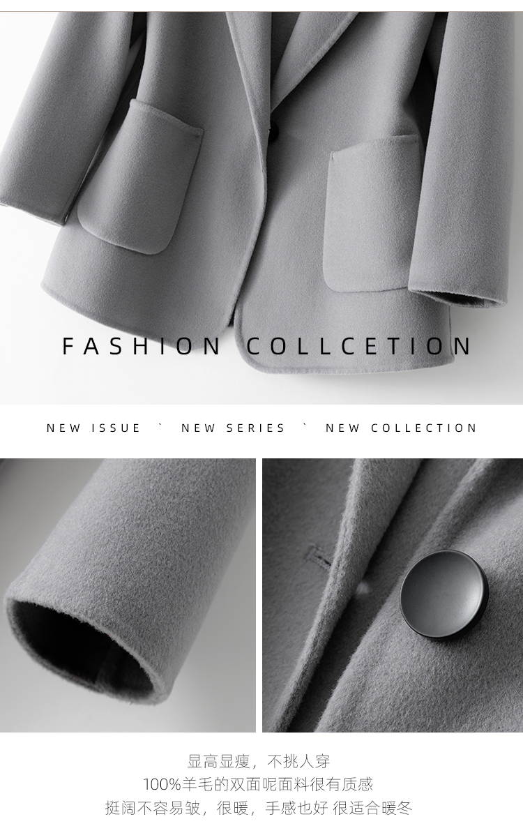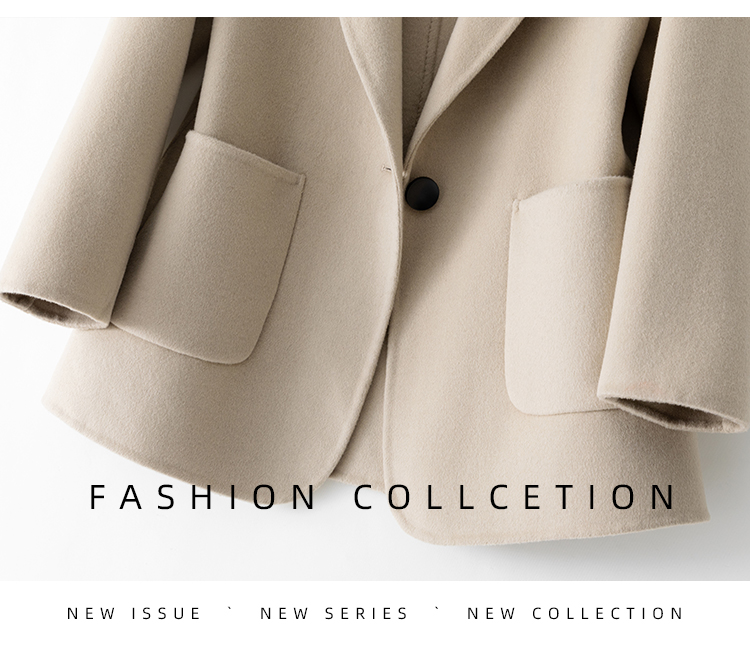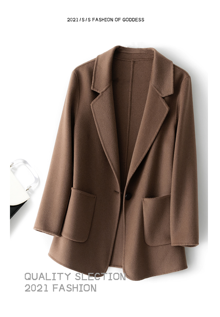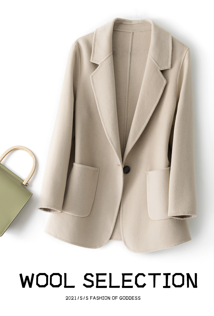 西裝版雙面羊絨大衣女短款2024年秋冬高級氣質寬松西裝領毛呢外套