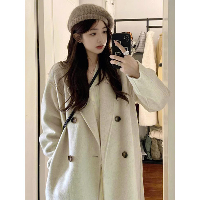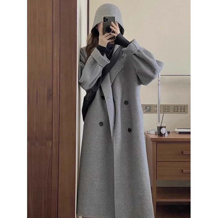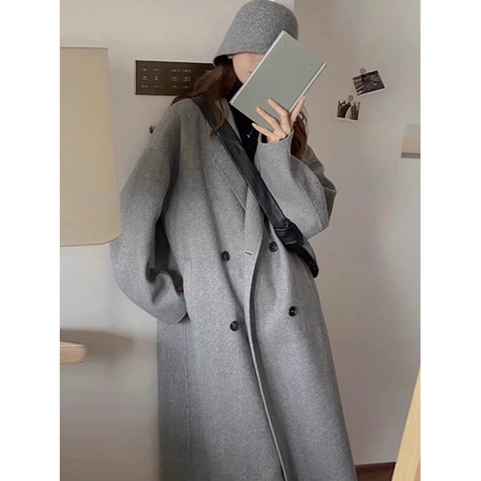 灰色呢子大衣女秋冬季2025新款韓版赫本風氣質毛呢外套中長款加厚