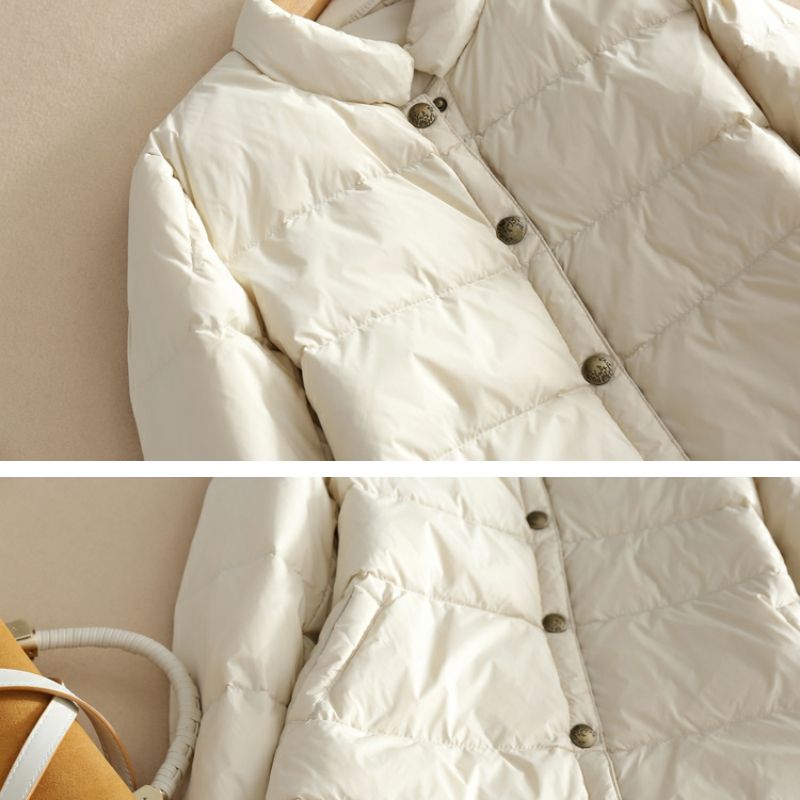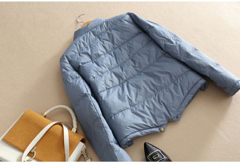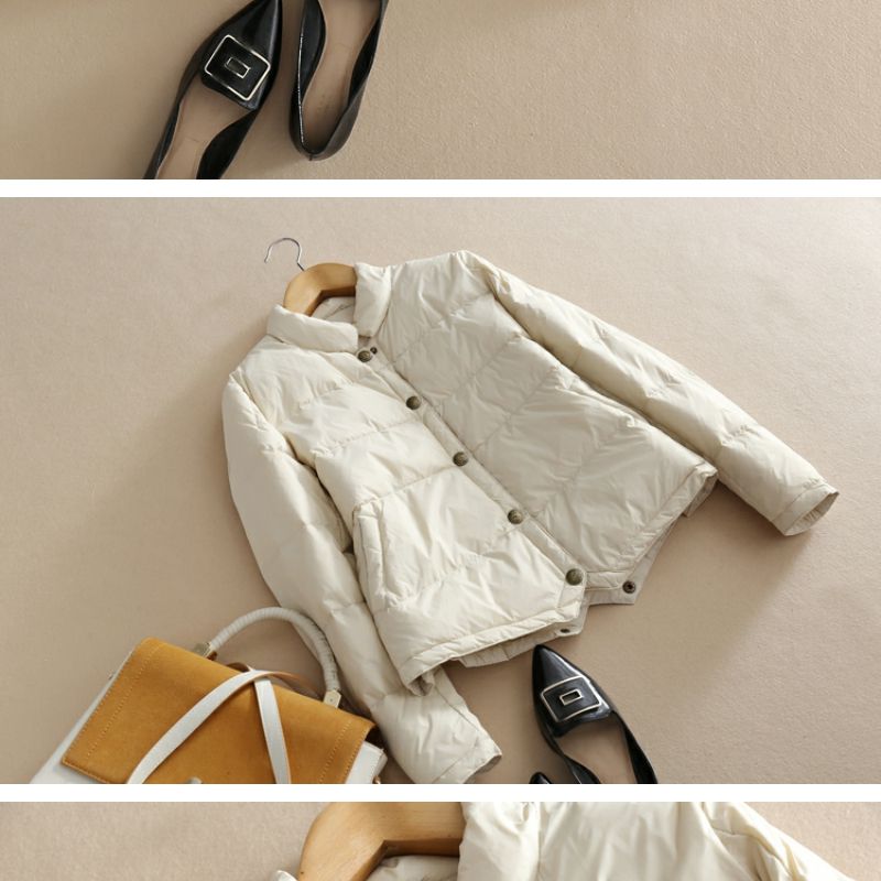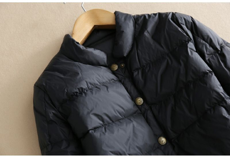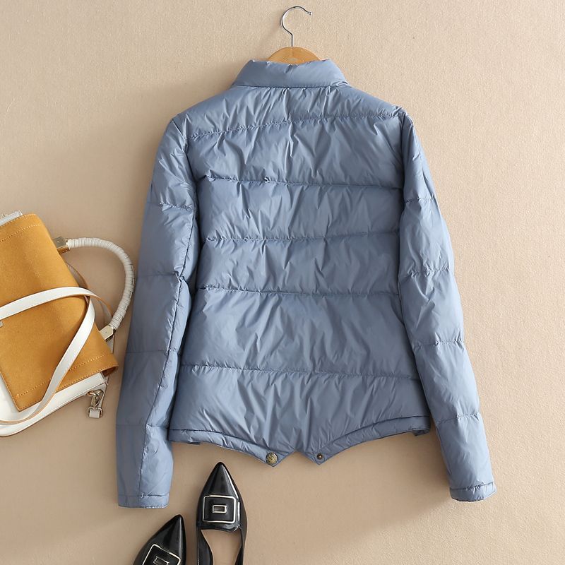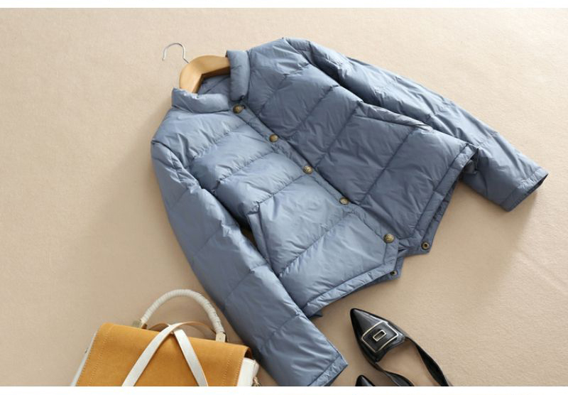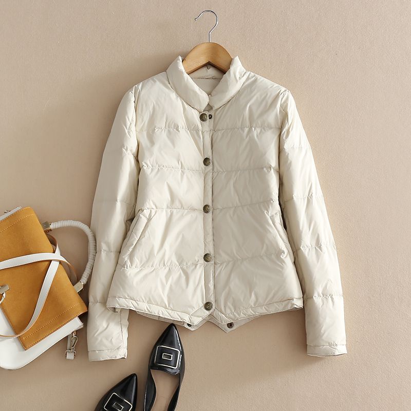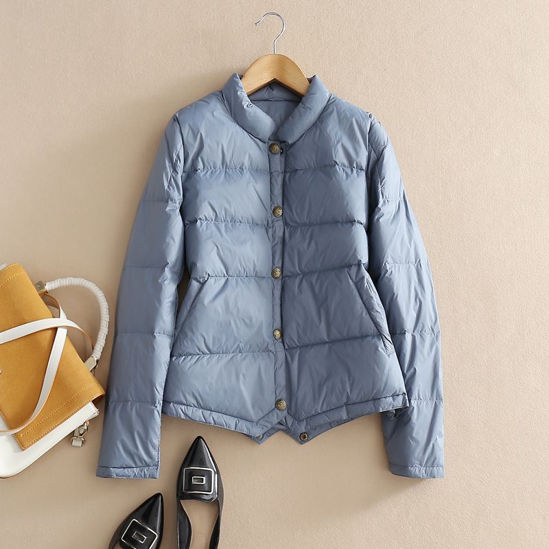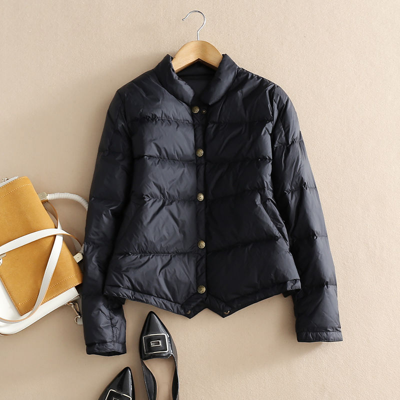 外單日系~白鴨絨秋冬季女立領單排釦小個子襯衫羽絨服