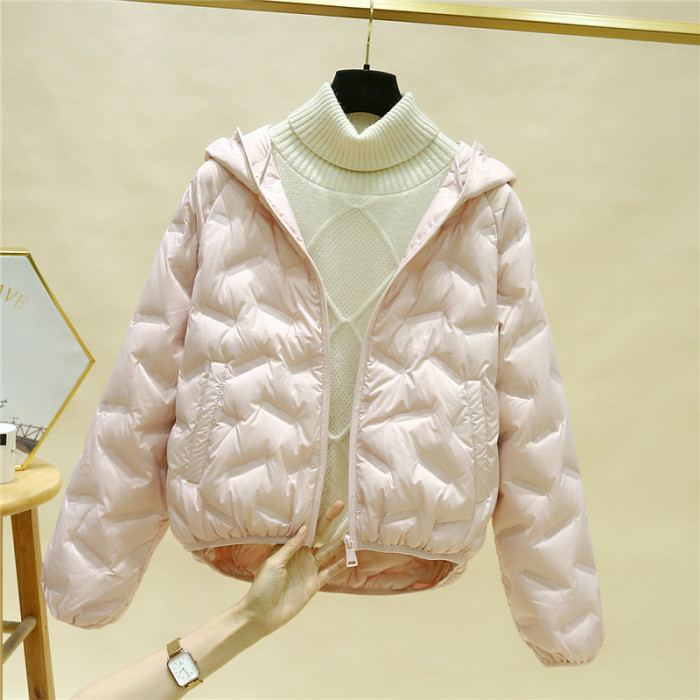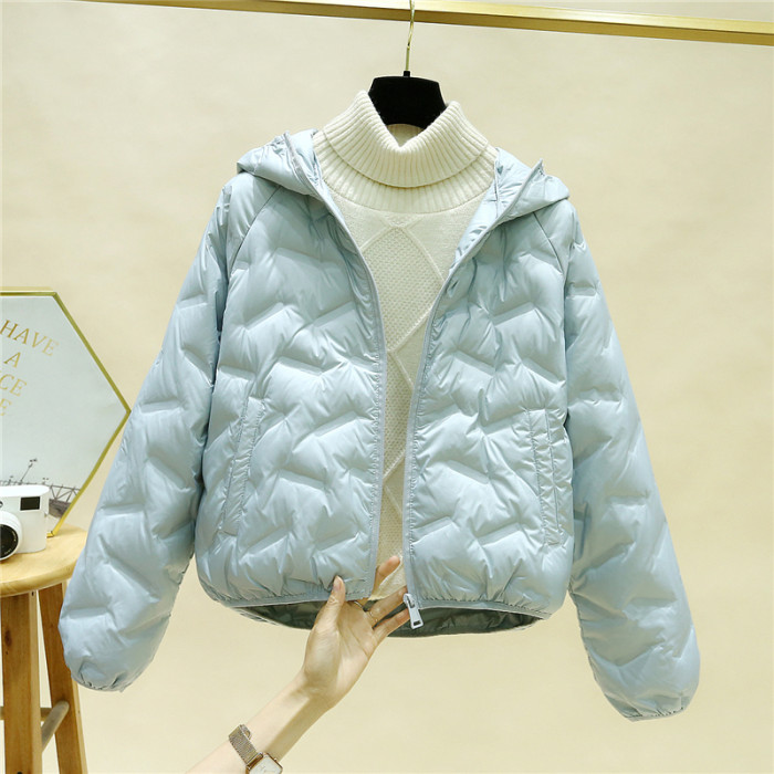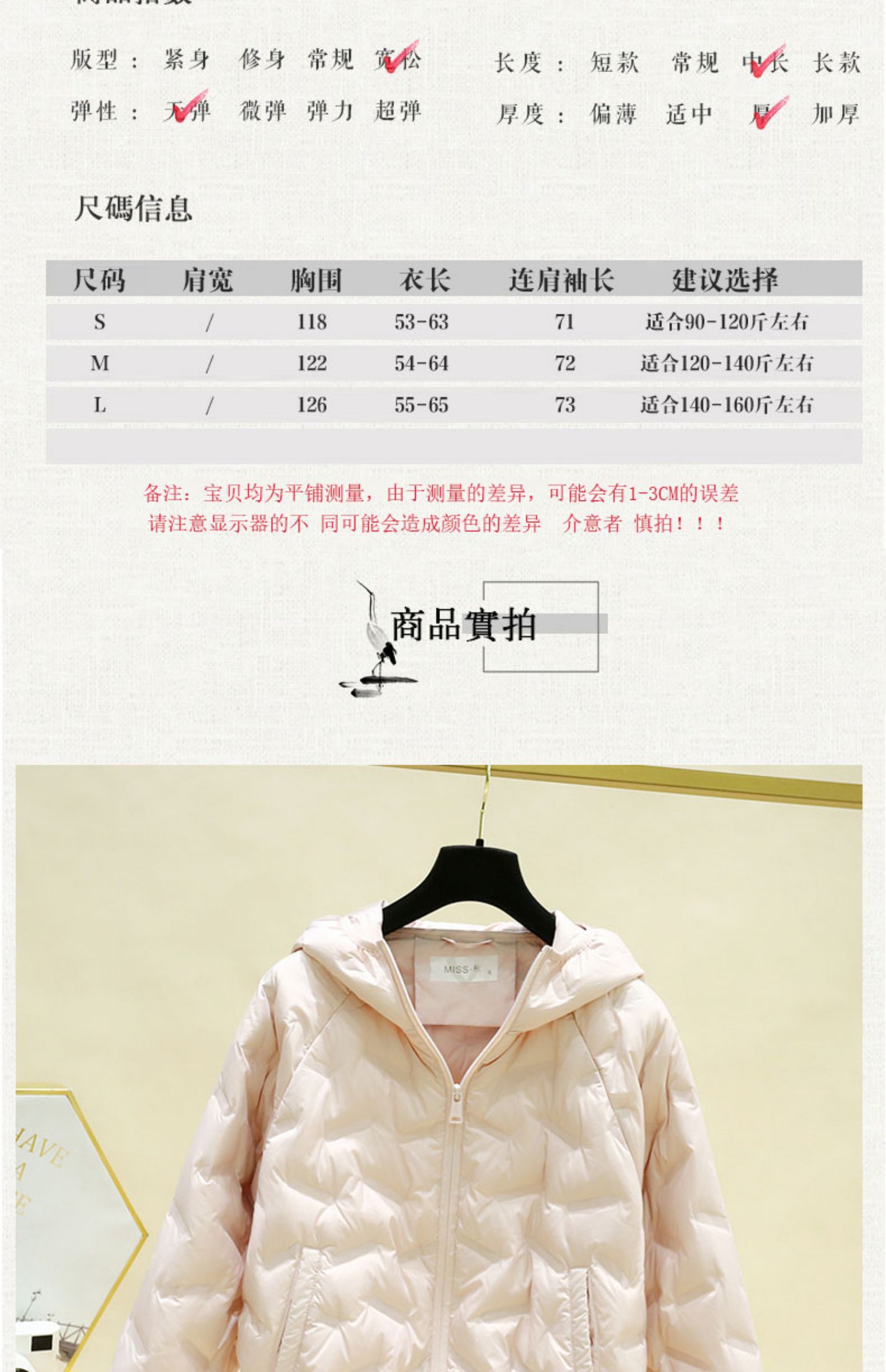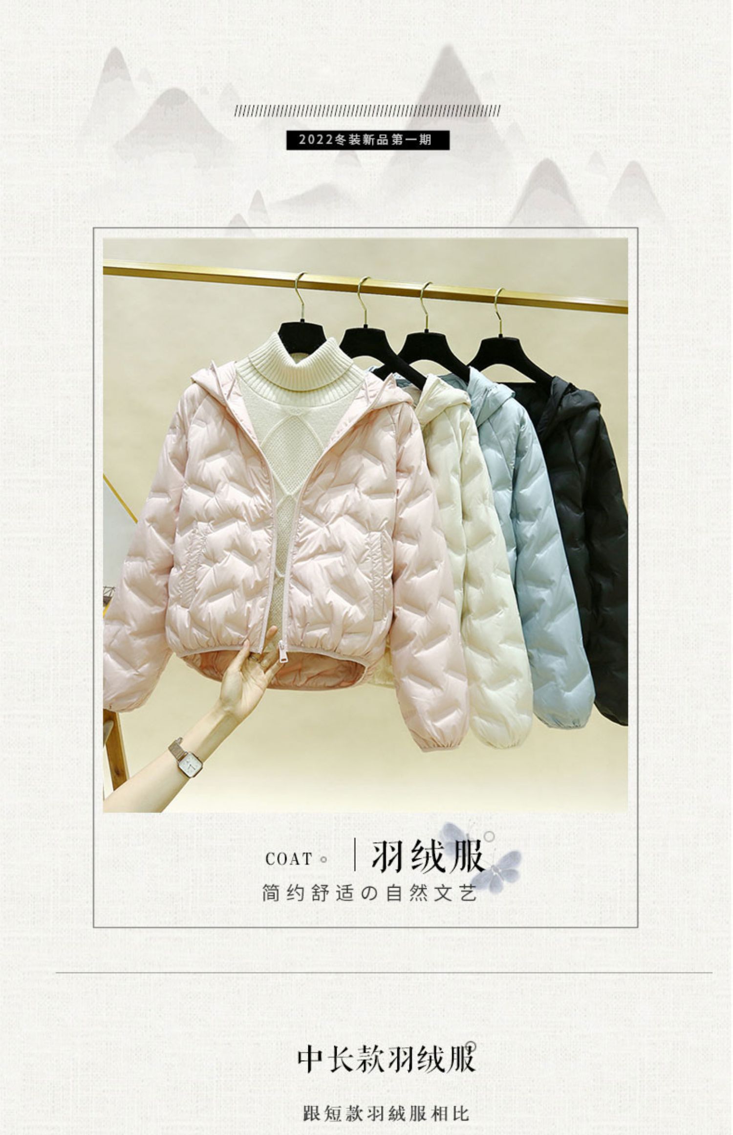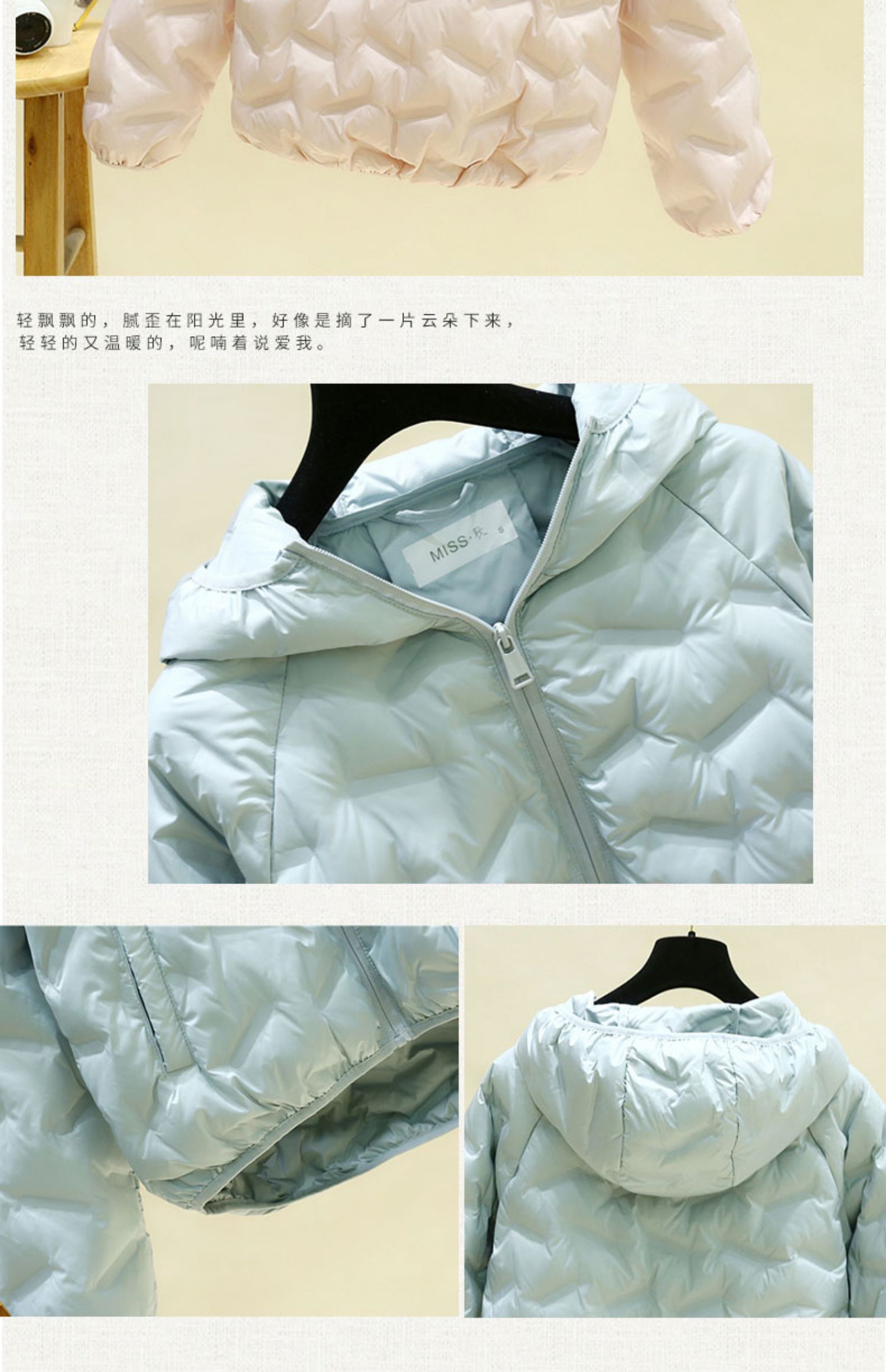 輕薄羽絨服女短款2024冬季新款時尚顯瘦壓花白鴨絨小個子連帽外套
