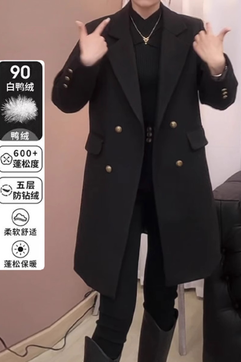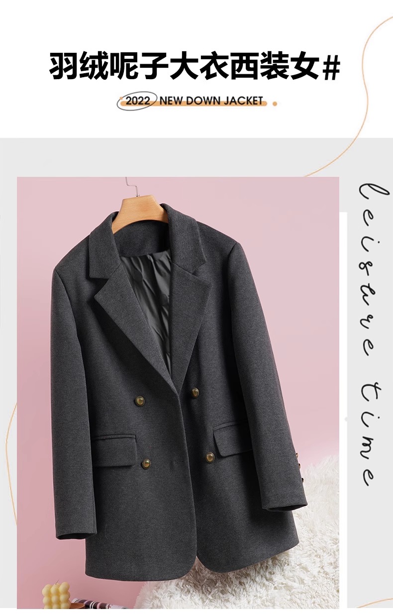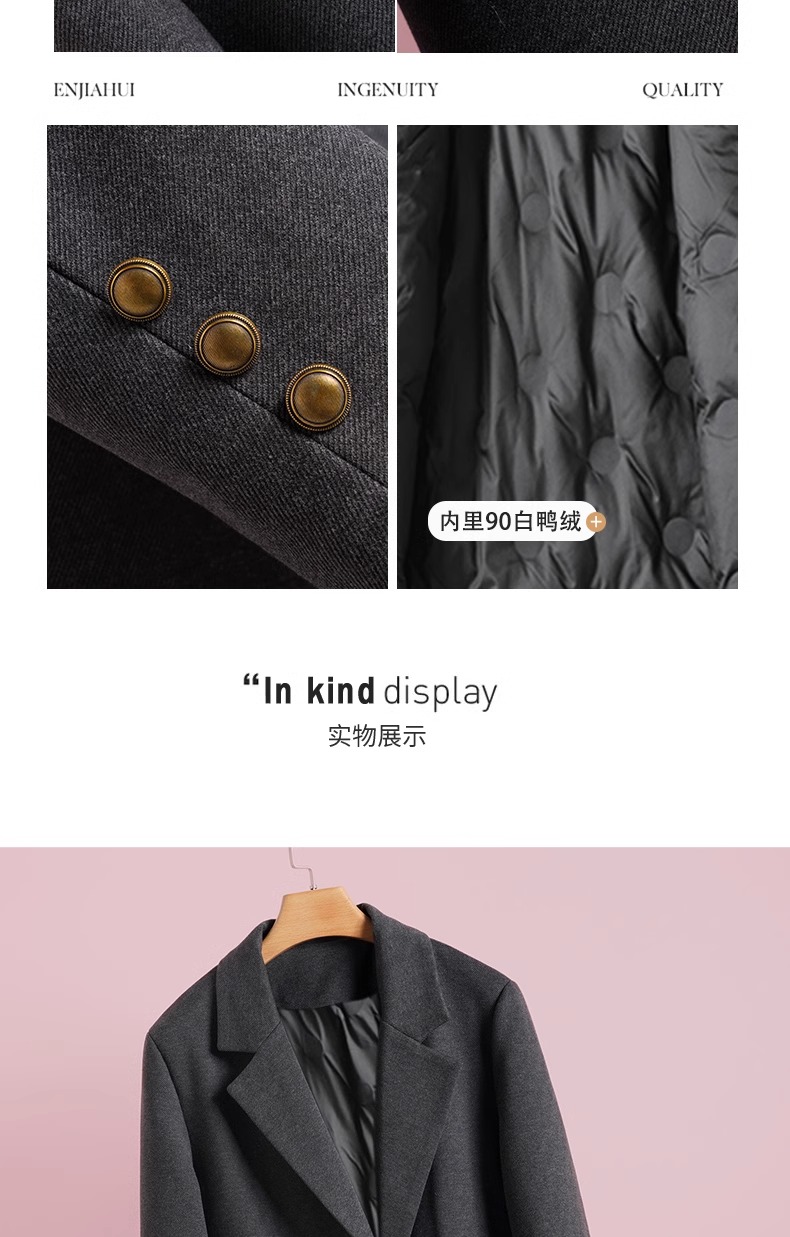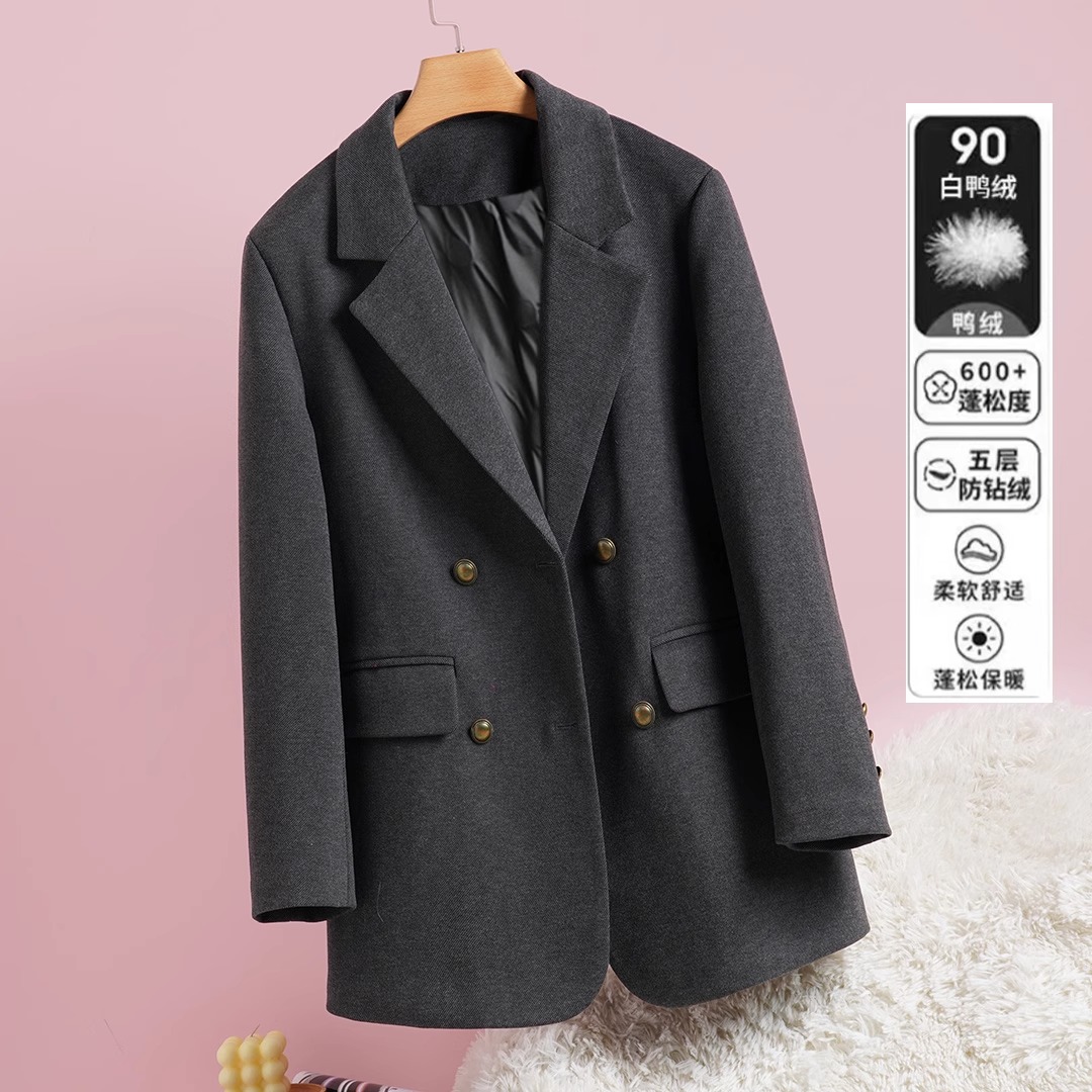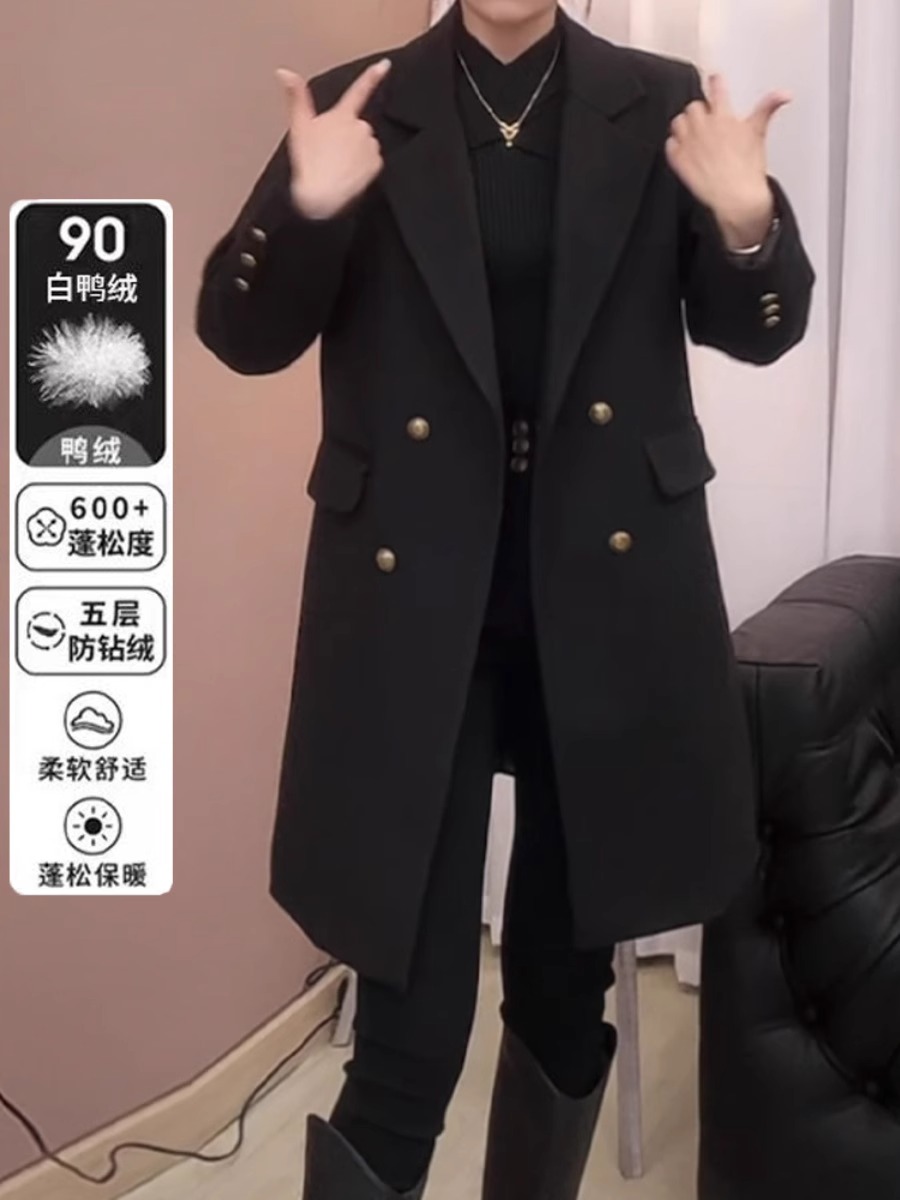 羽絨服毛呢西裝外套女2025冬季新款顯瘦厚款白鴨絨寬松呢子大衣