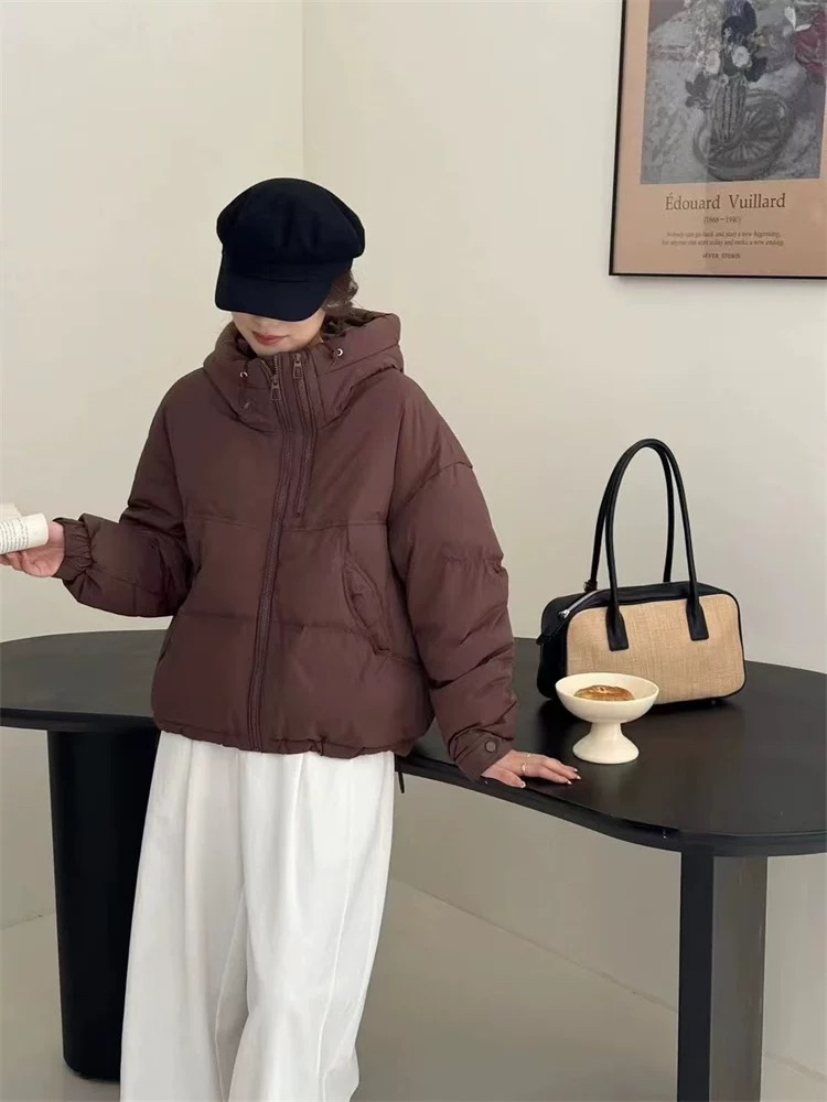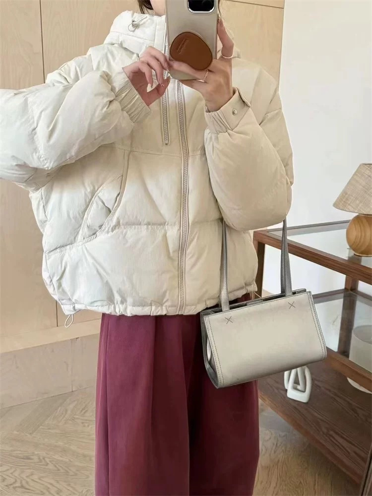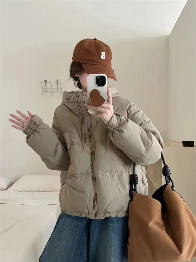 2025冬季新款韓版衛衣帽羽絨服女短款顯瘦洋氣雙拉小個子鴨絨外套
