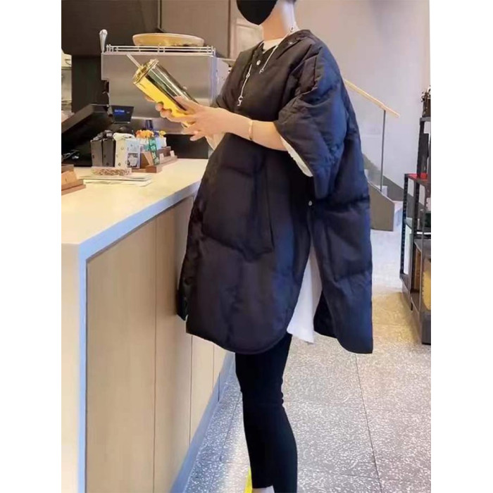杭璐2024年新款短袖羽絨服女小衆時尚雙側開叉中長款羽絨背心外套