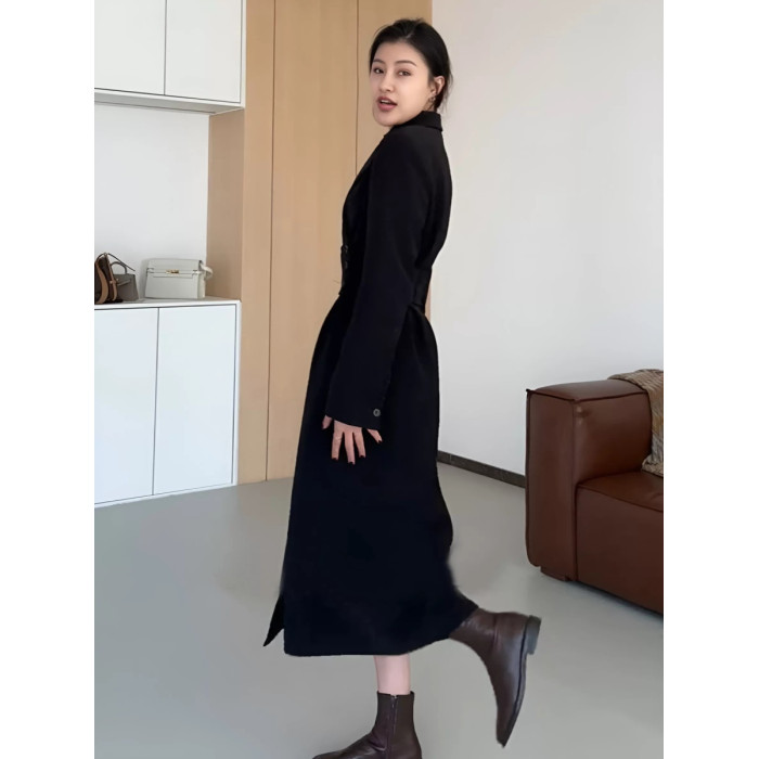赫本風可調節收腰白鴨絨羽絨服西裝大衣女冬中長款風衣外套連衣裙