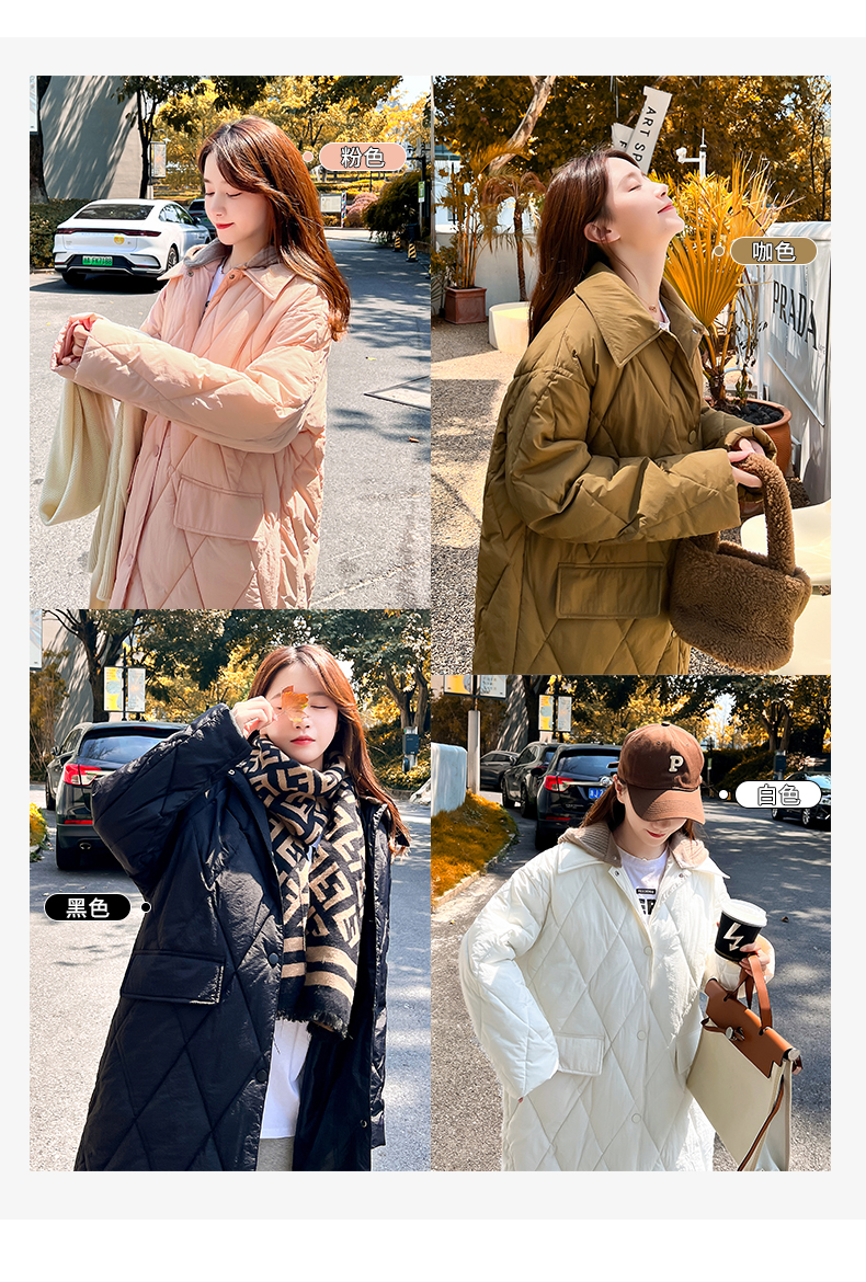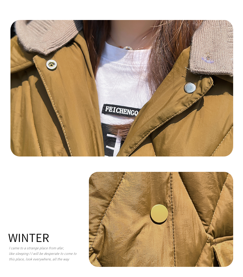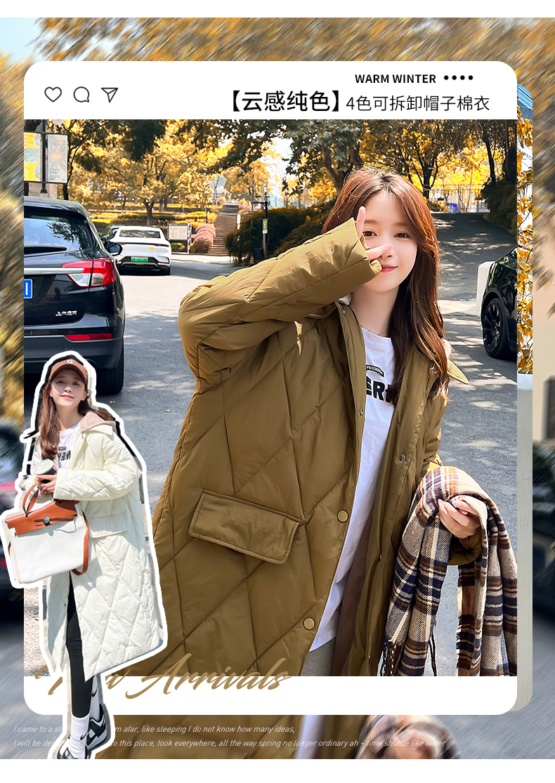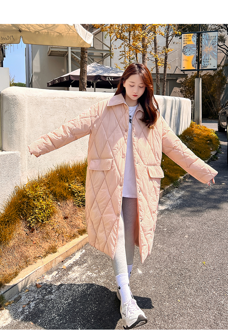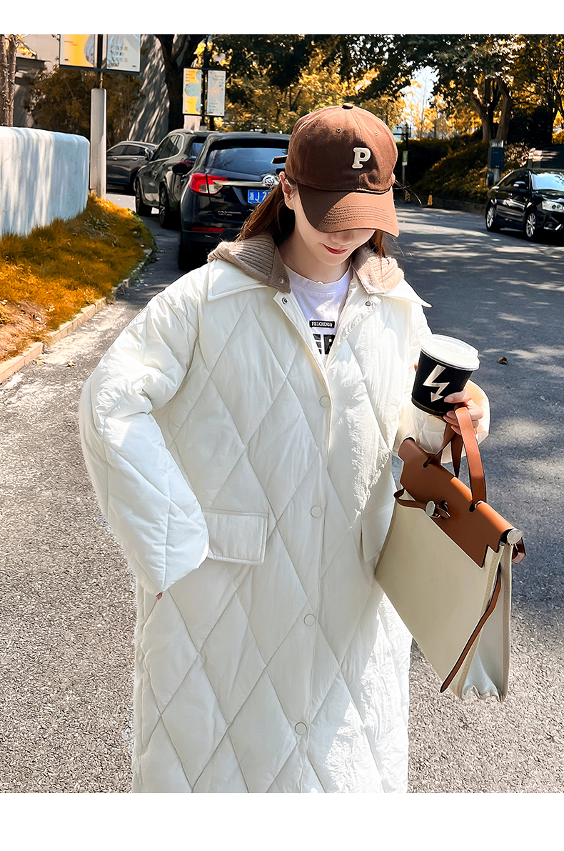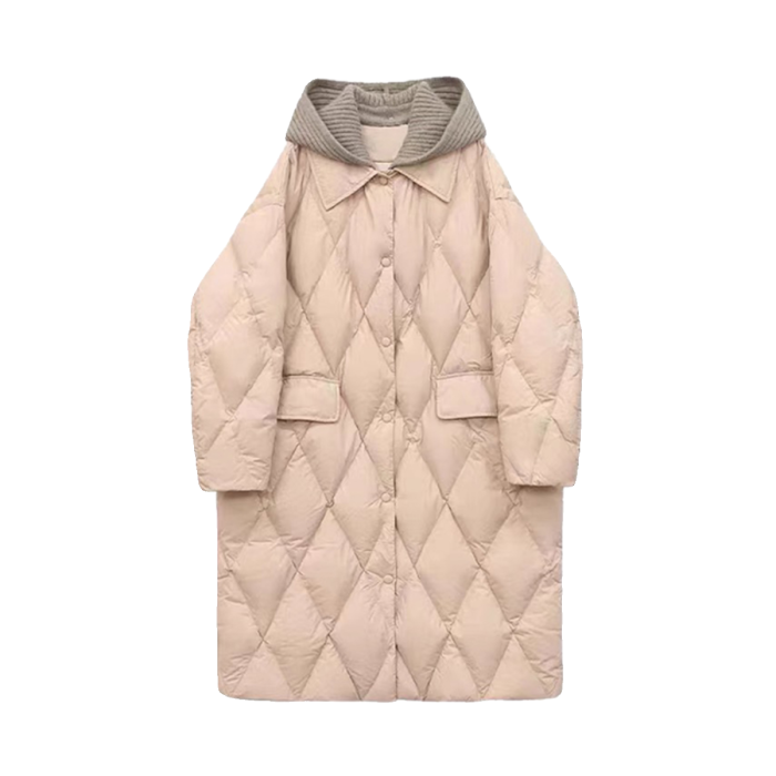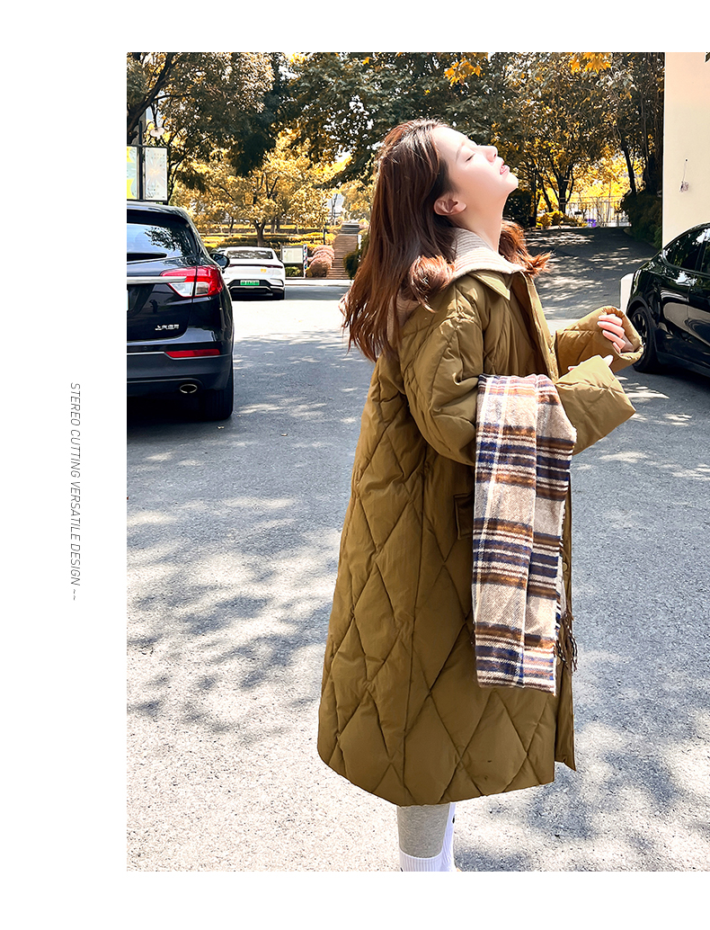 撤櫃韓版針織帽羽絨棉服女中長款冬寬松連帽菱形格過膝羽絨棉外套