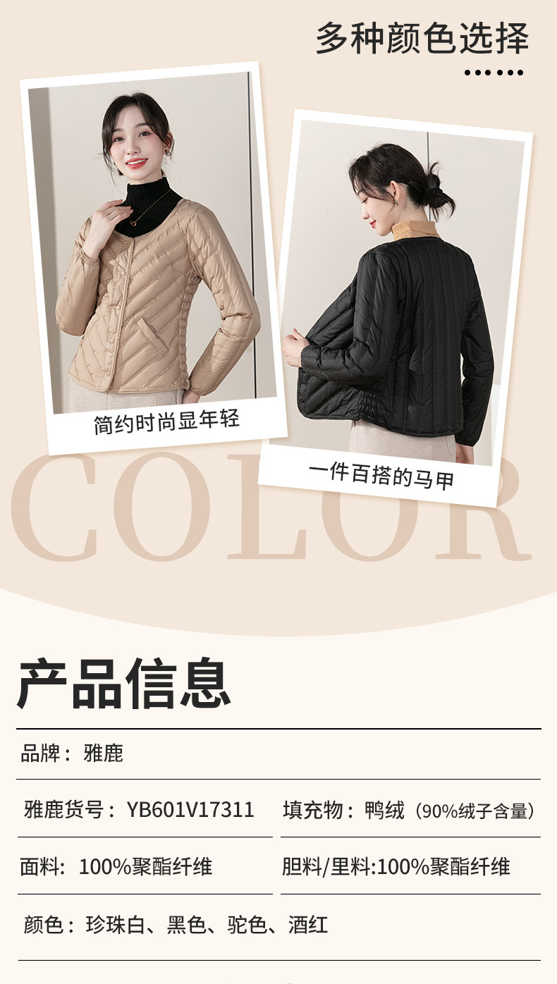 雅鹿2025新款羽絨服內膽女款修身輕薄內穿打底保暖馬甲秋冬內搭女
