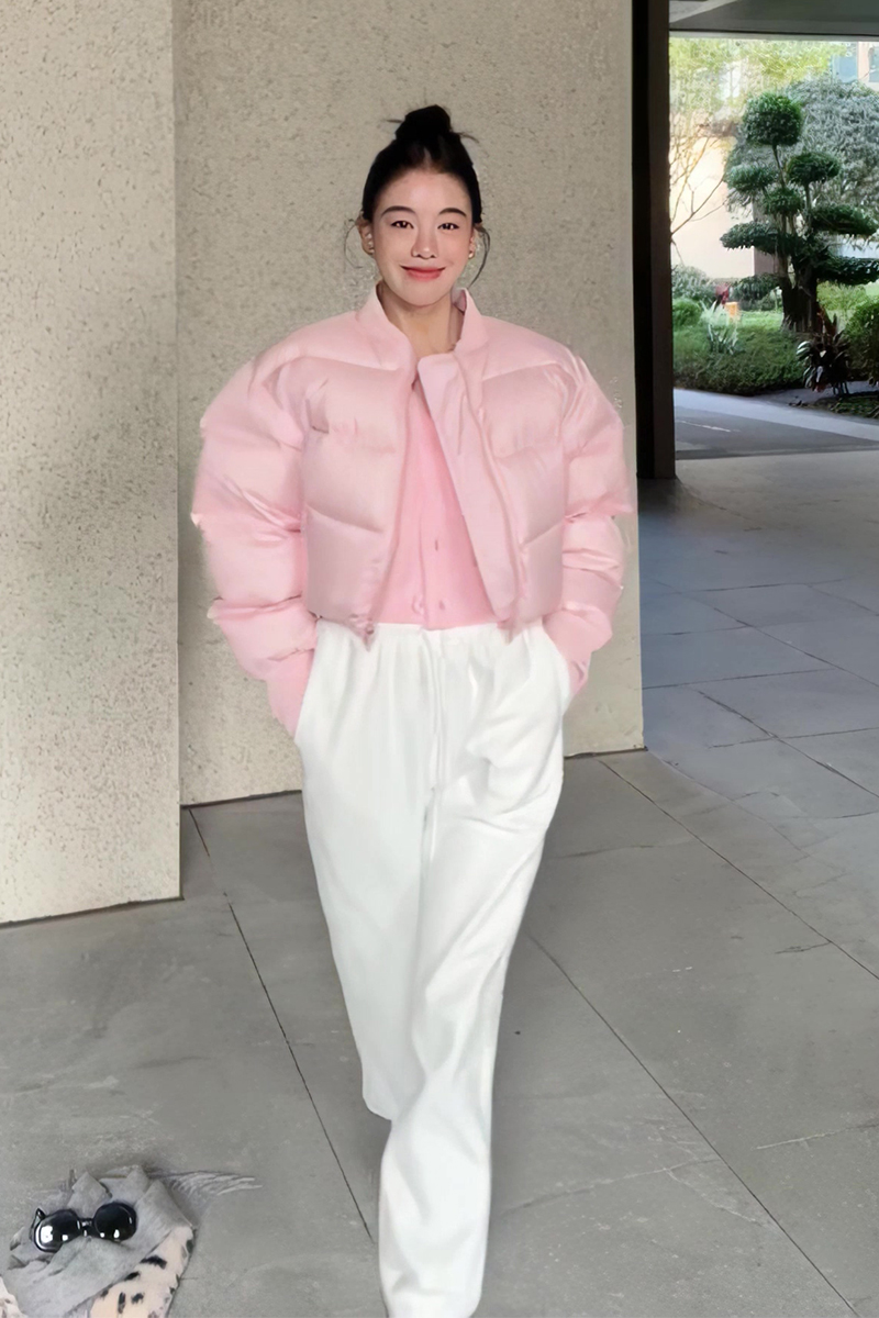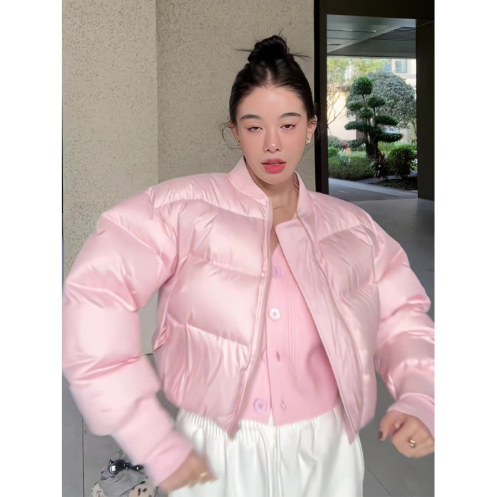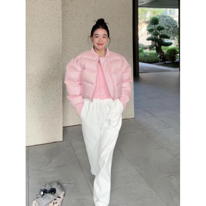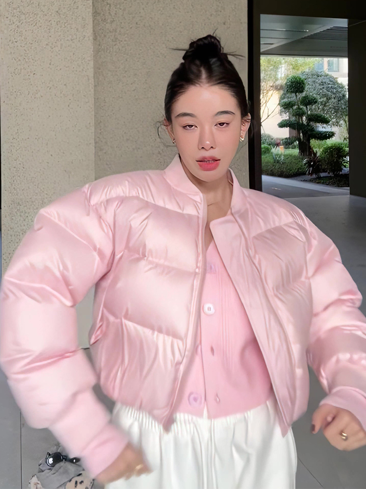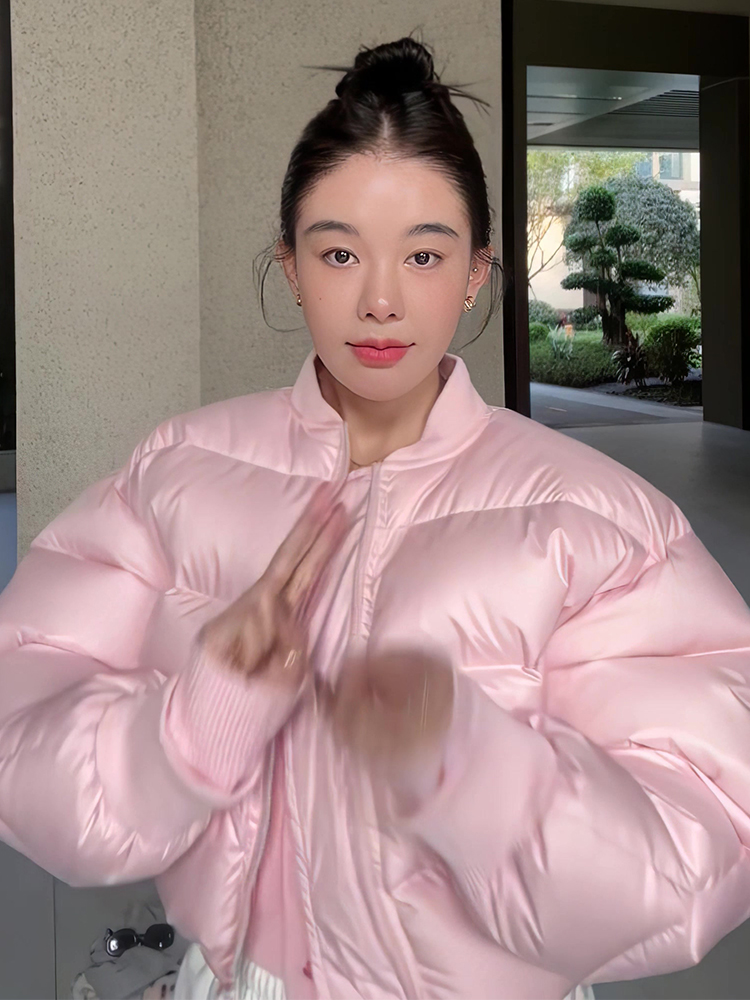 歐貨2025新款高級感超好看小個子洋氣粉色短款羽絨服外套女冬季