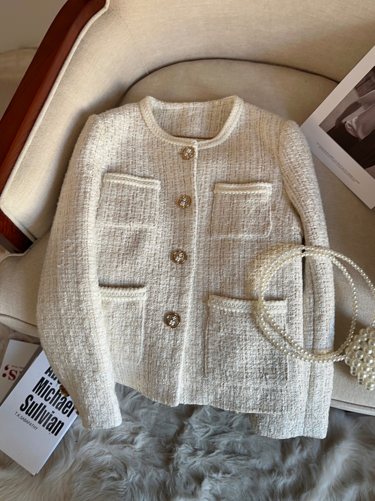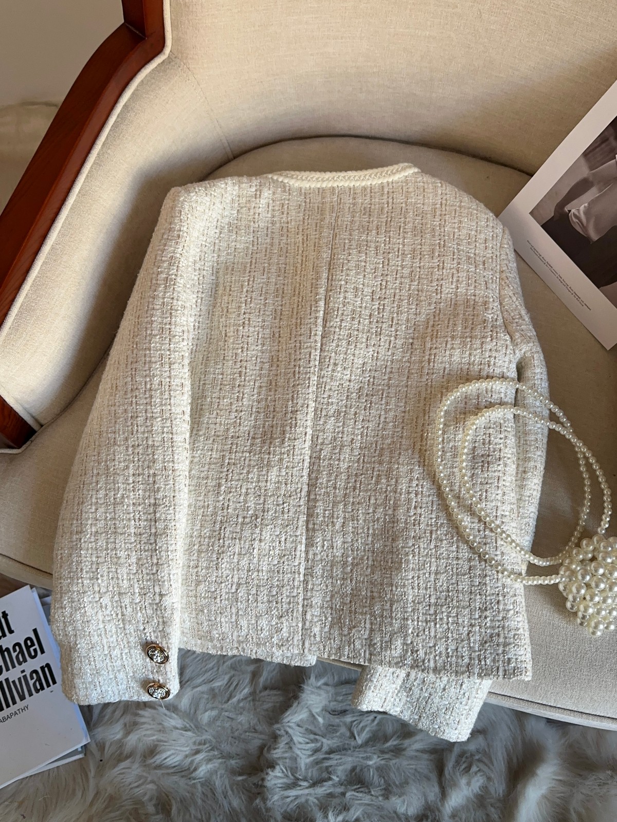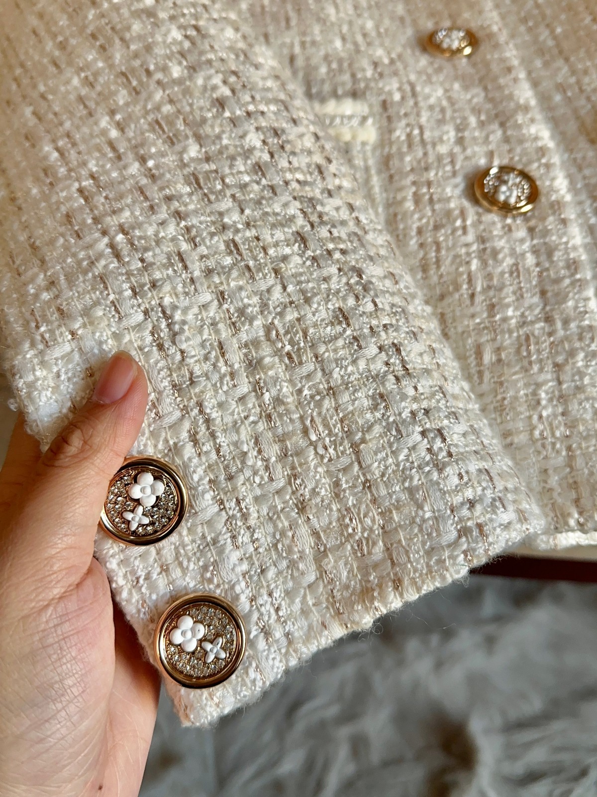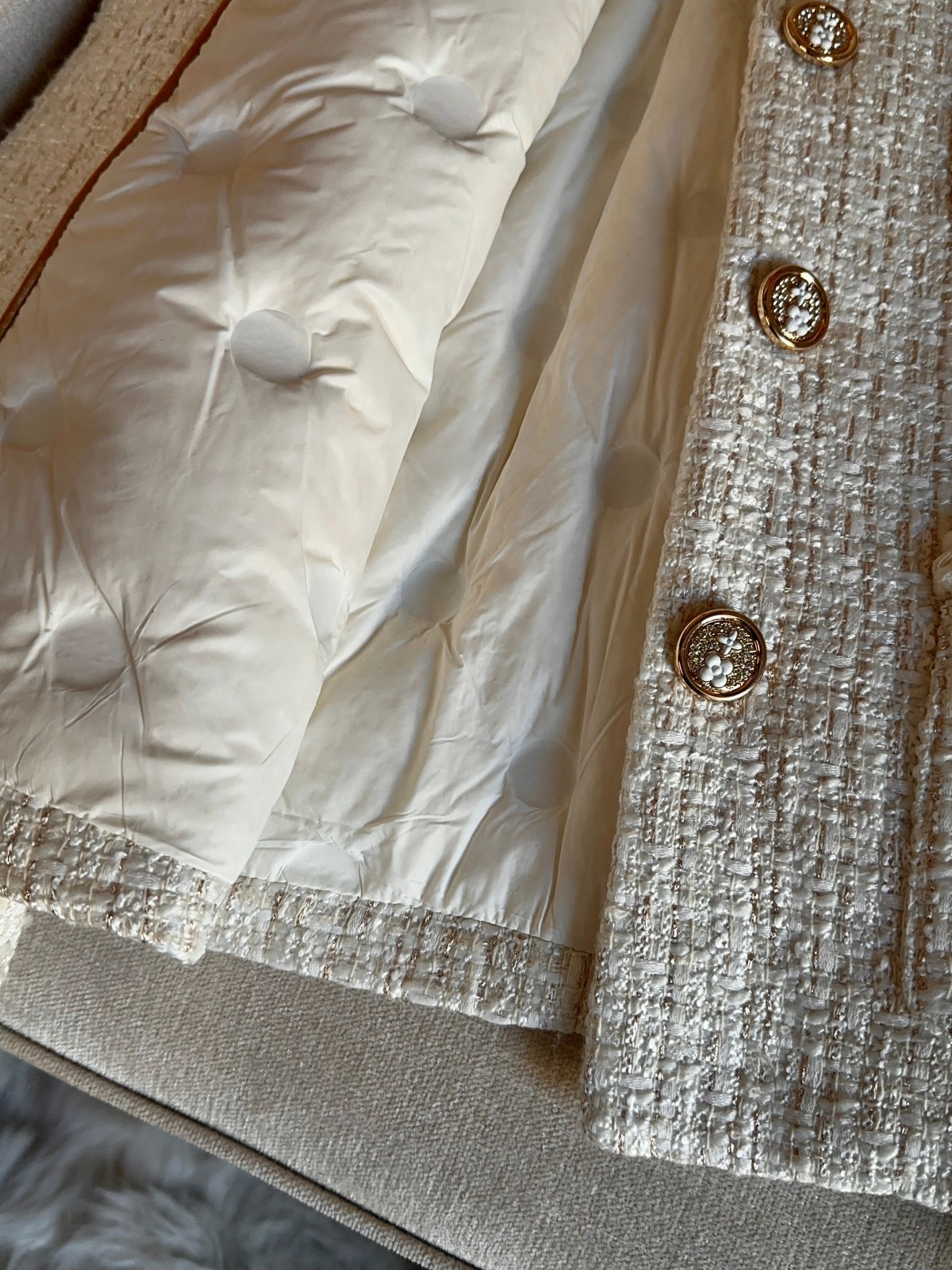白色羽絨服內膽精緻小香風外套女冬季粗花呢白鴨絨加厚外套A72182