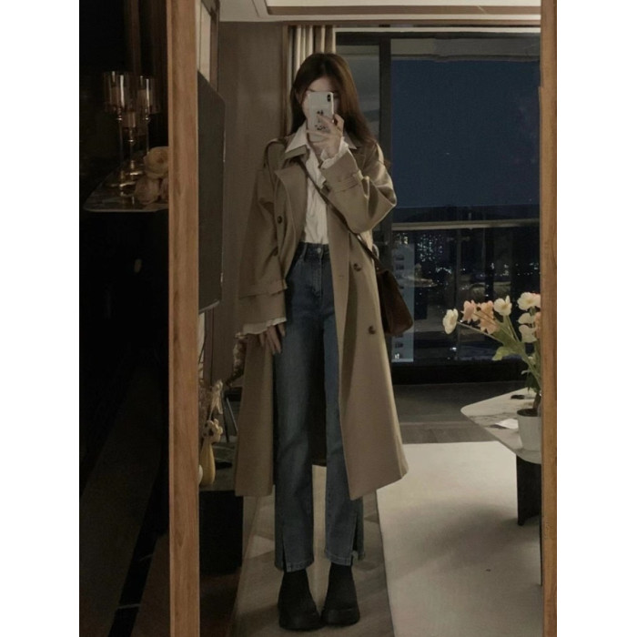 大碼胖妹妹卡其色風衣外套女中長款春秋新款韓系英倫風高級感大衣