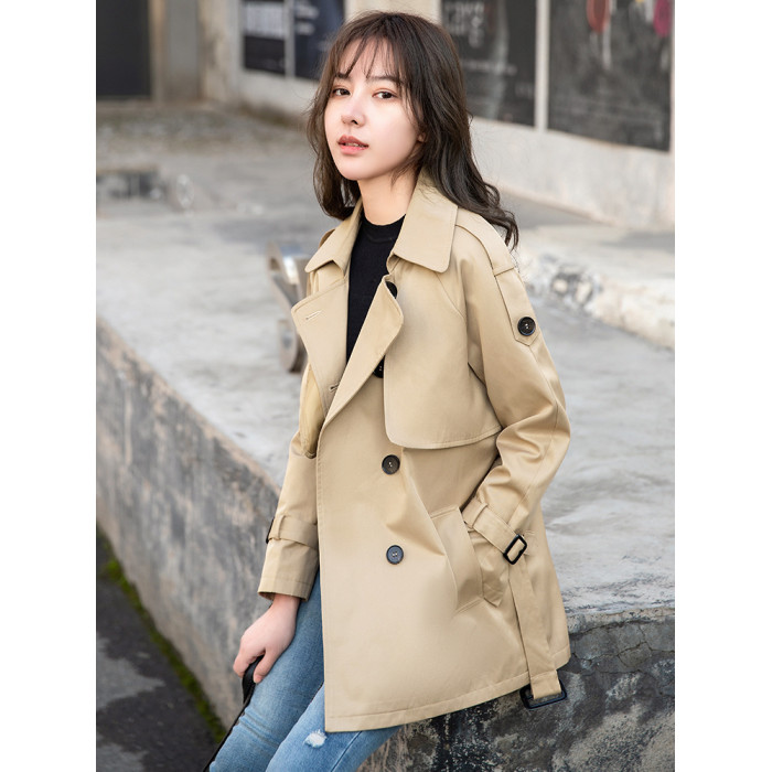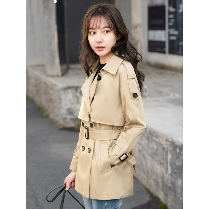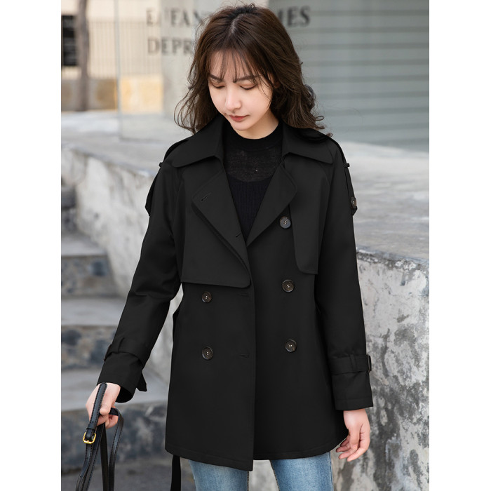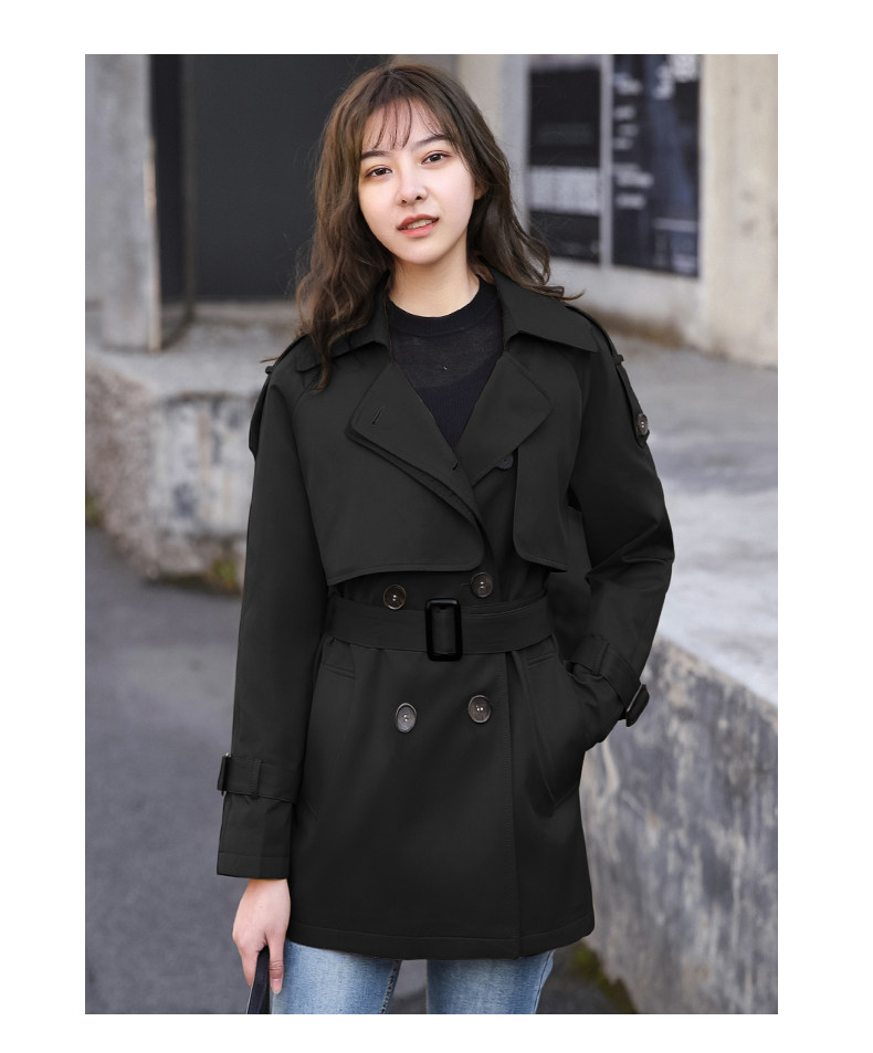 短款風衣女2025新款黑色今年流行中長款小個子卡其色大衣春秋外套