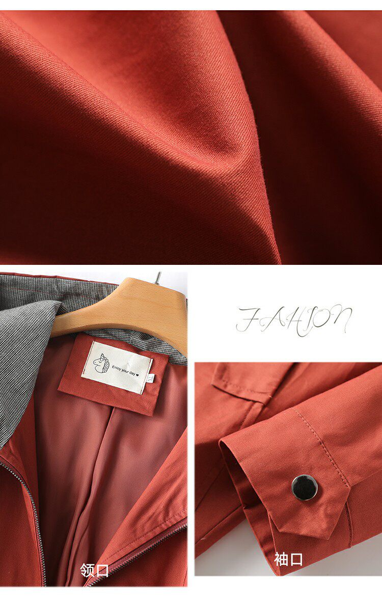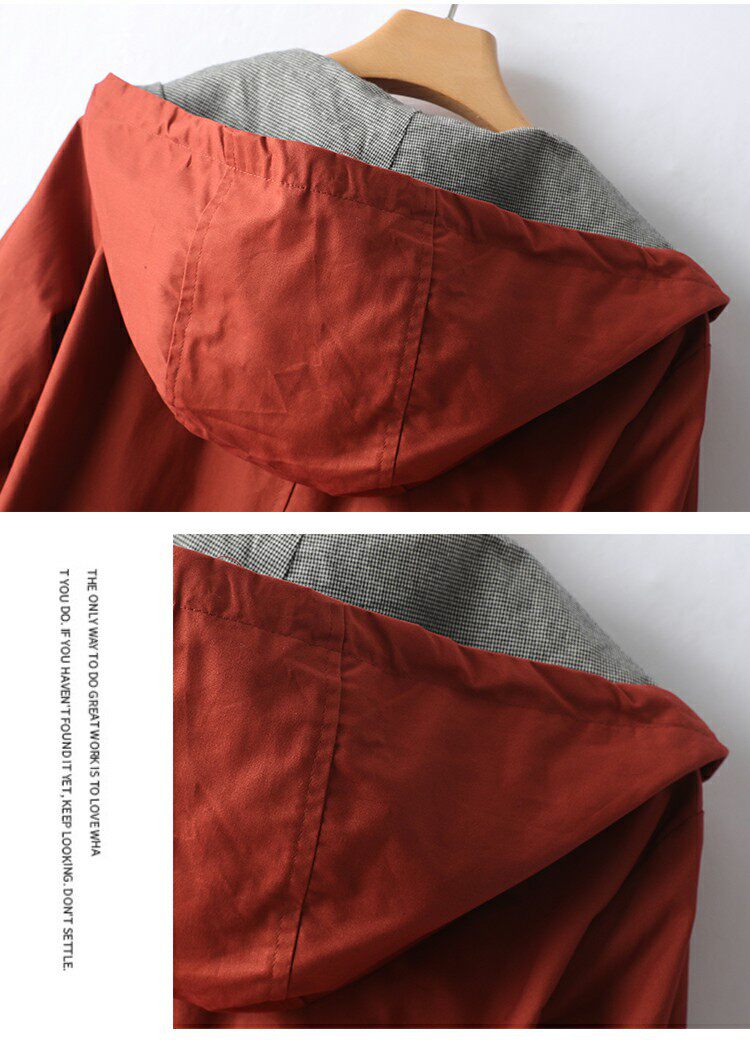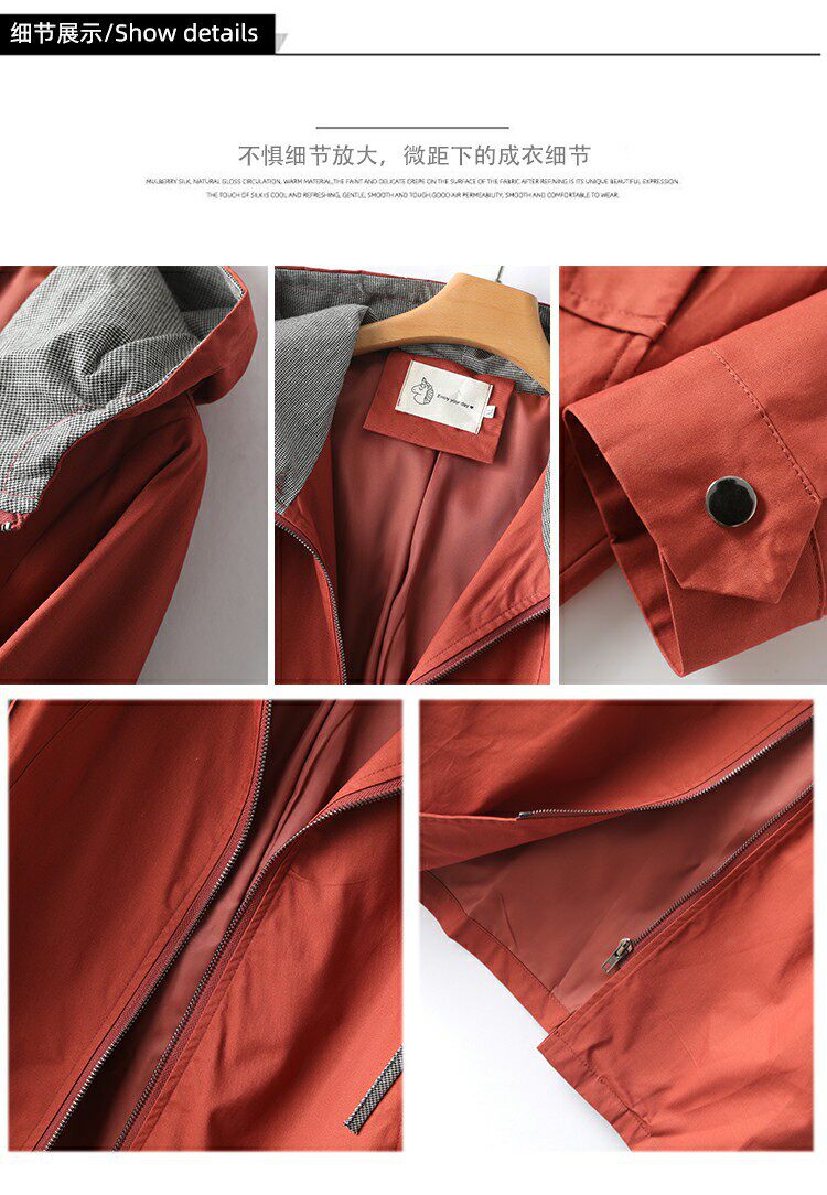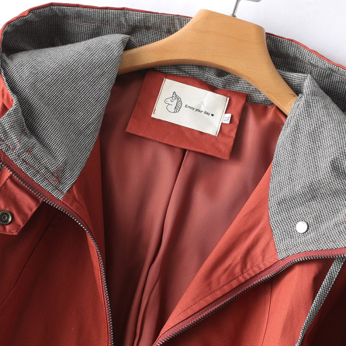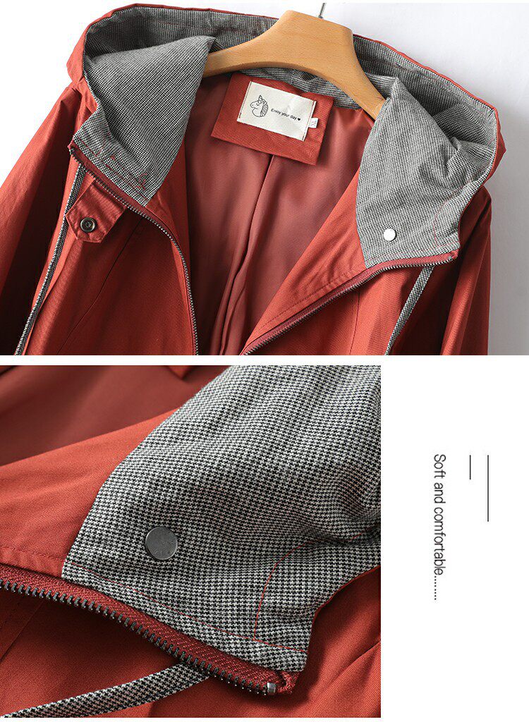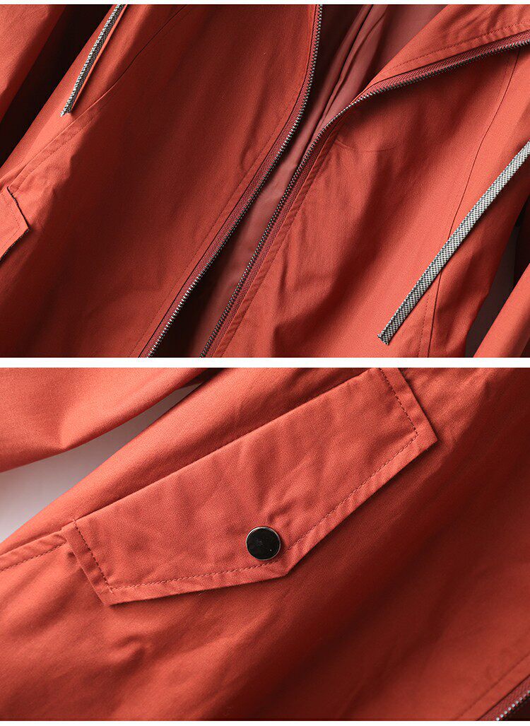 出口西班牙尾單折釦2023秋季連帽拉鍊撞色風衣中長款派克休閒外套