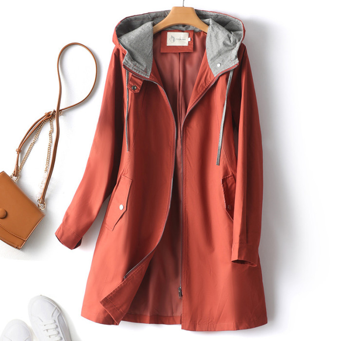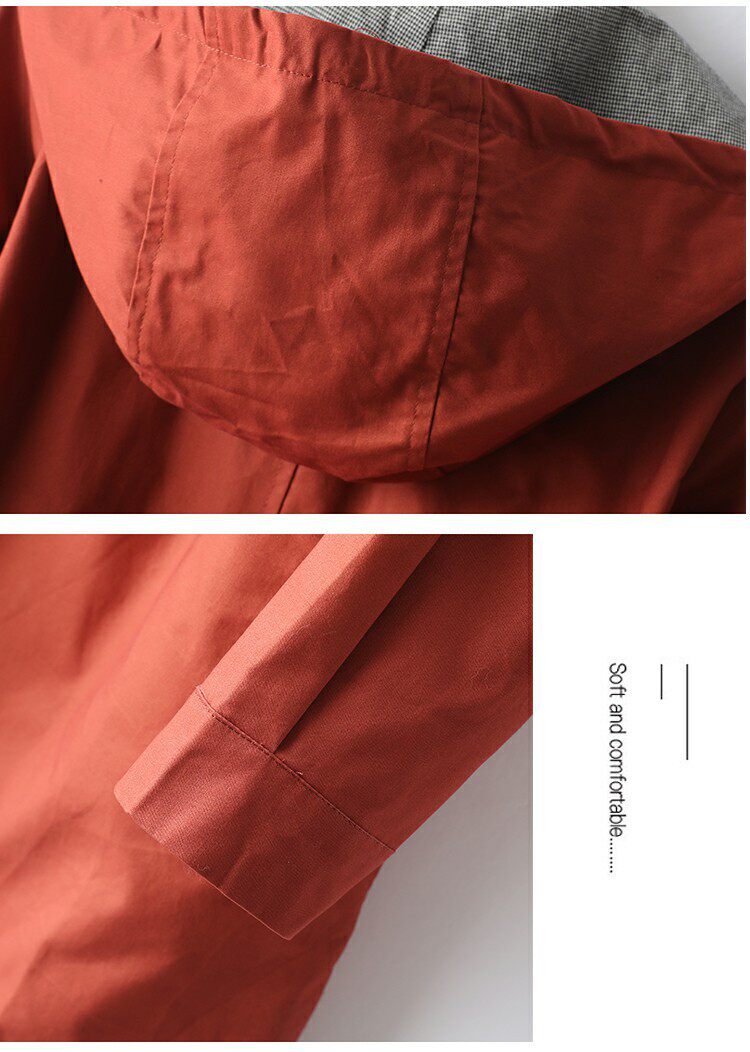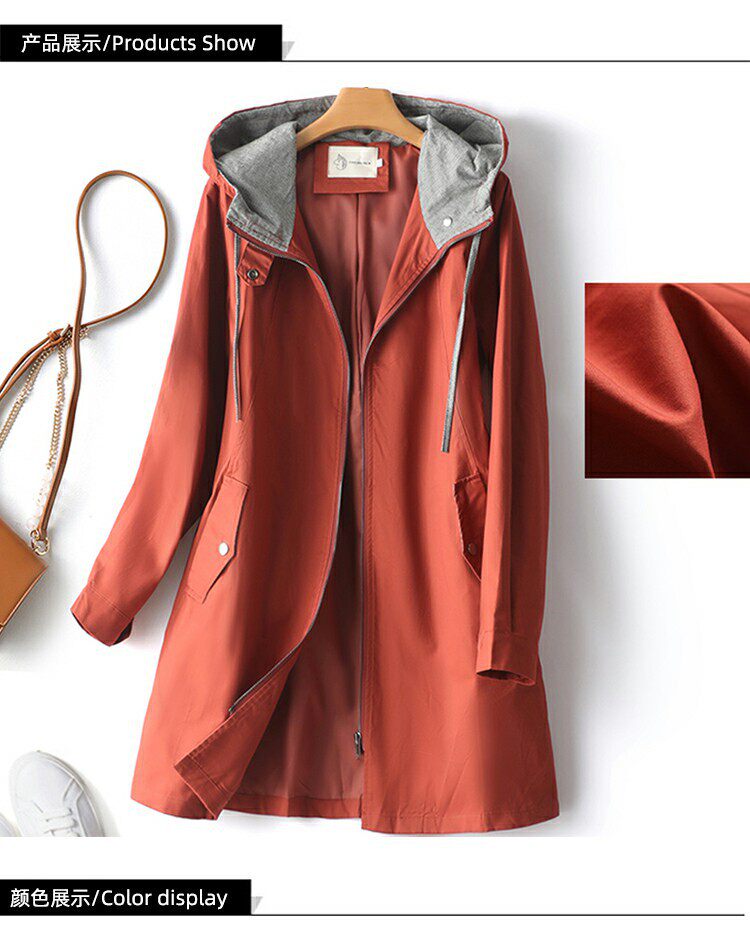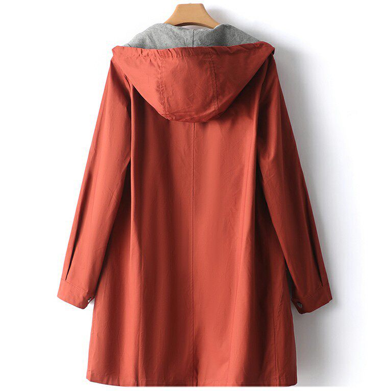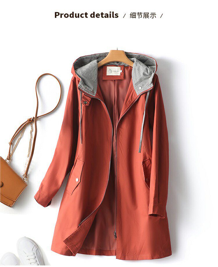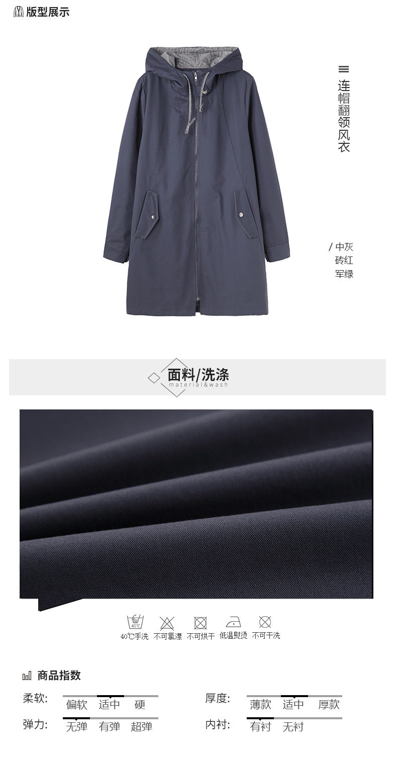 出口西班牙尾單折釦2023秋季連帽拉鍊撞色風衣中長款派克休閒外套