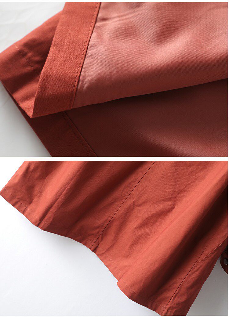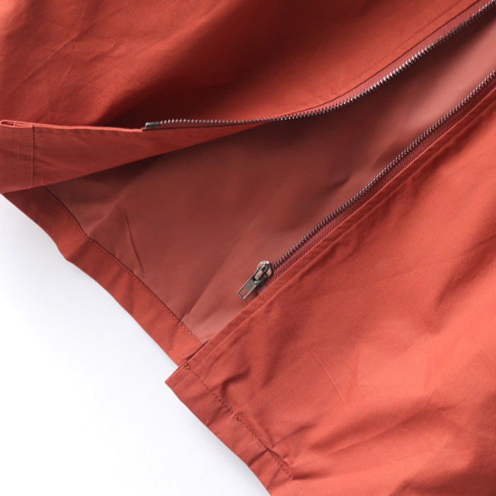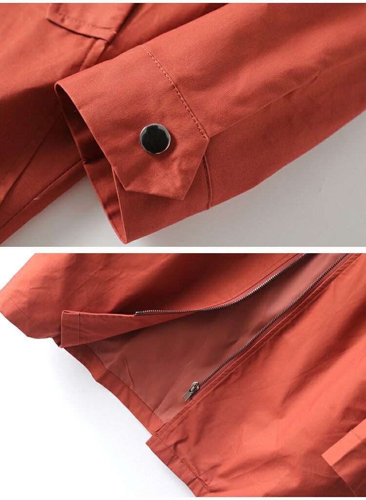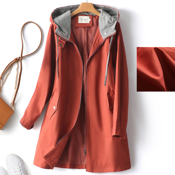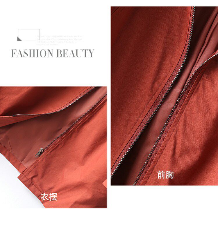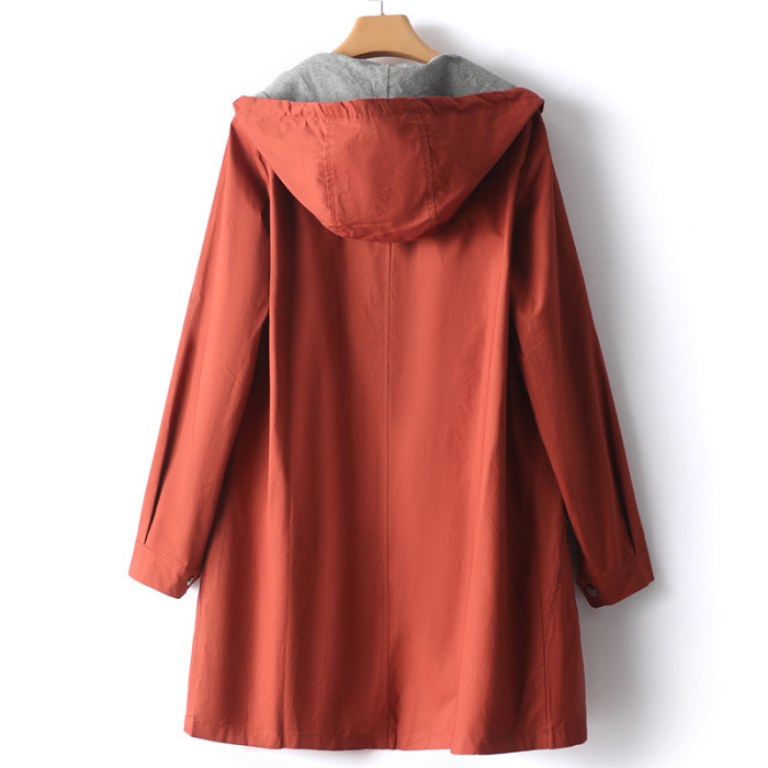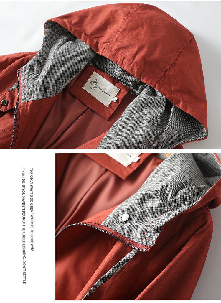 出口西班牙尾單折釦2023秋季連帽拉鍊撞色風衣中長款派克休閒外套