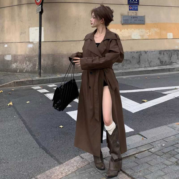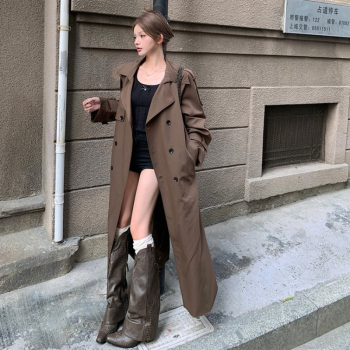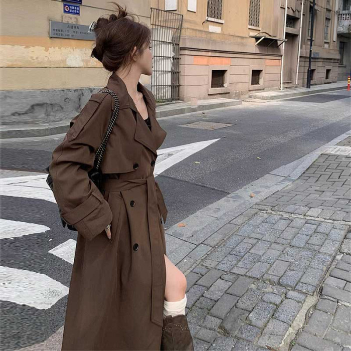 美拉德穿搭復古法式氣質休閒風衣外套中長款過膝西裝大衣女春冬季