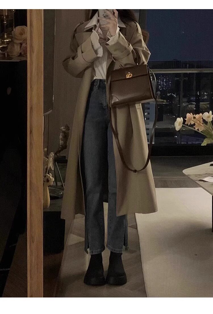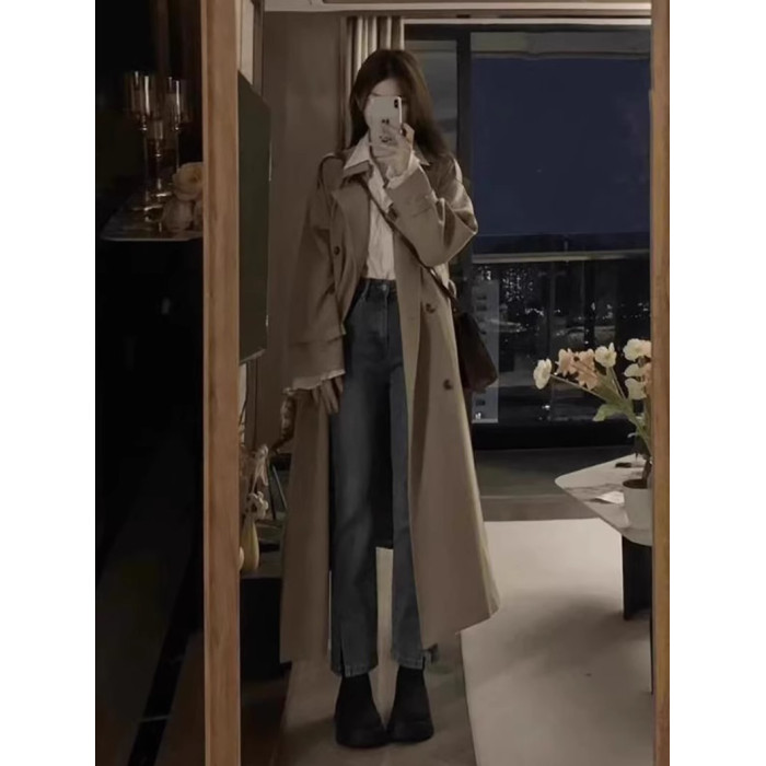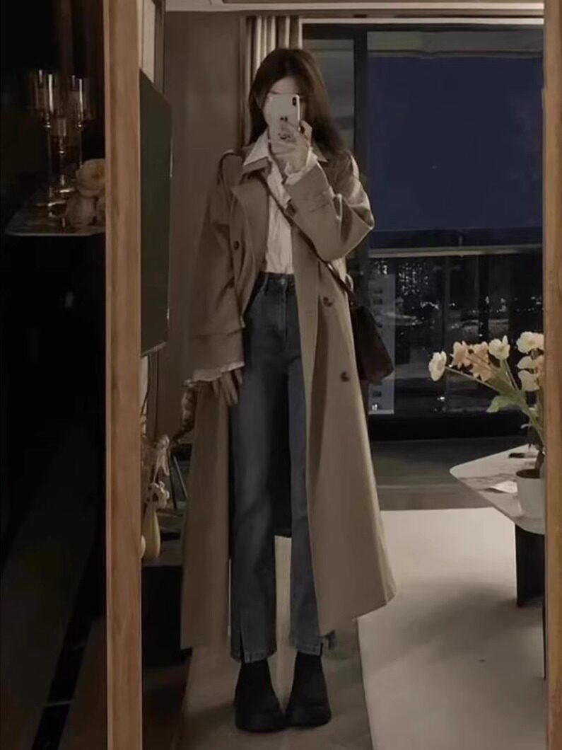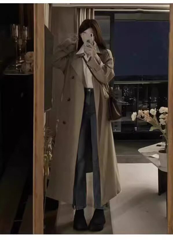 高個子胖mm200多斤女加長寬松大碼風衣外套春秋季過膝超長款大衣