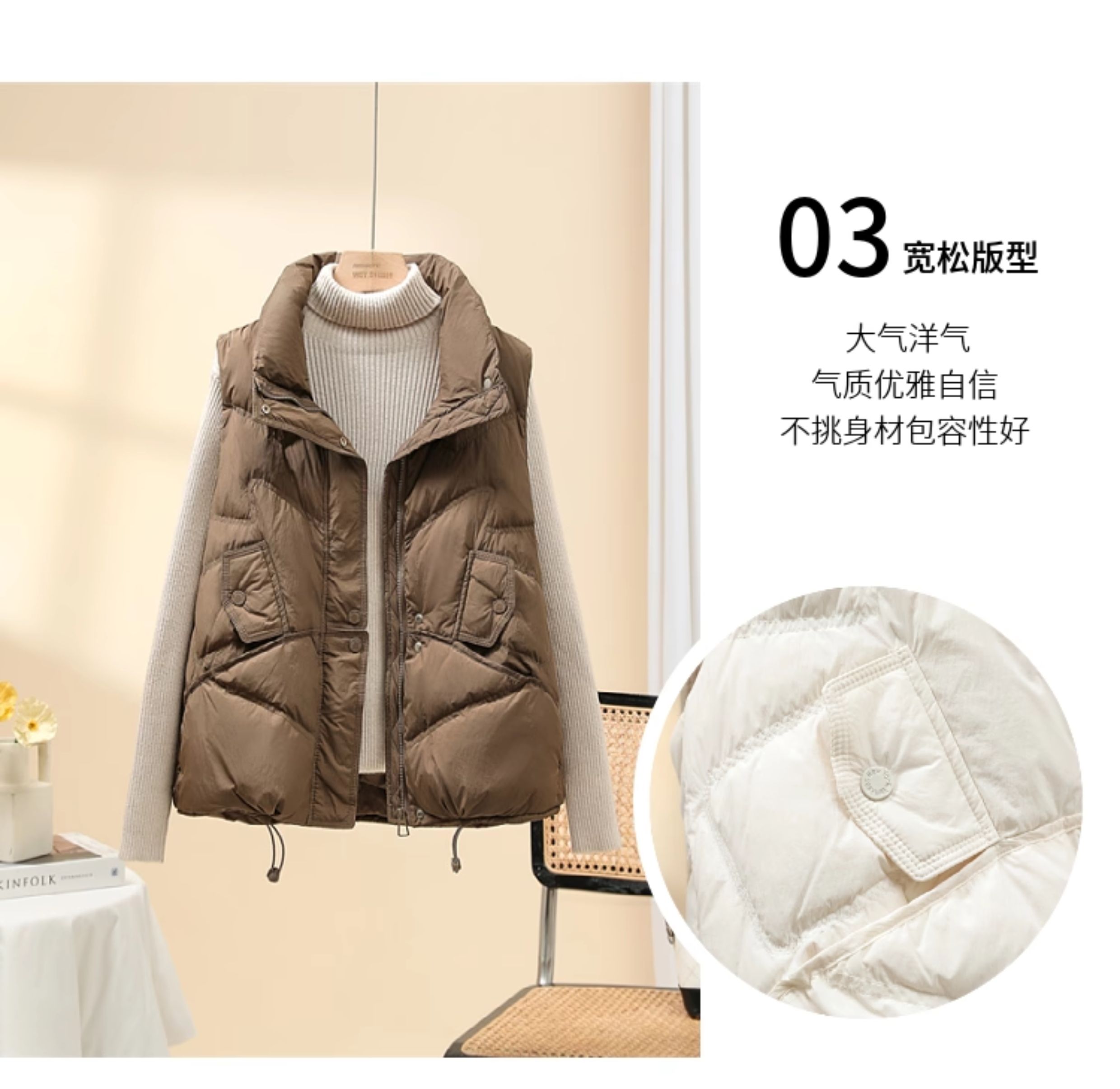 白鴨絨羽絨馬夾女短款2025年新款韓版輕薄馬甲百搭坎肩背心秋冬潮