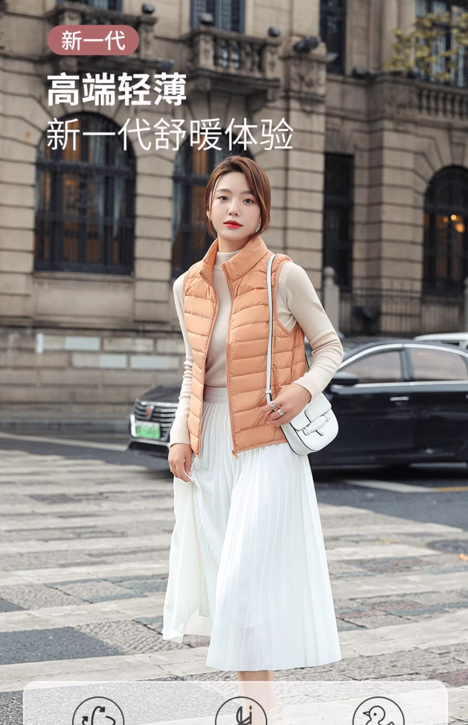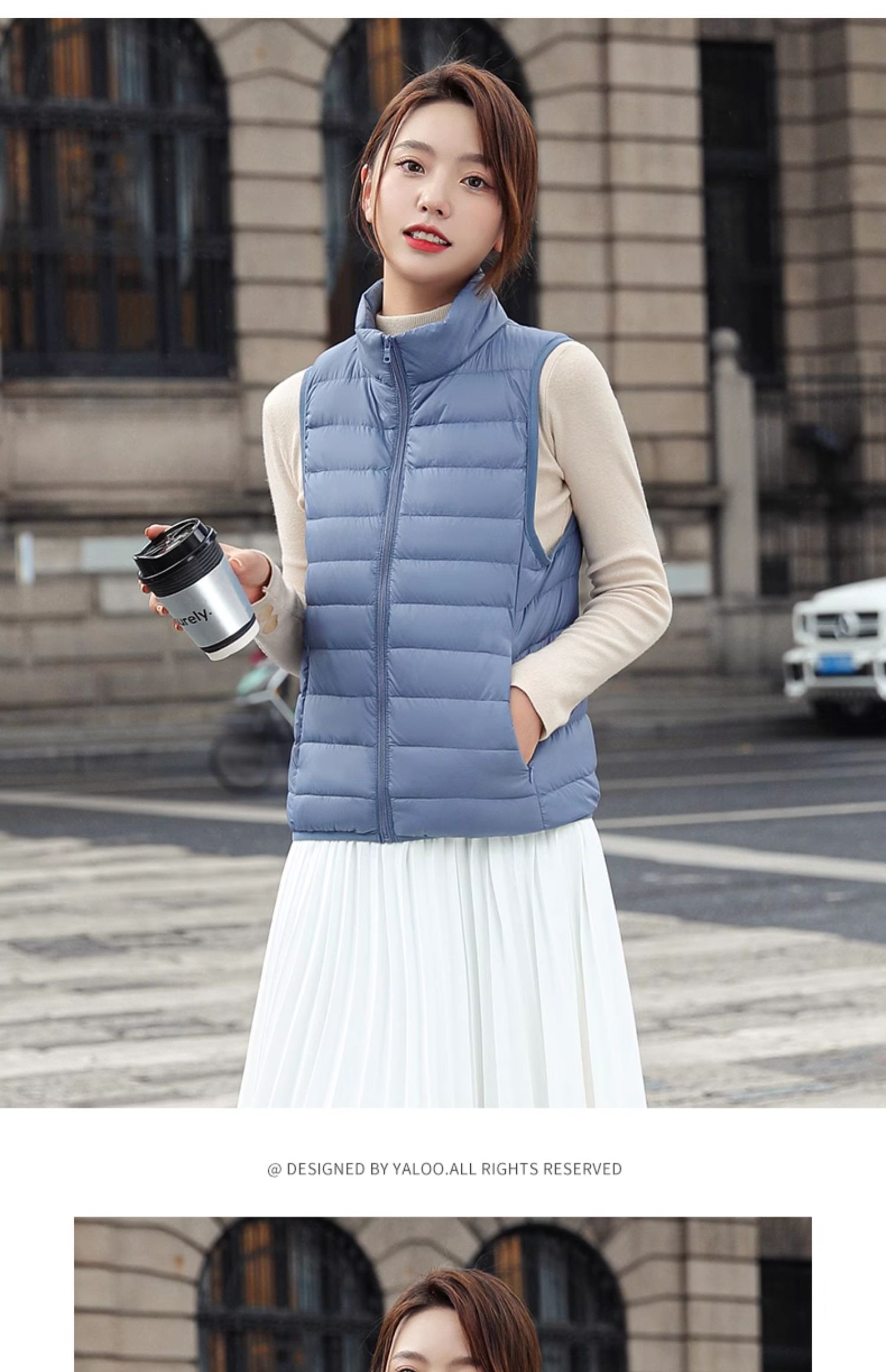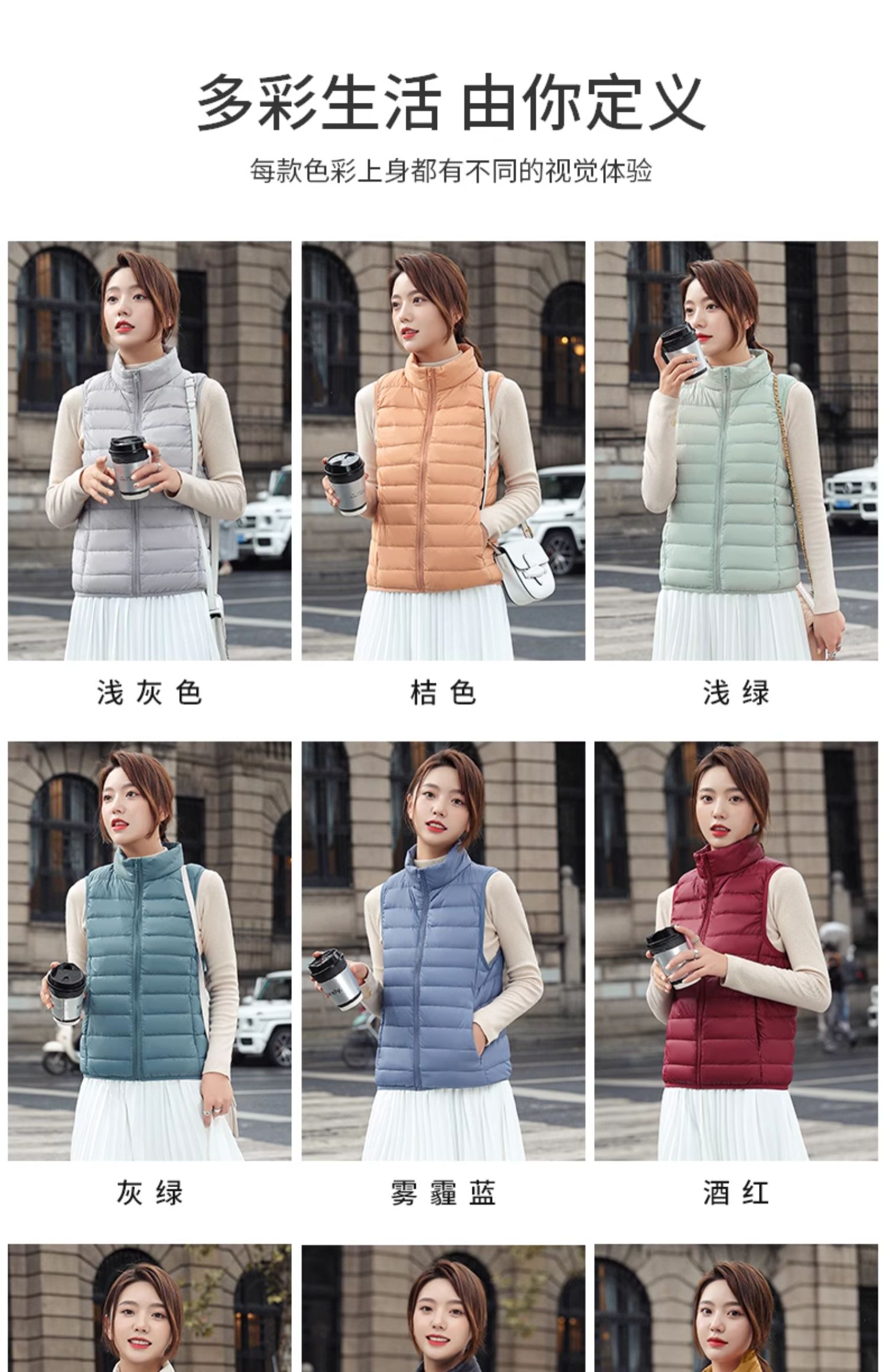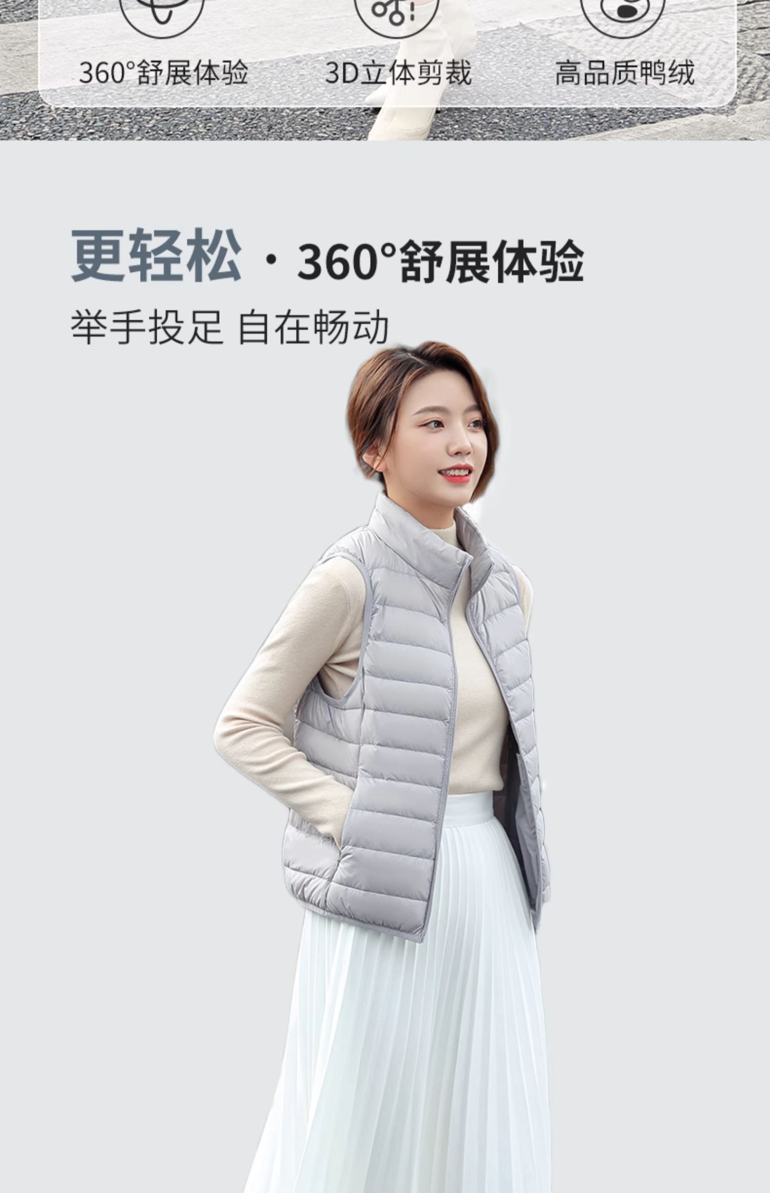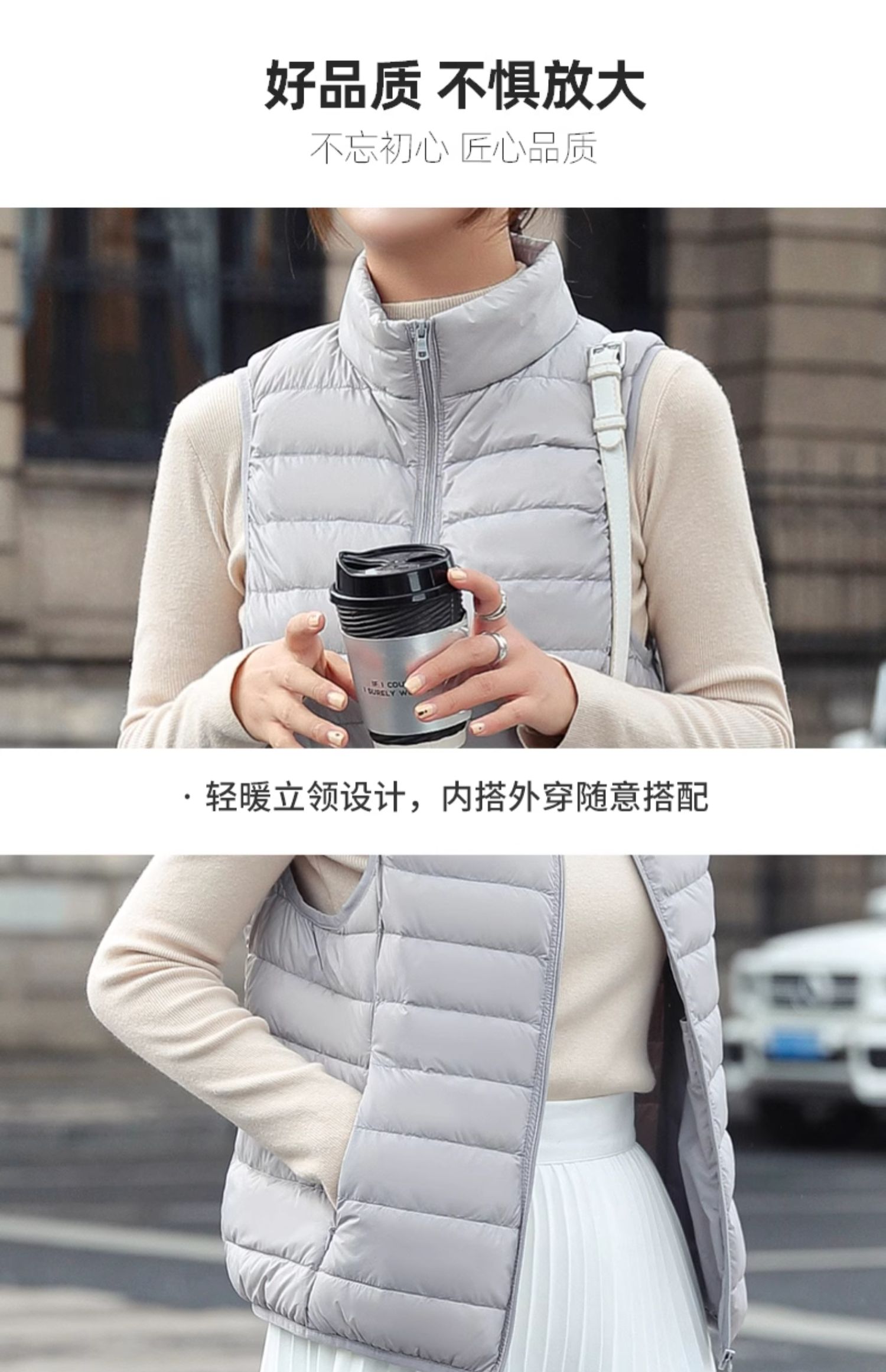 雅鹿立領羽絨馬甲女士內穿背心輕薄款短款保暖舒適鴨絨無袖外套女