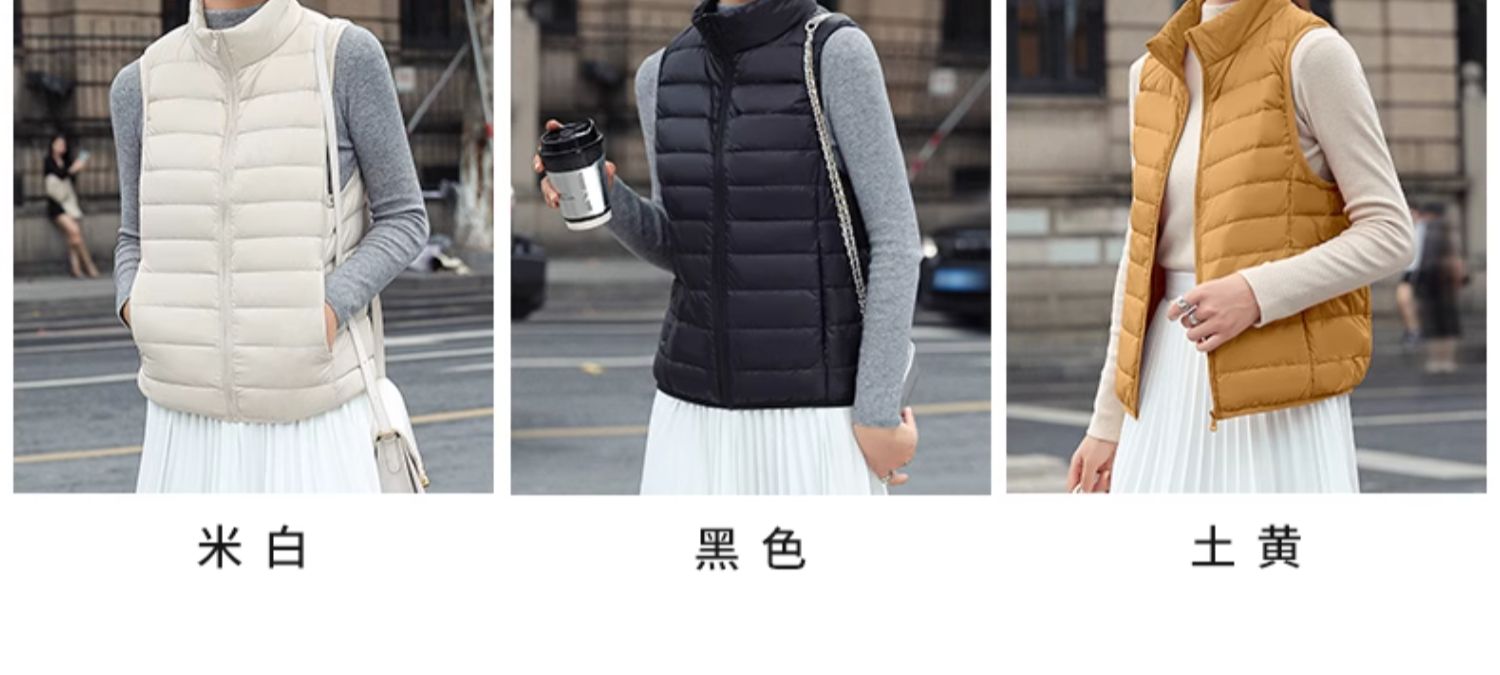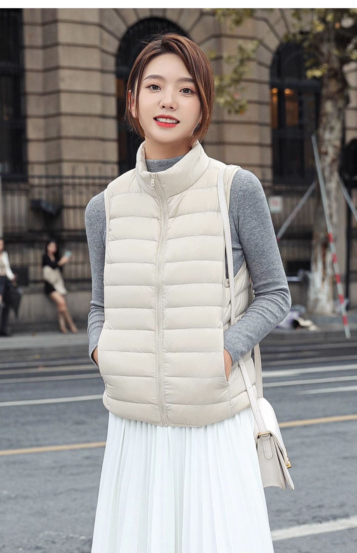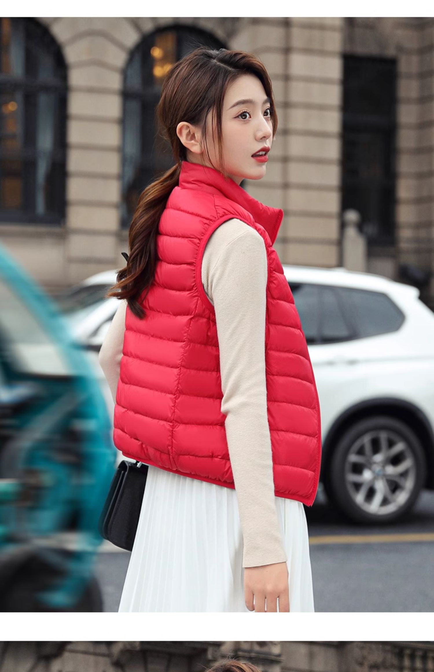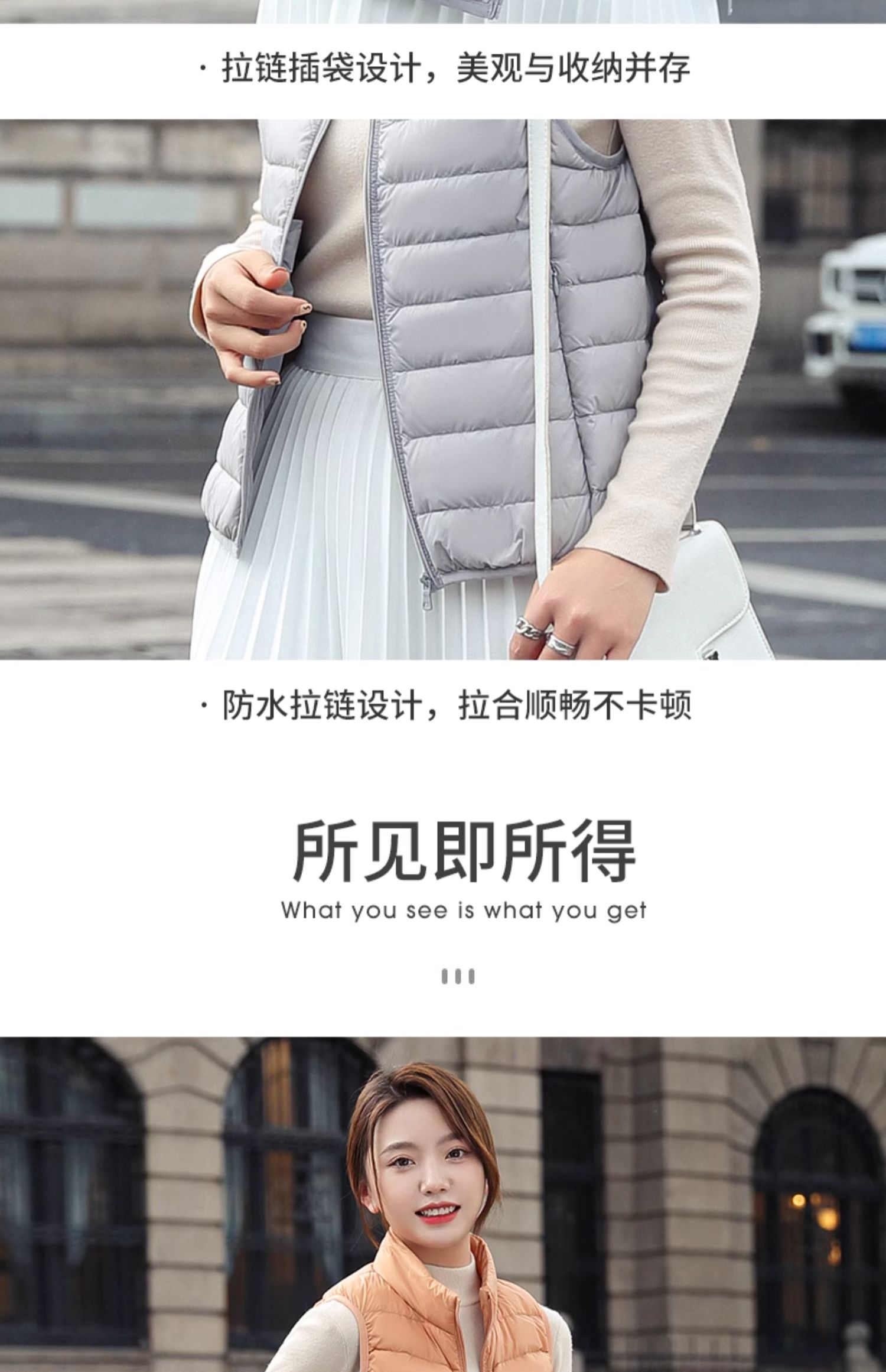 雅鹿立領羽絨馬甲女士內穿背心輕薄款短款保暖舒適鴨絨無袖外套女