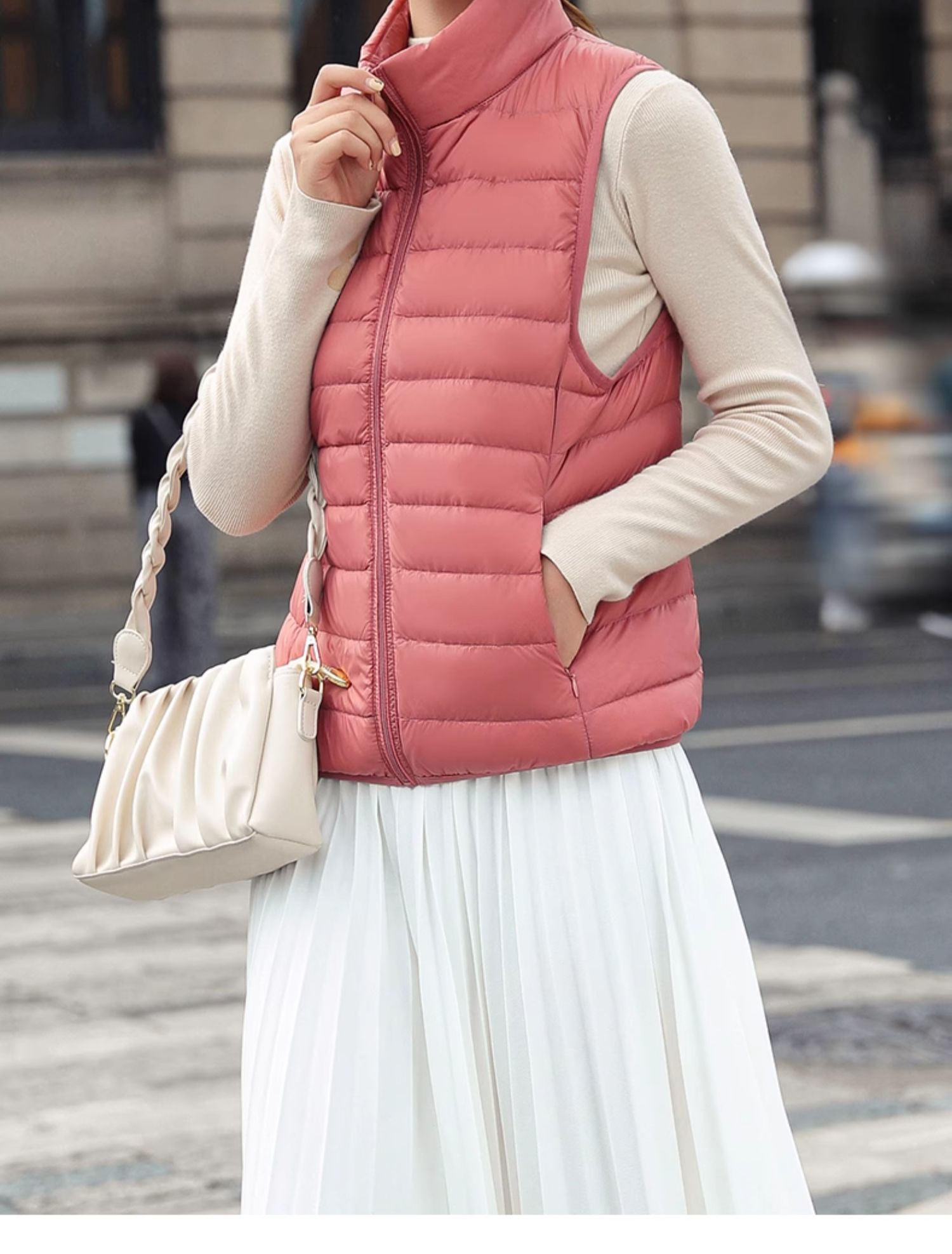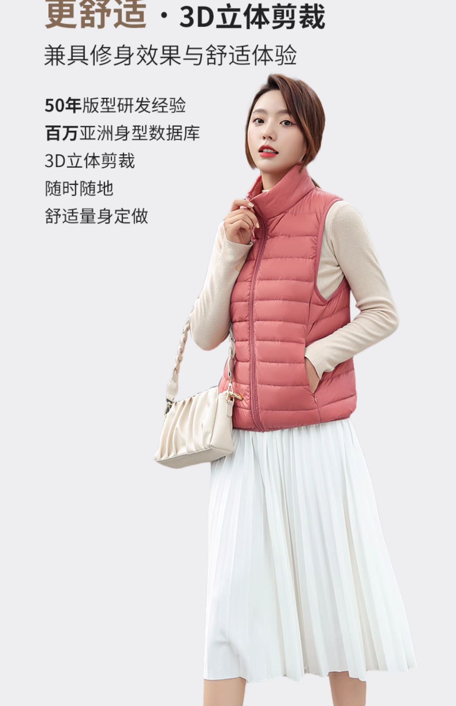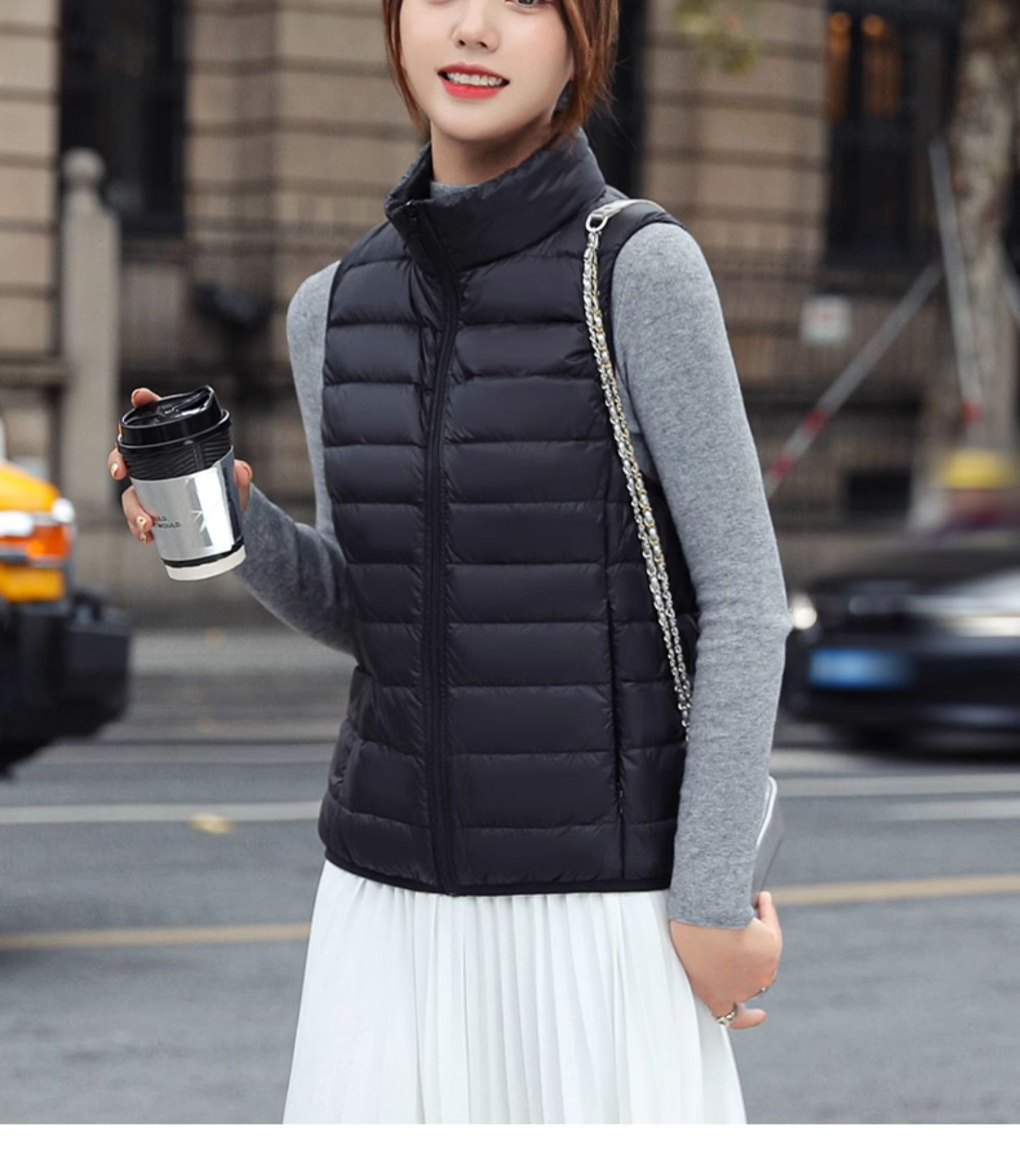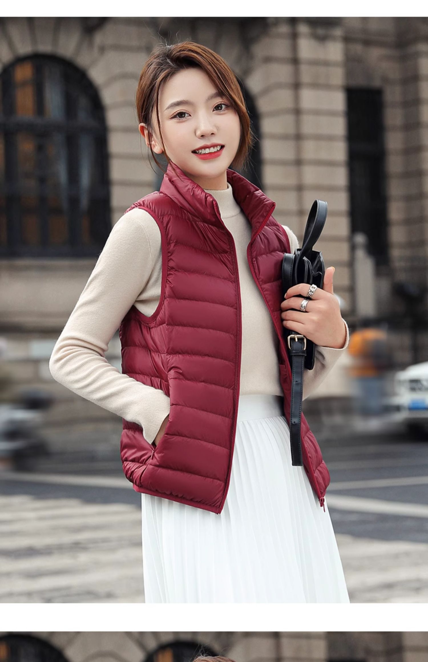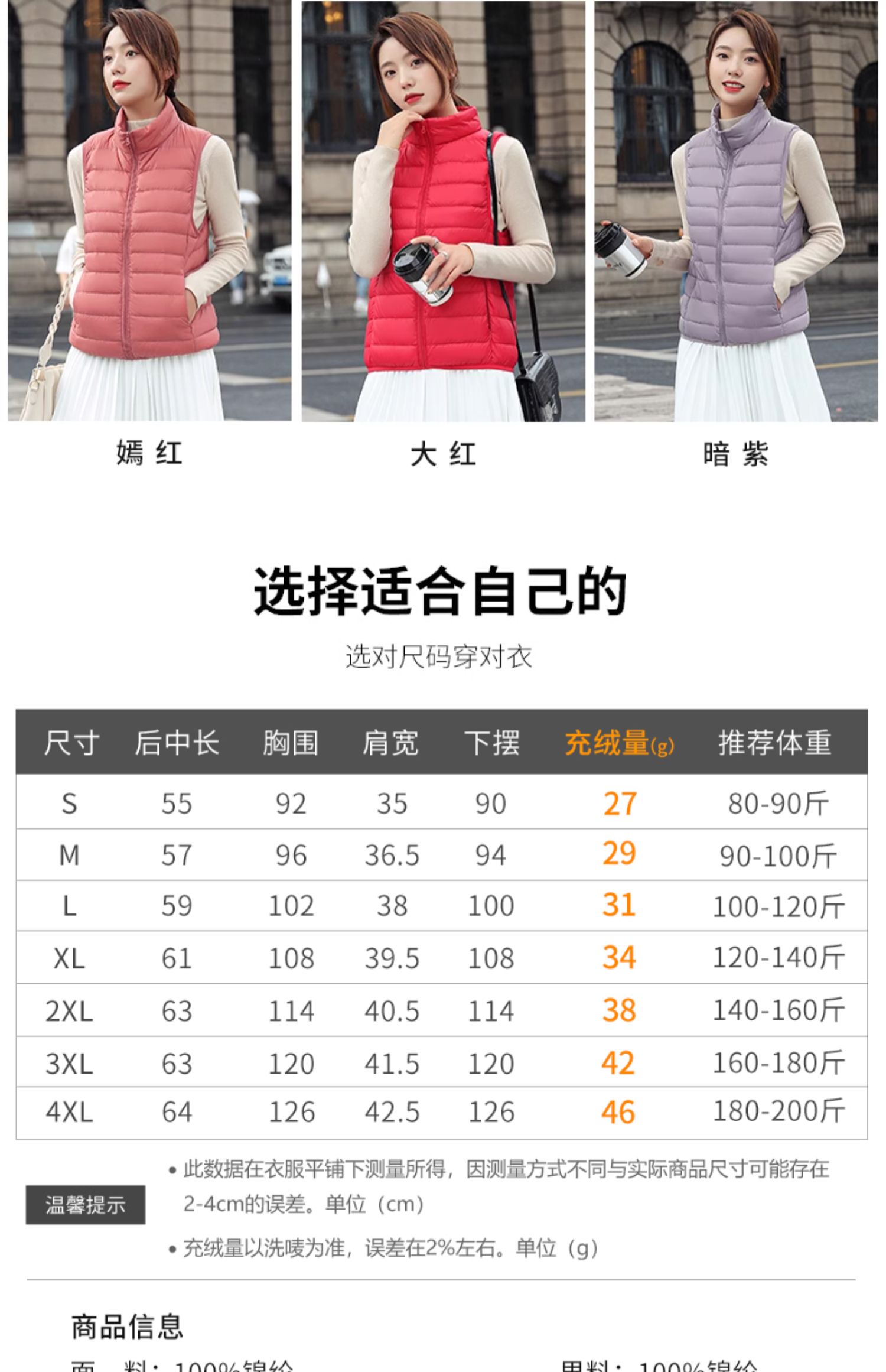 雅鹿立領羽絨馬甲女士內穿背心輕薄款短款保暖舒適鴨絨無袖外套女
