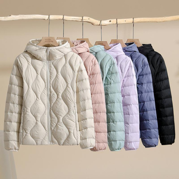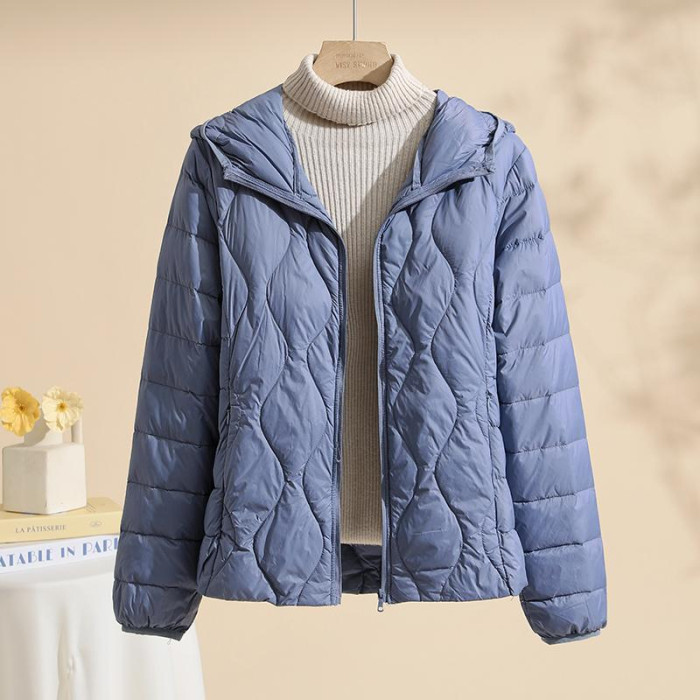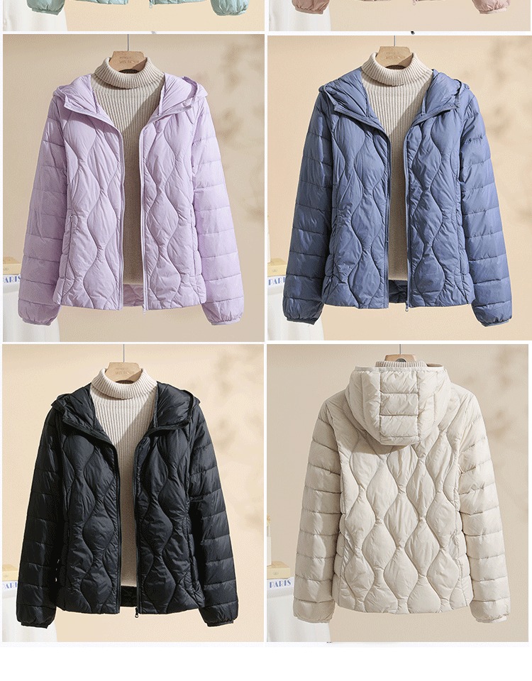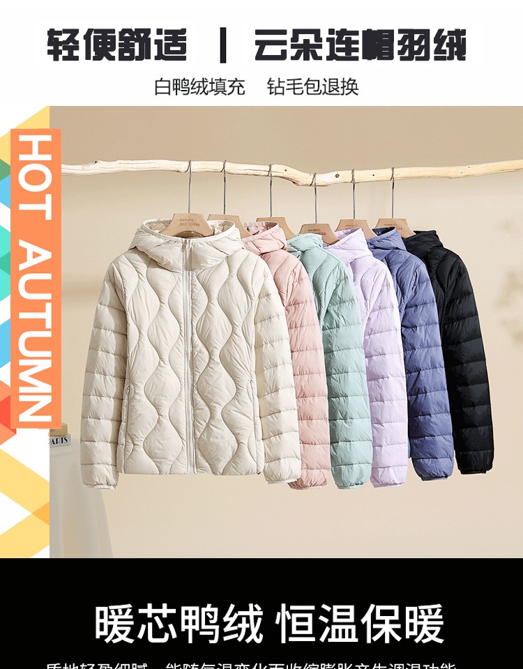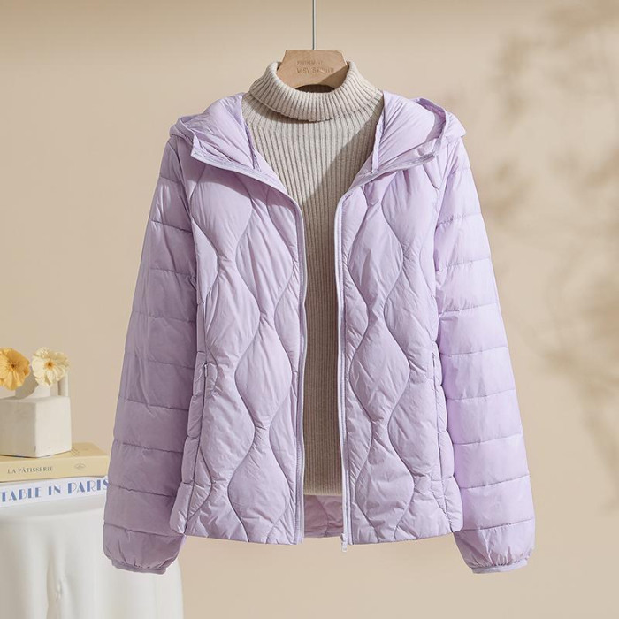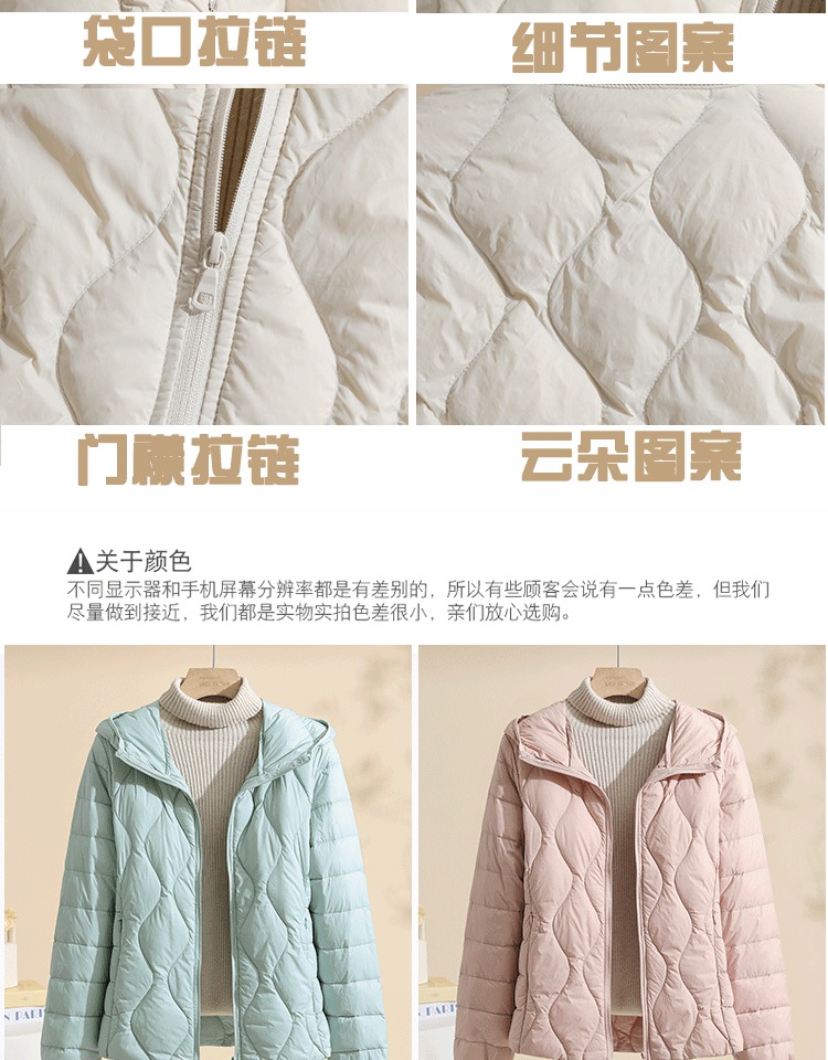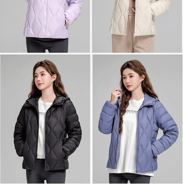 2024年新秋冬大碼輕薄女士羽絨服連帽白鴨絨保暖薄款大碼外套韓版