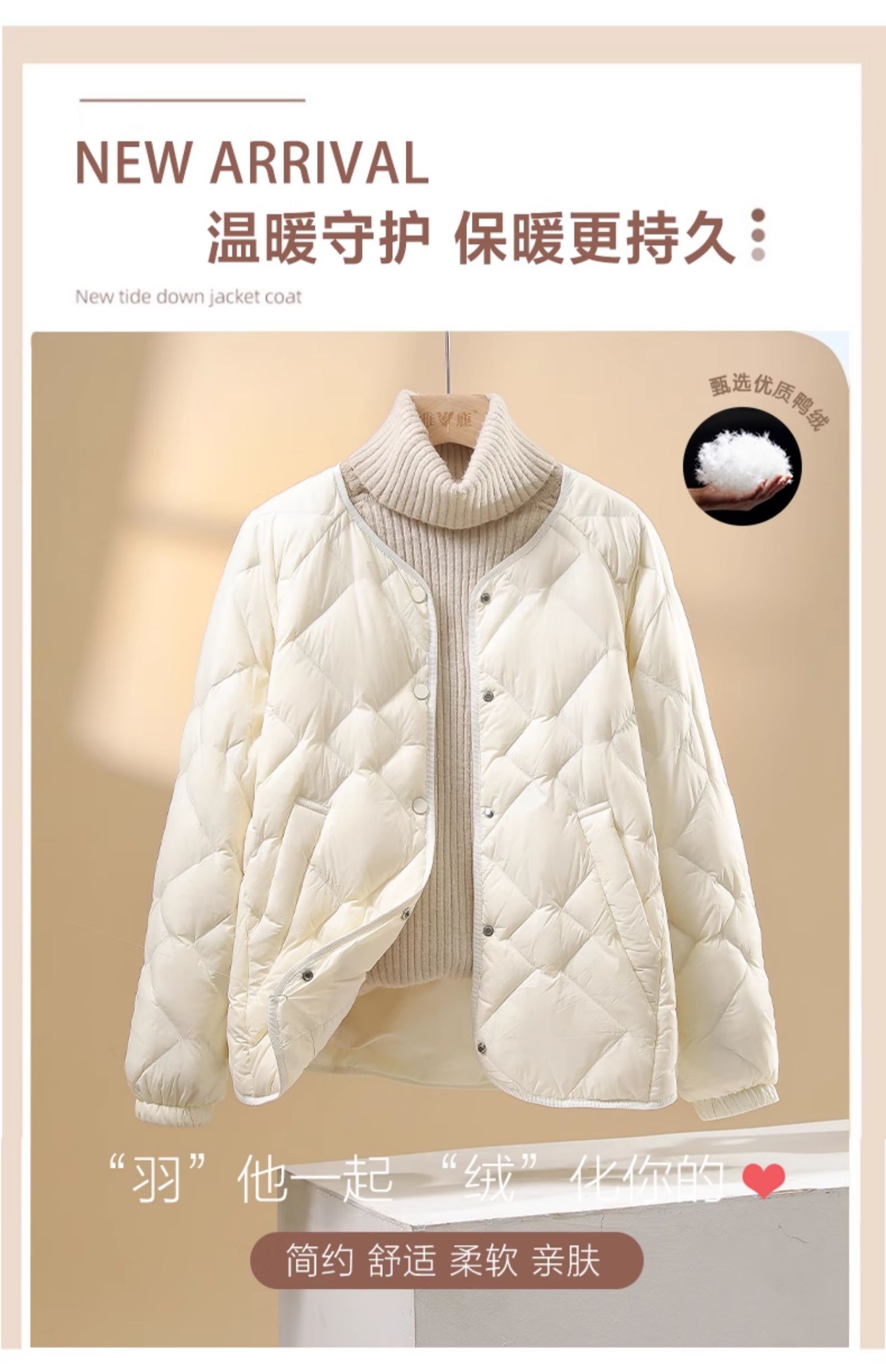 雅鹿2025新款輕薄羽絨服女內膽冬季圓領短款百搭休閒時尚女士外套