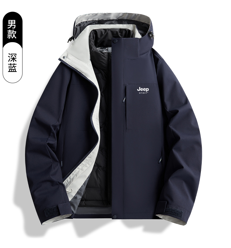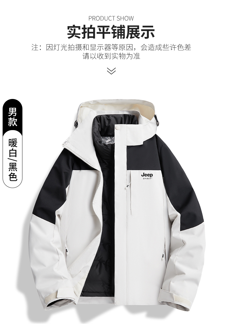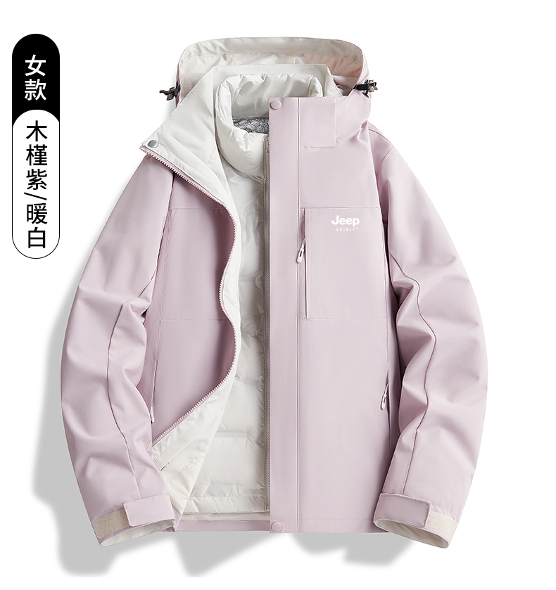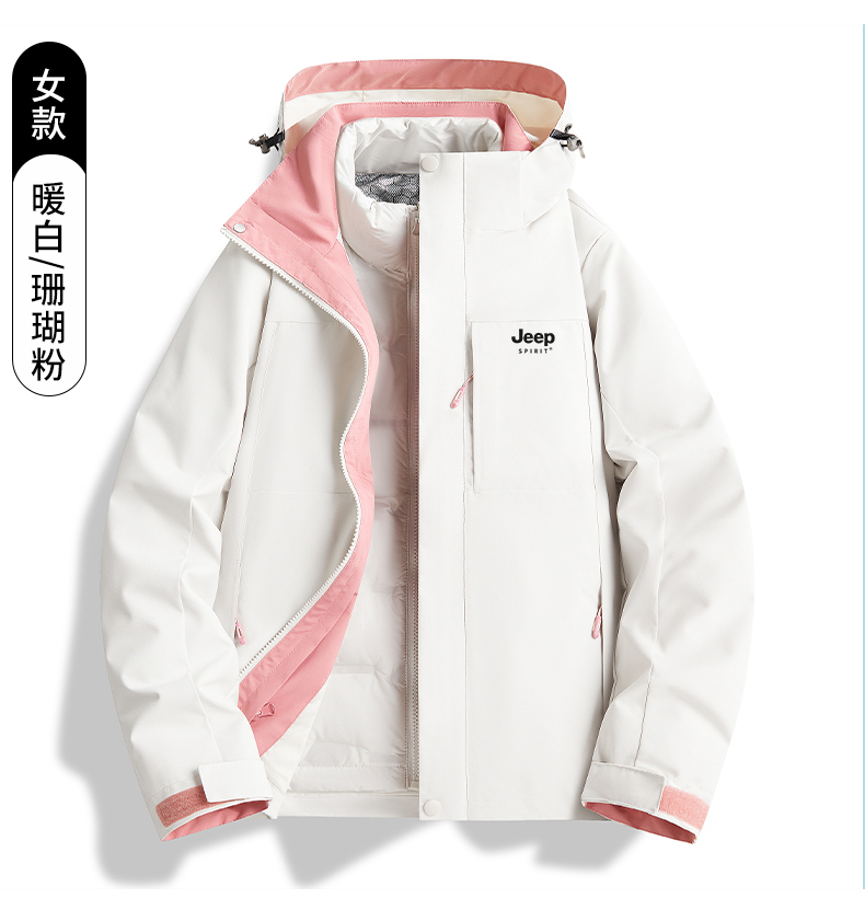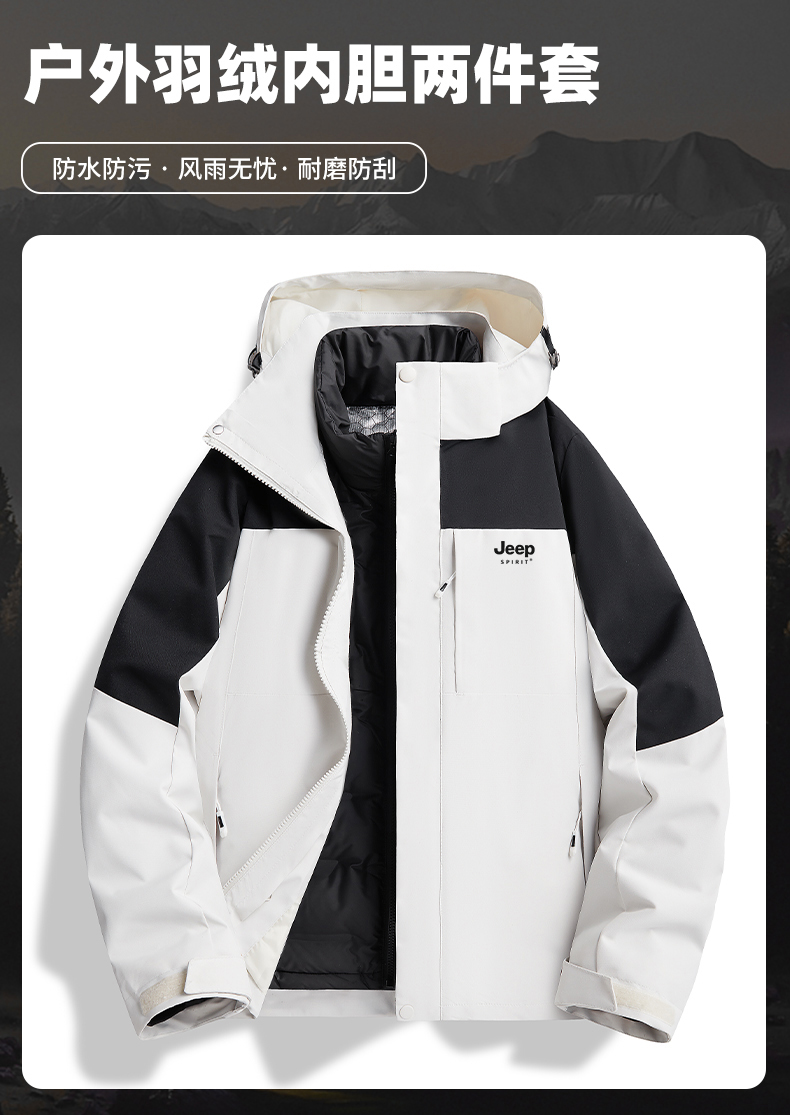 JEEP SPIRIT沖鋒衣羽絨服男女款2025新款冬季三合一加絨加厚外套