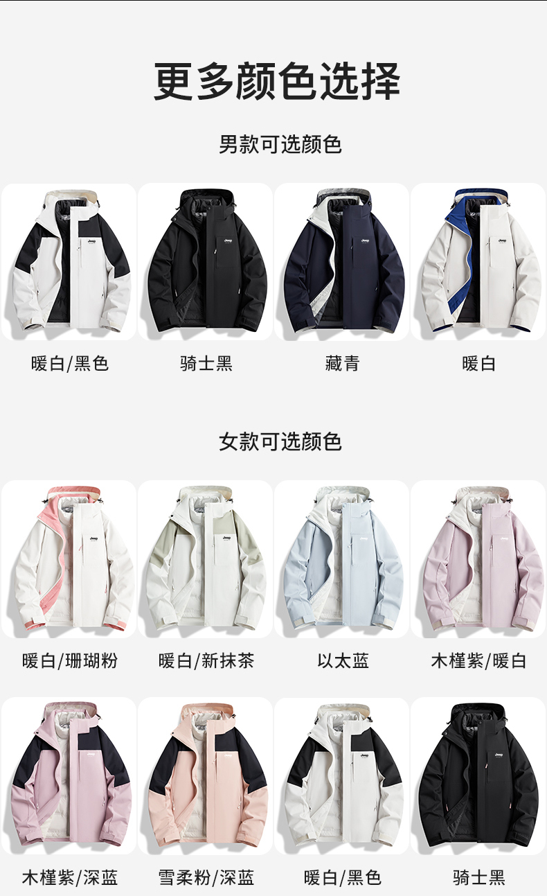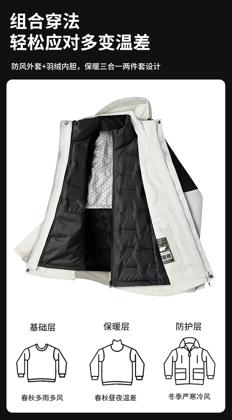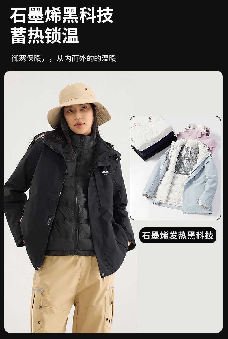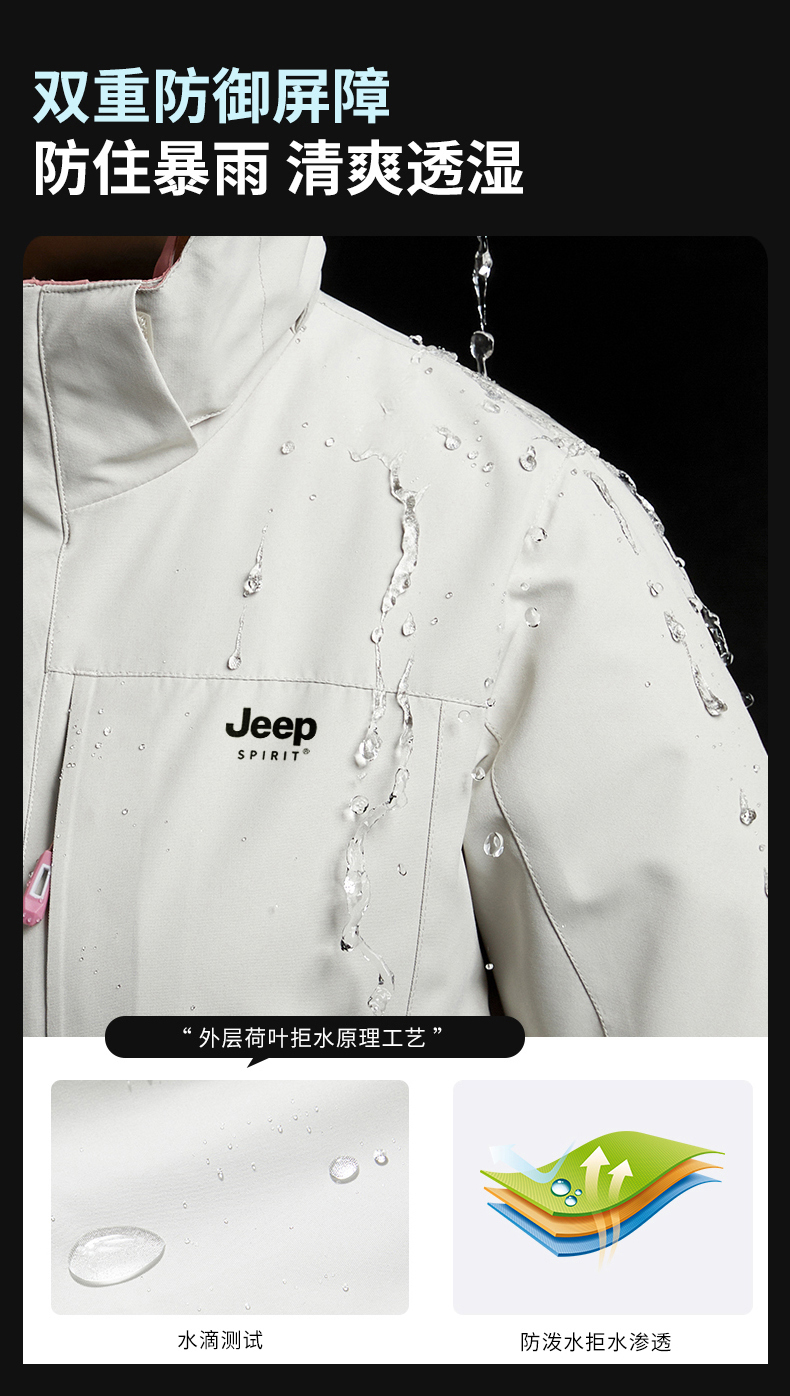 JEEP SPIRIT沖鋒衣羽絨服男女款2025新款冬季三合一加絨加厚外套