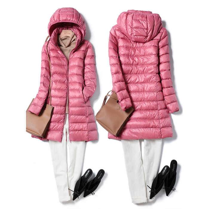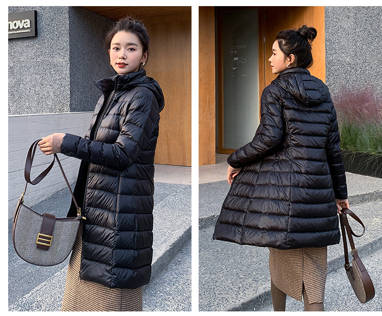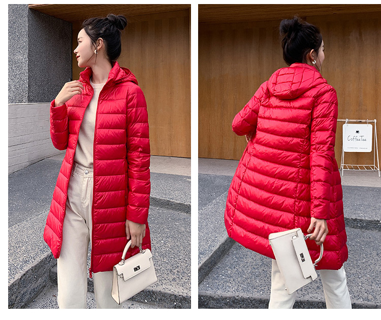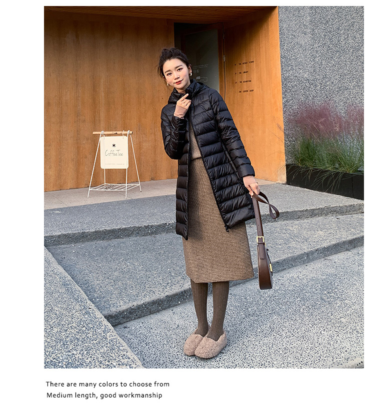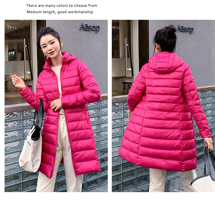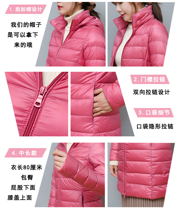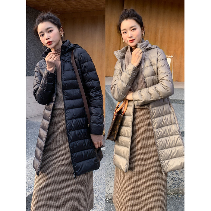 反季秋冬新款輕薄款羽絨服女中長款白鴨絨韓版輕便顯瘦外套脫卸帽