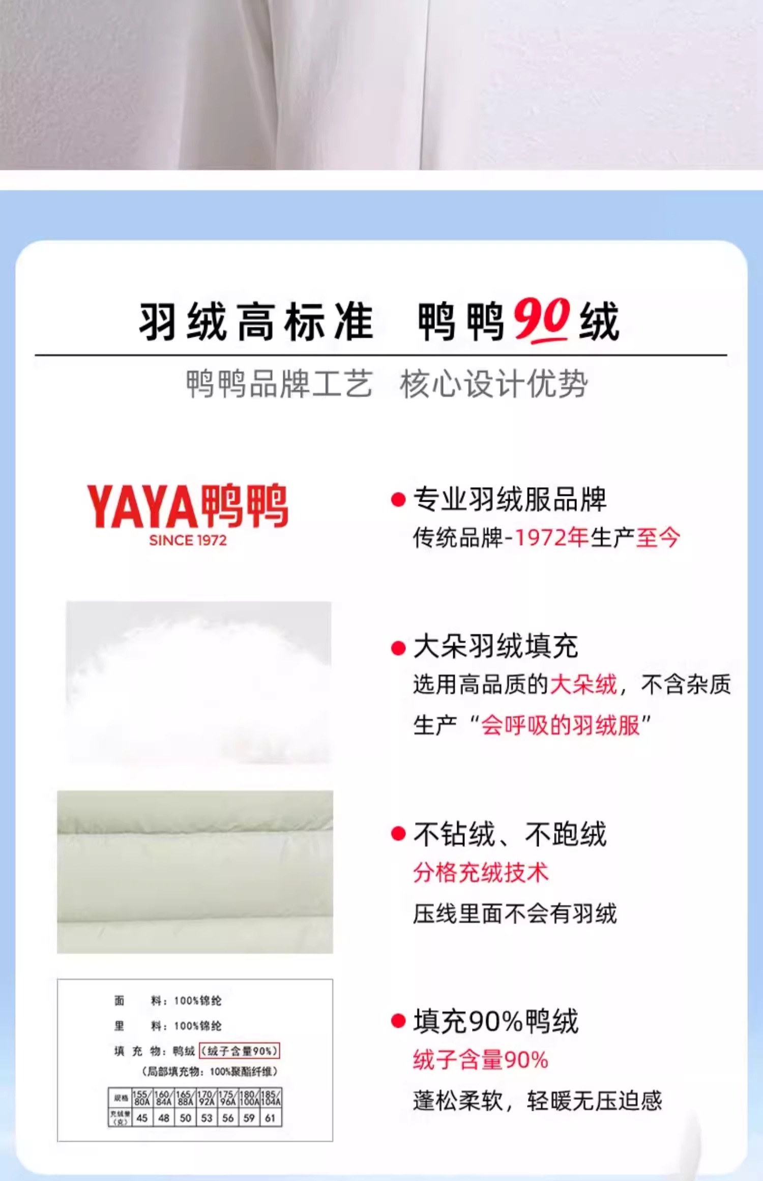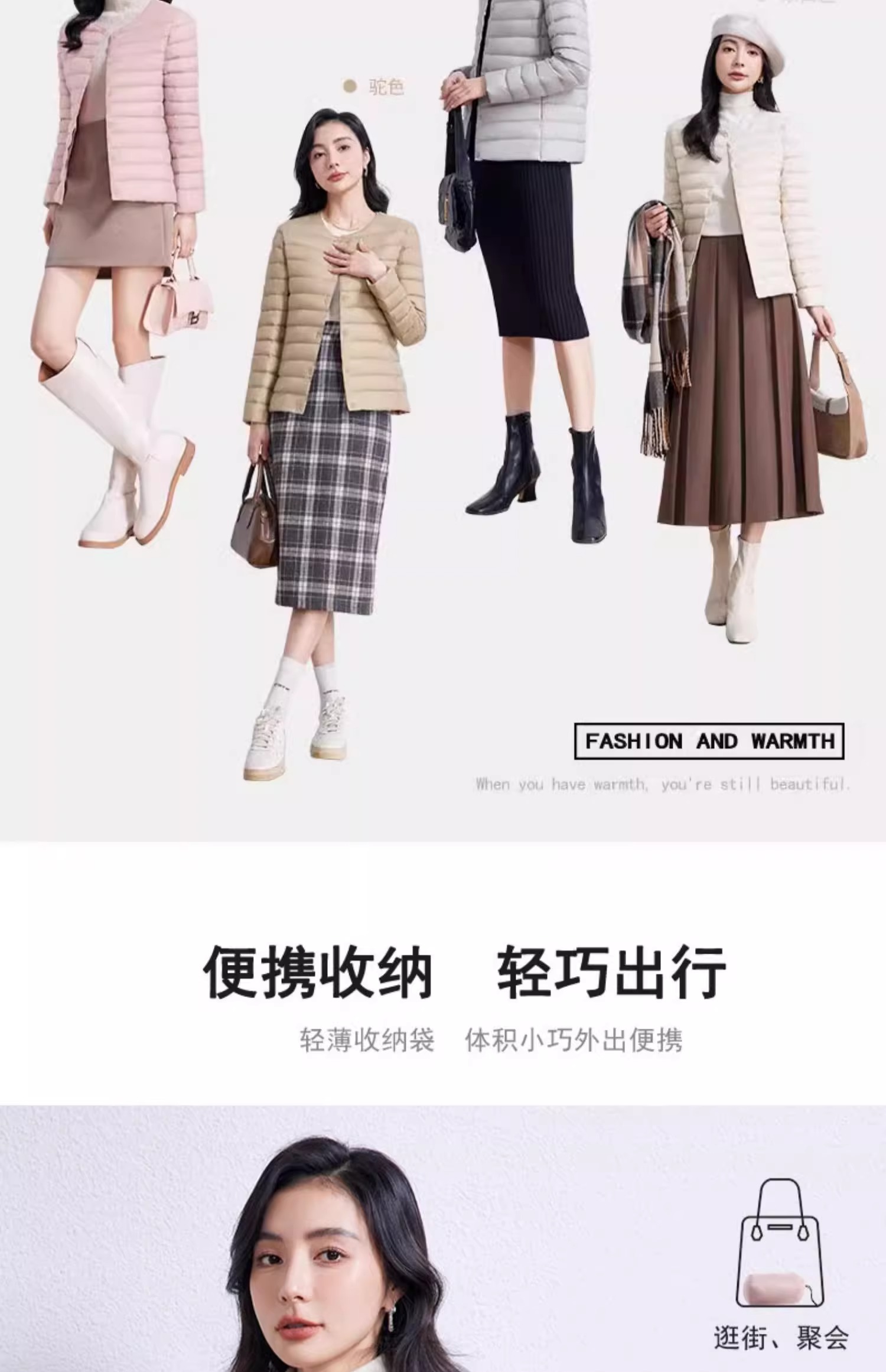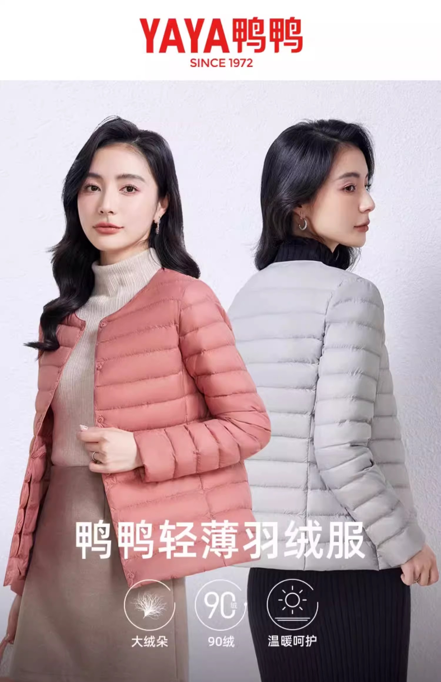鴨鴨官方旗艦店輕薄內膽羽絨服女2025年秋冬新款鴨絨保暖可攜式外套
