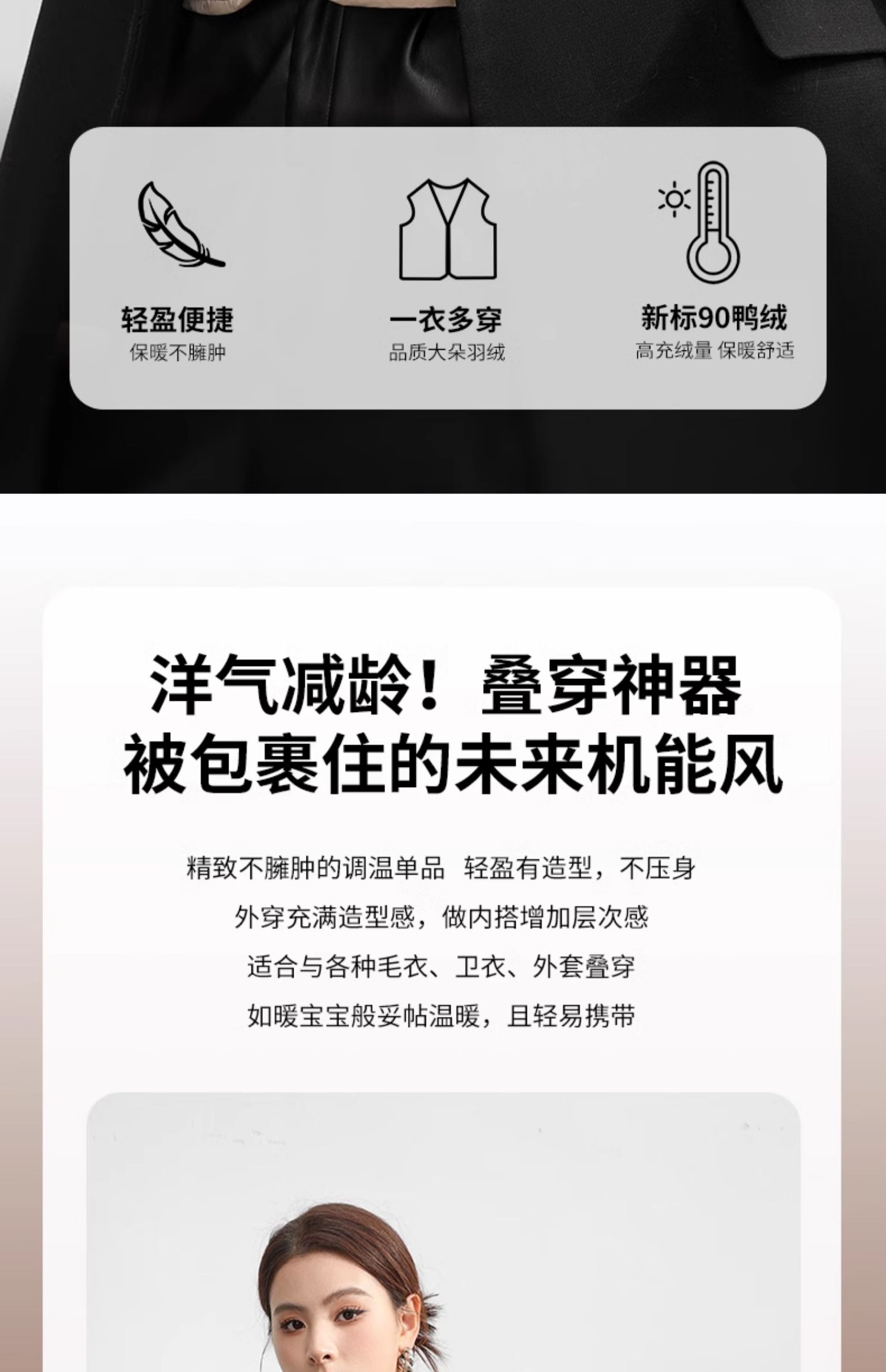 雅鹿羽絨馬甲女2025冬季新款內穿輕薄羽絨內膽貼身大衣內搭背心女