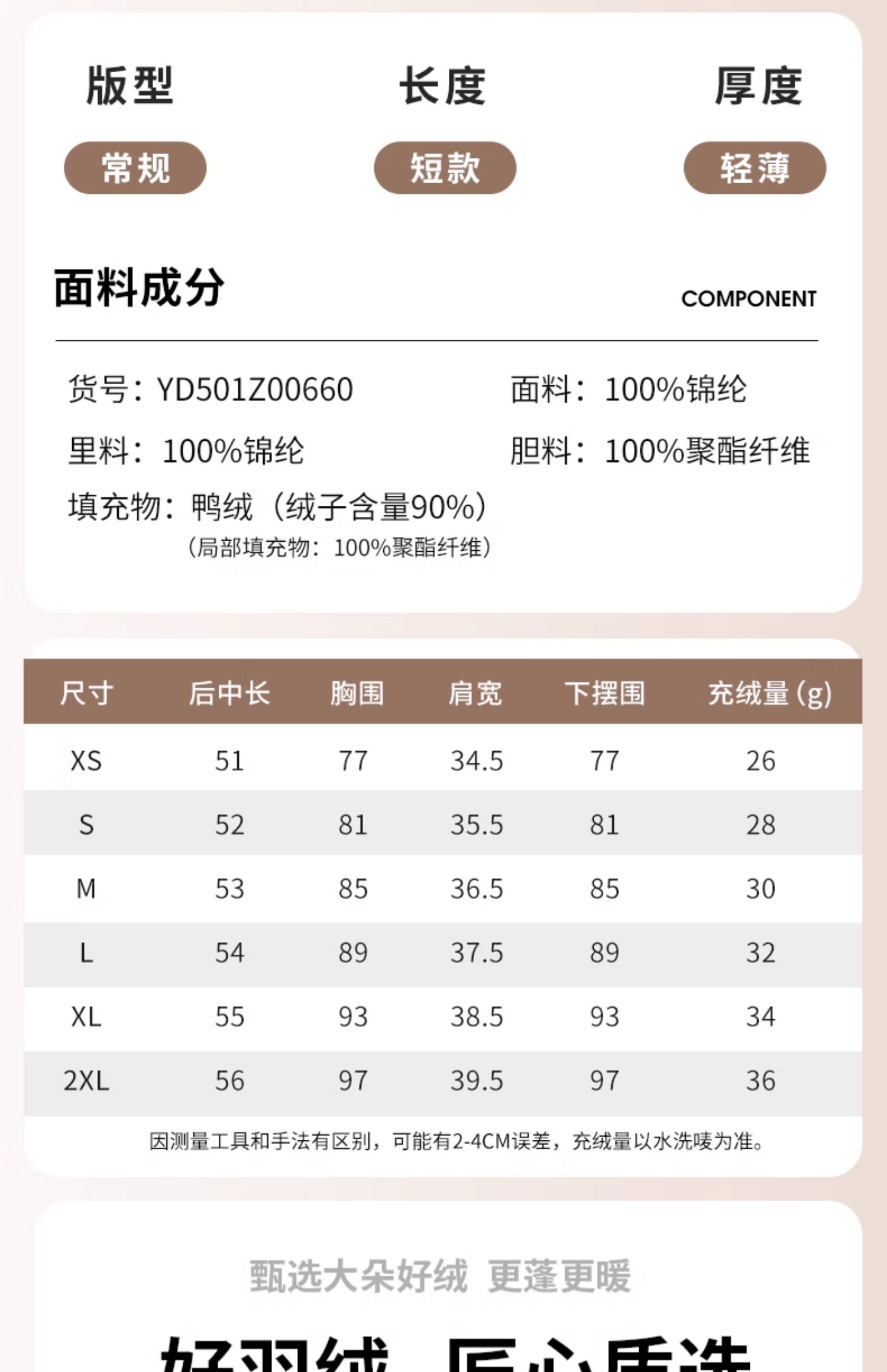 | 充羢量(g) | 26-36g |