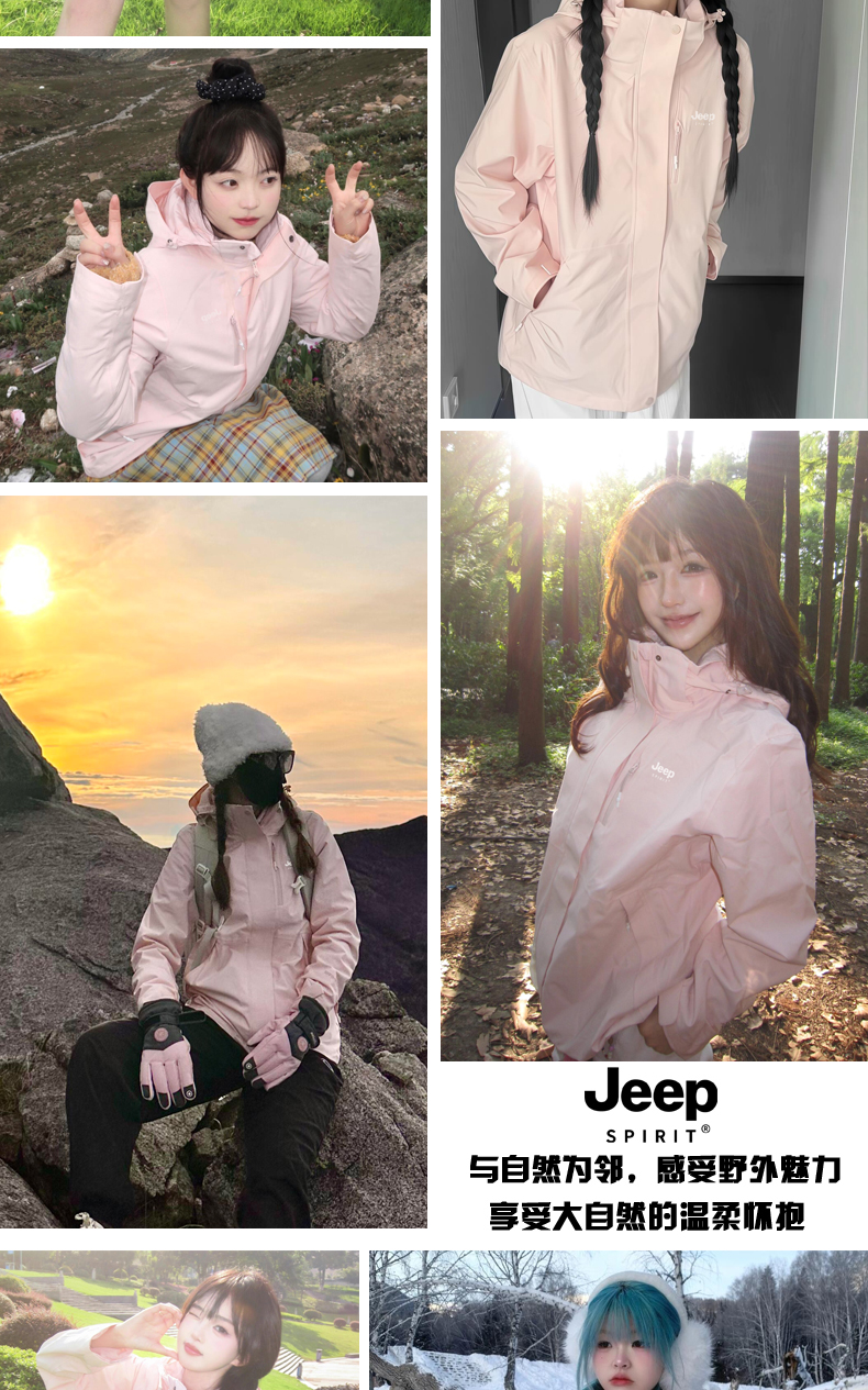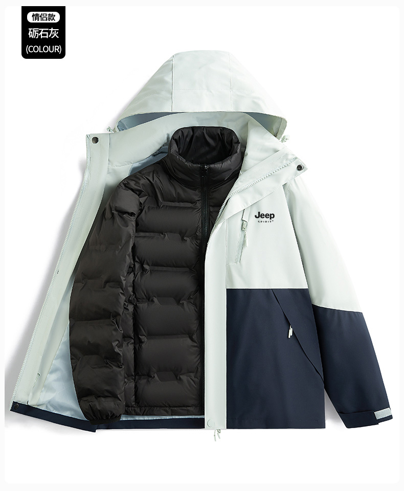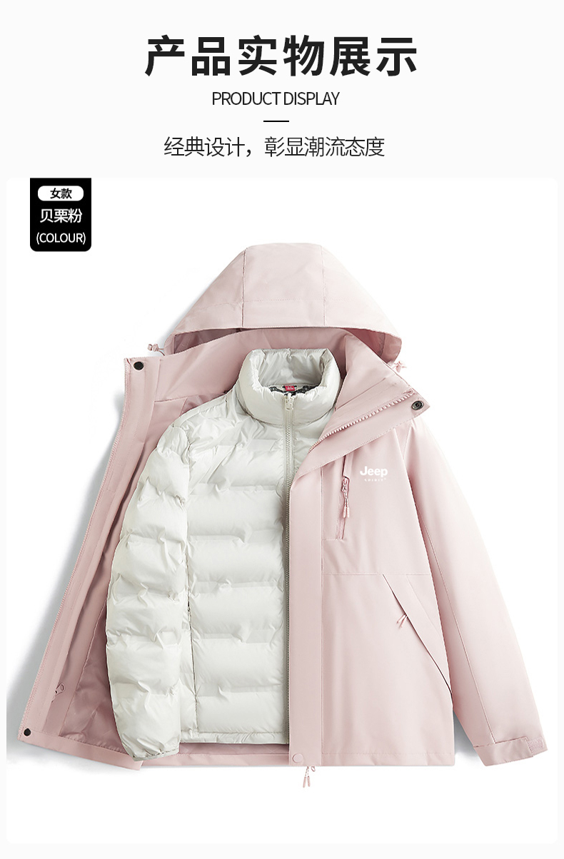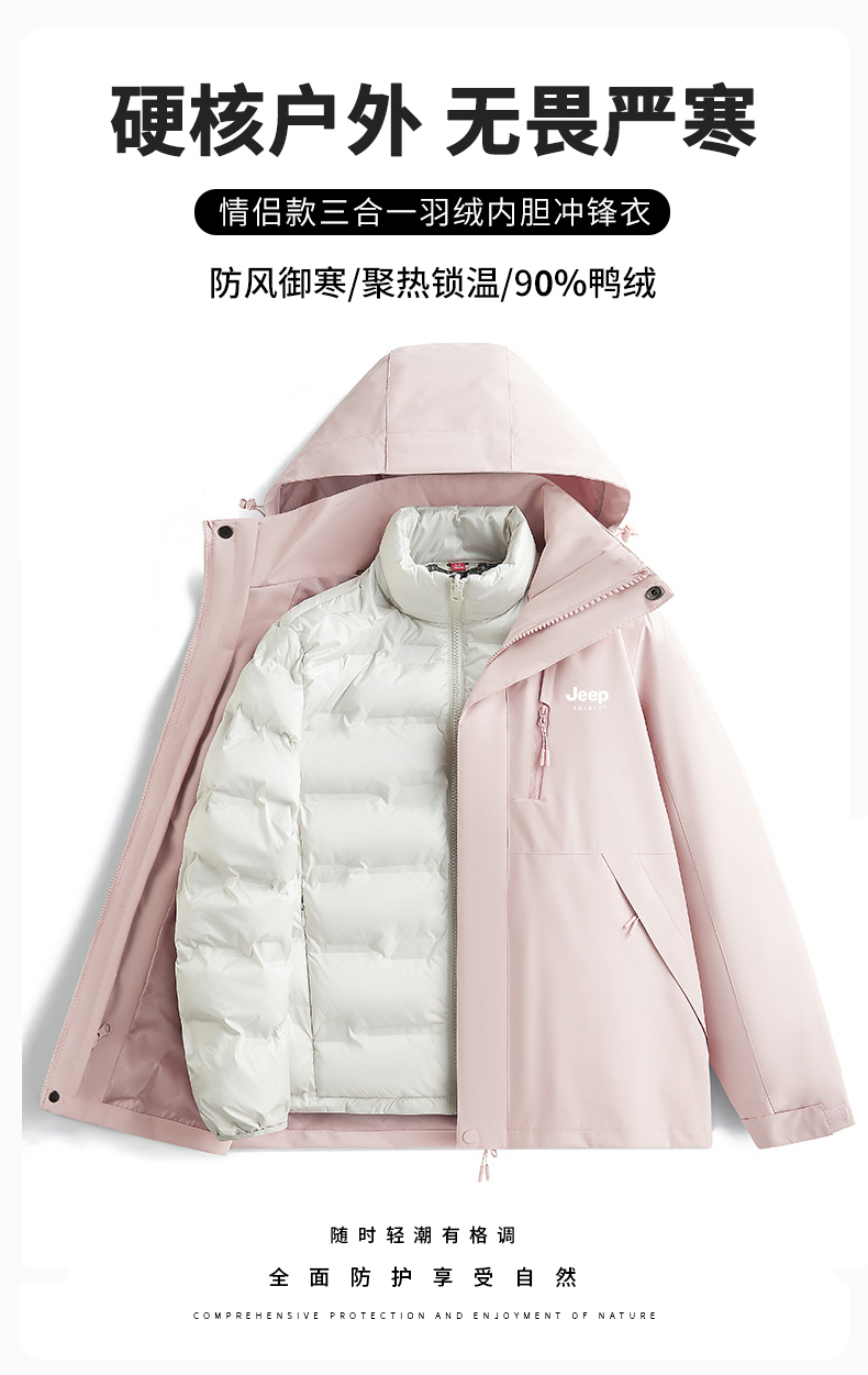 JEEP羽絨服沖鋒衣女冬季2025新款小個子加絨加厚三合一內膽滑雪服