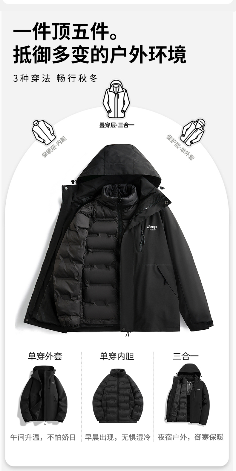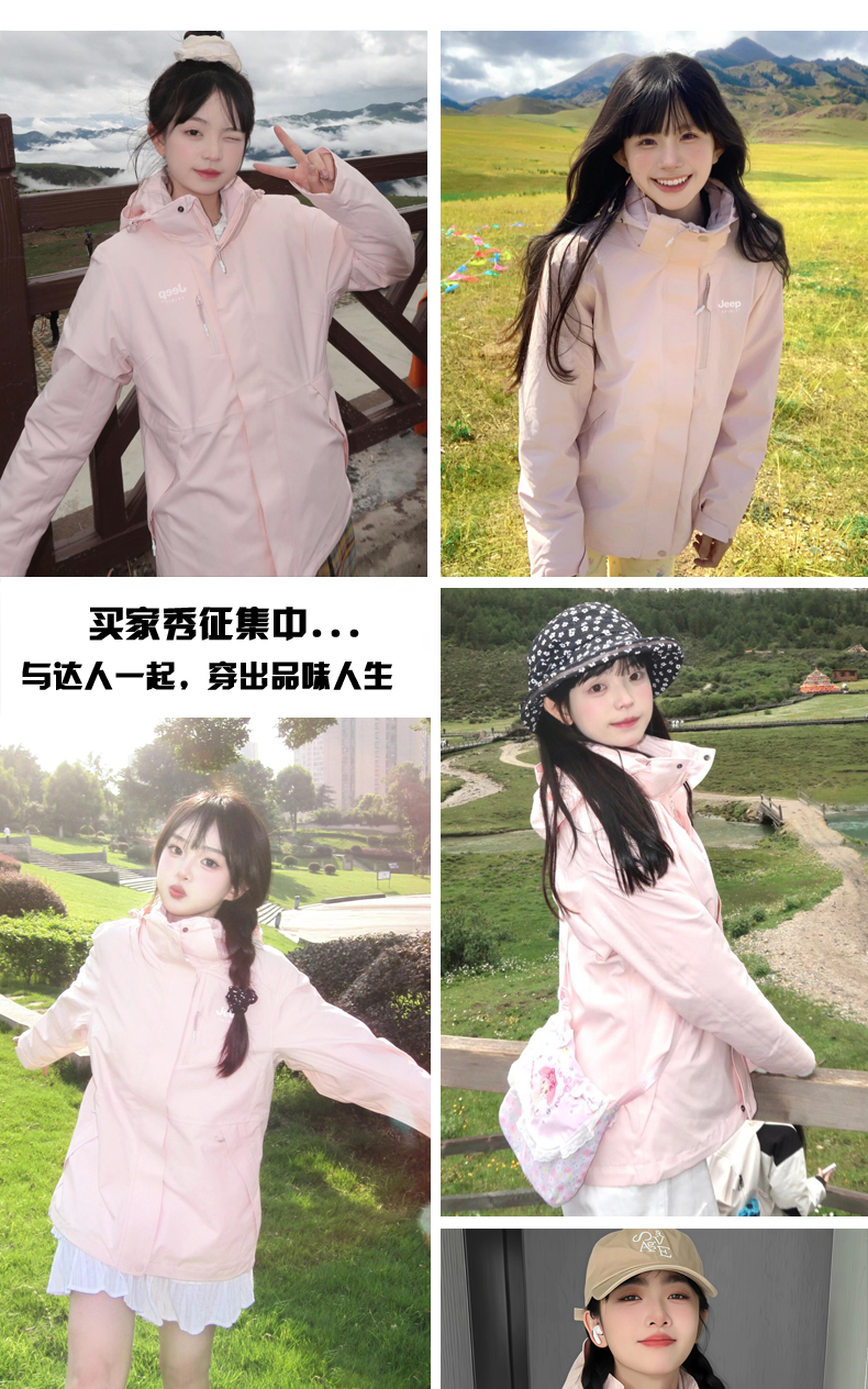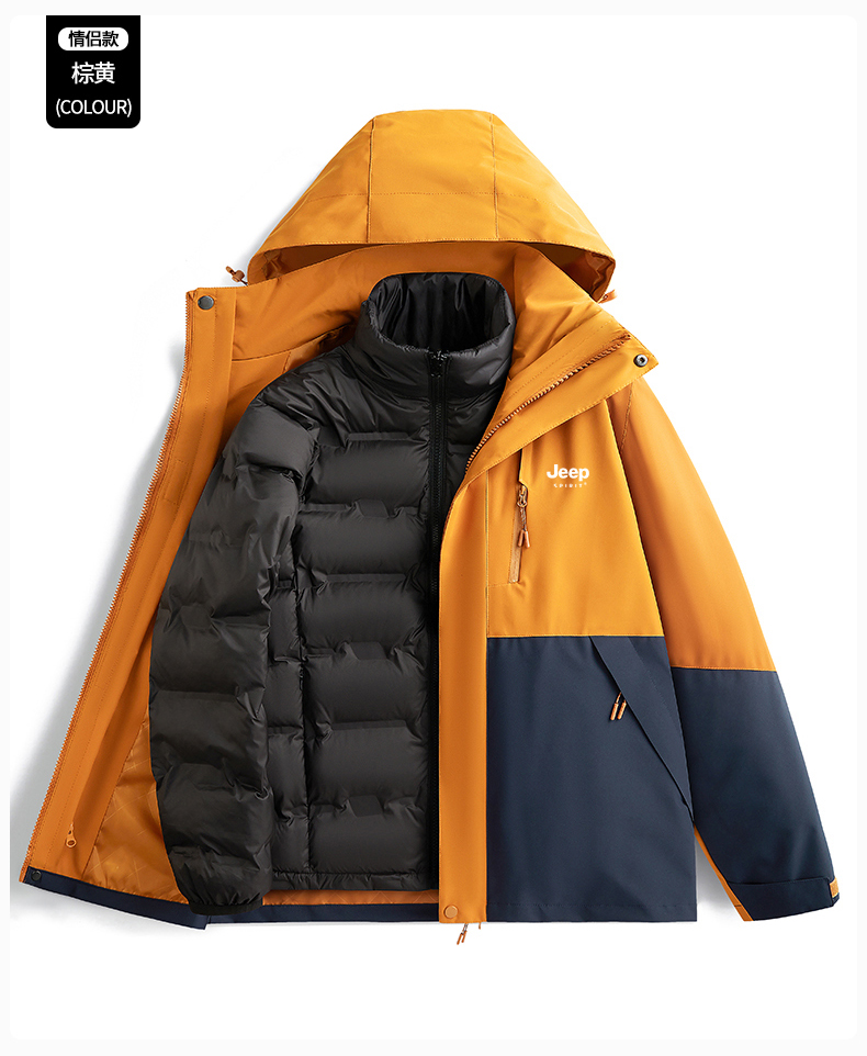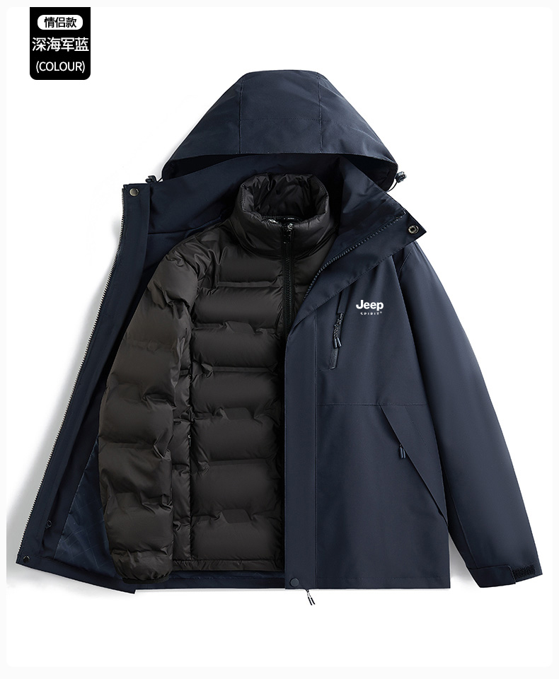 JEEP羽絨服沖鋒衣女冬季2025新款小個子加絨加厚三合一內膽滑雪服