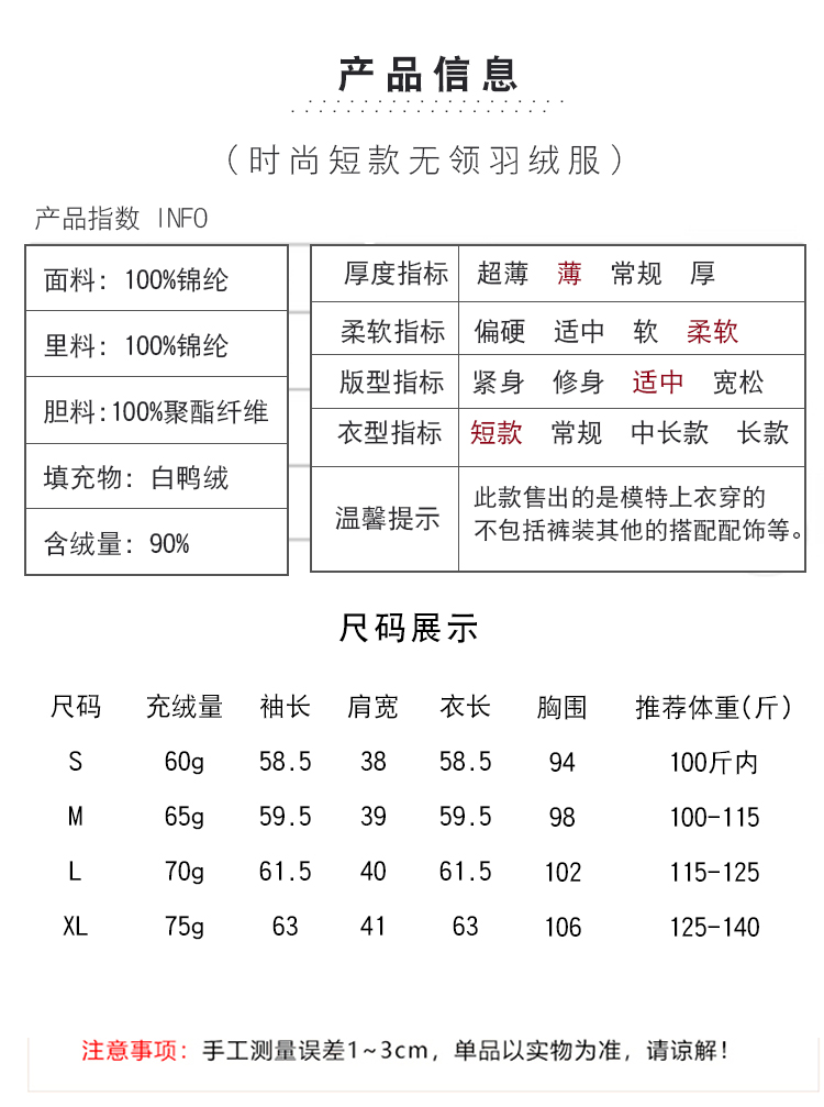 羽絨內膽女冬新款修身輕薄保暖內穿圓領羽絨服短款內搭V領配大衣